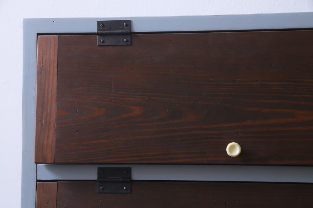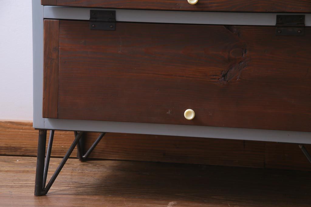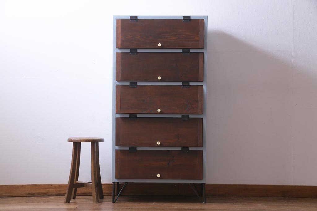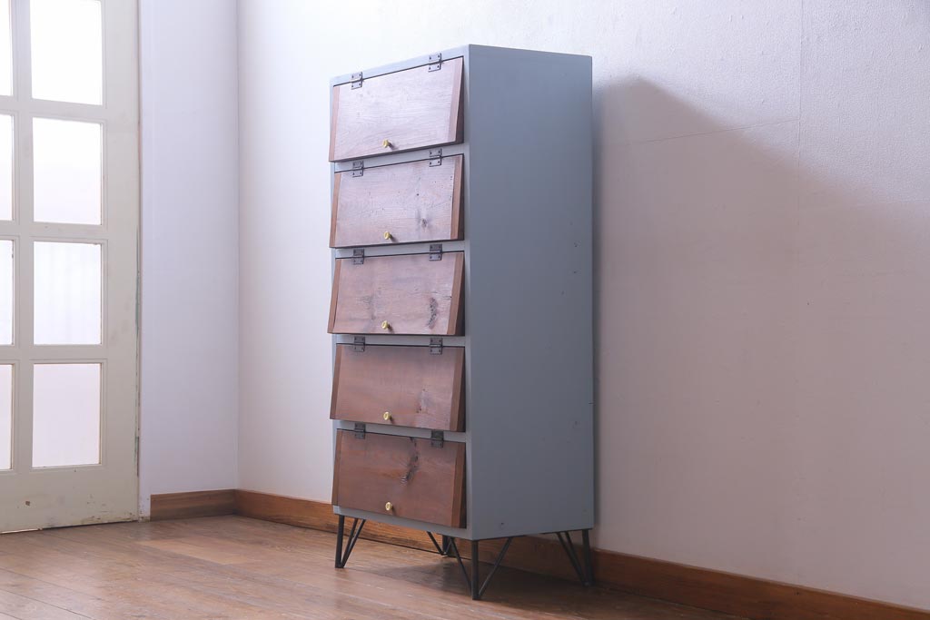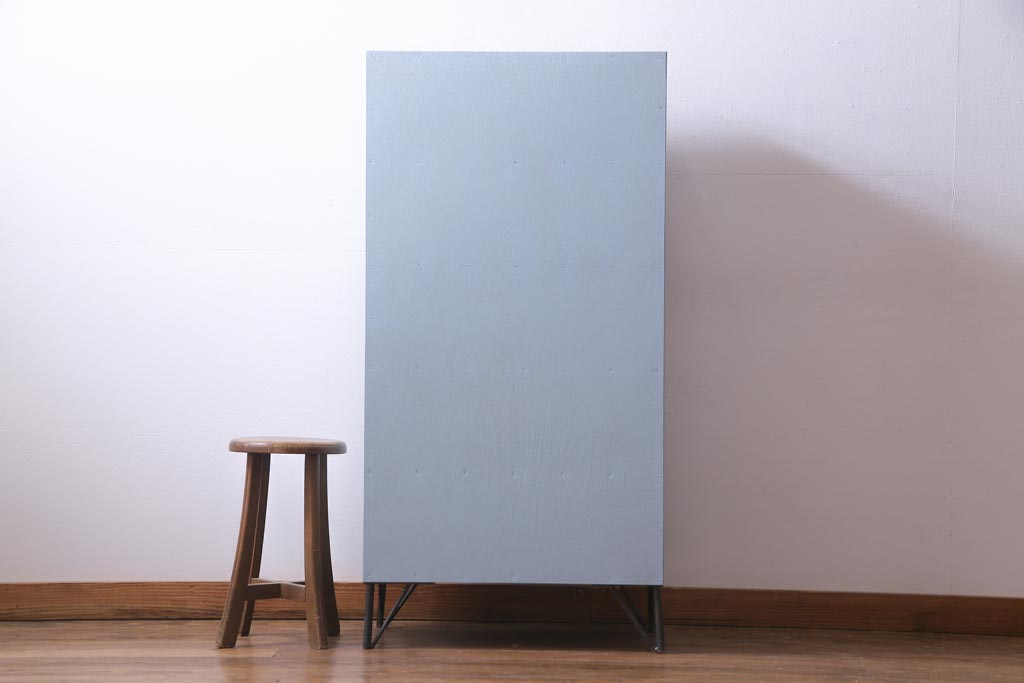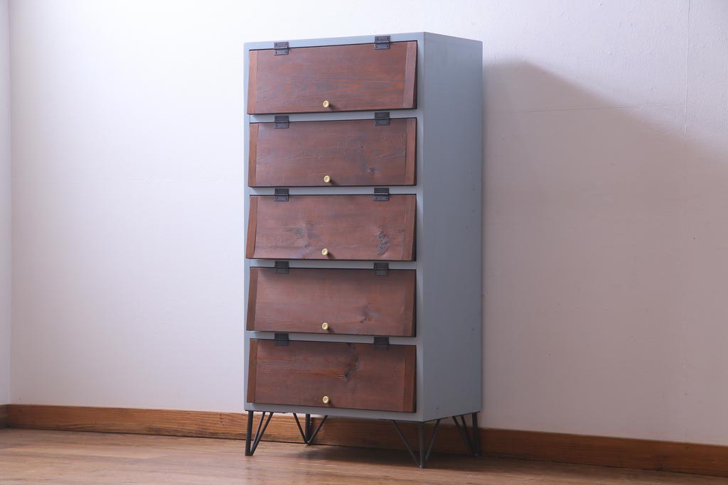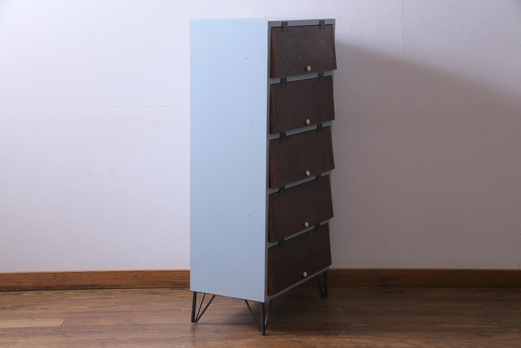 ラフジュ工房オリジナル 鉄脚 白いつまみが可愛らしいパタパタ扉の収納棚(5段タイプ)(戸棚、下駄箱)です。