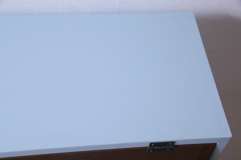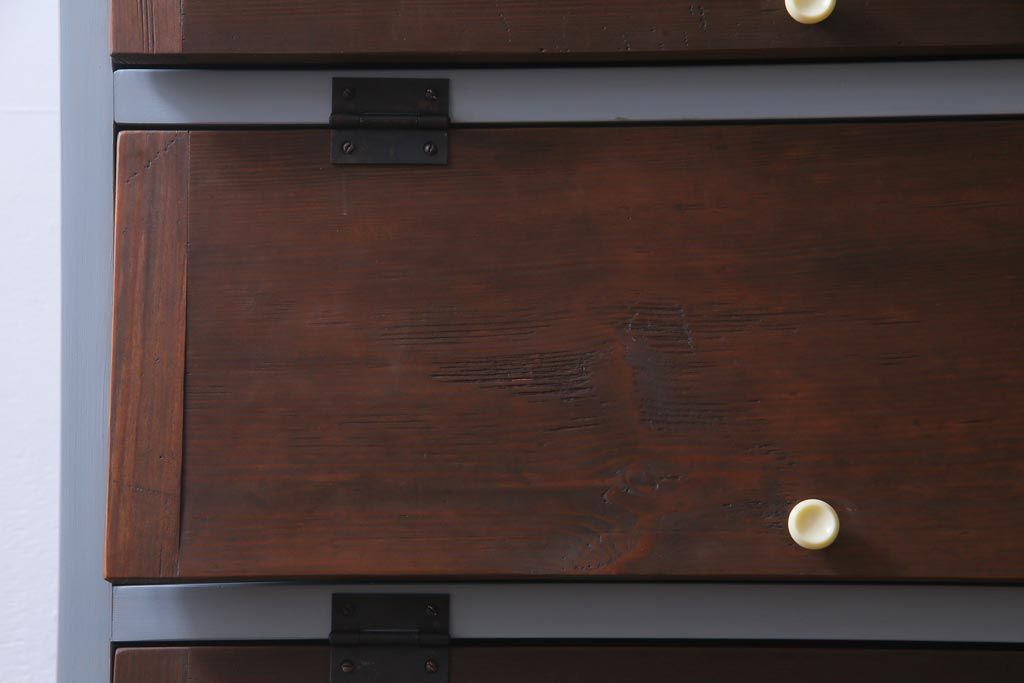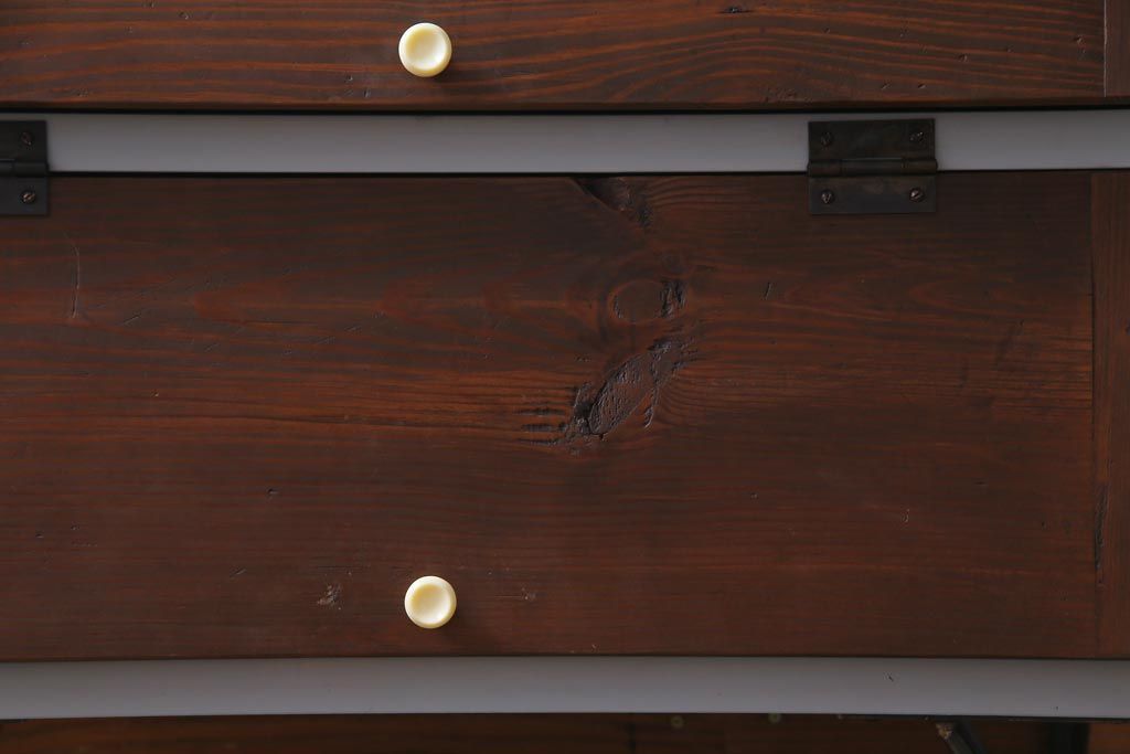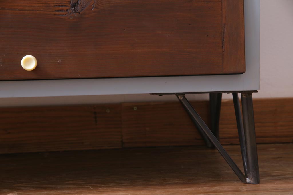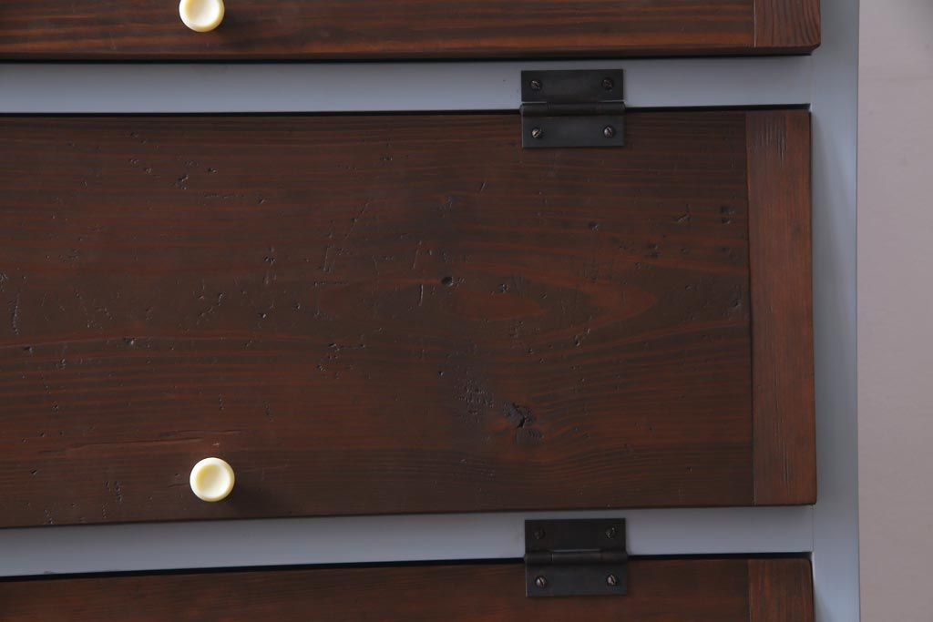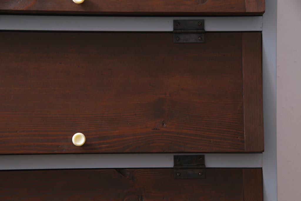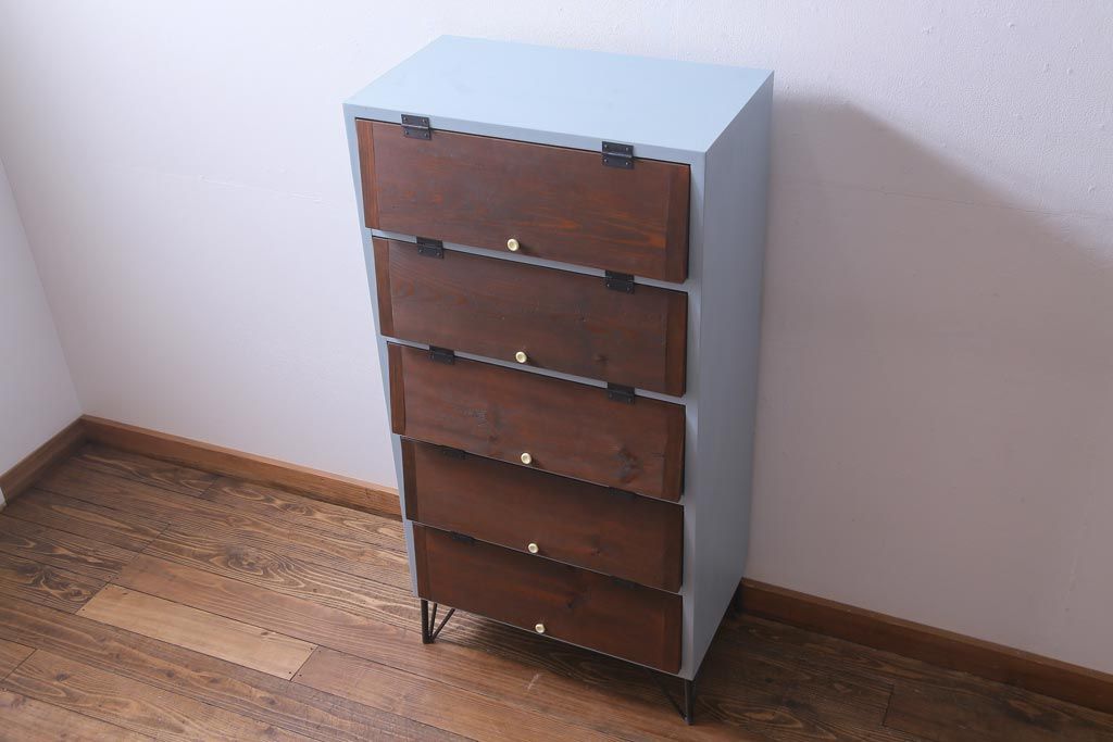 ラフジュ工房オリジナル 鉄脚 白いつまみが可愛らしいパタパタ扉の収納棚(5段タイプ)(戸棚、下駄箱)です。