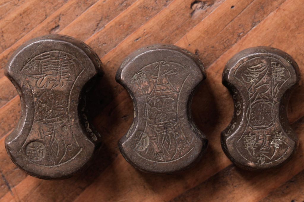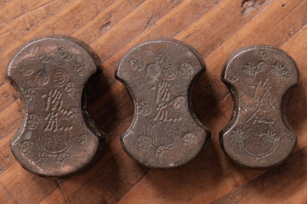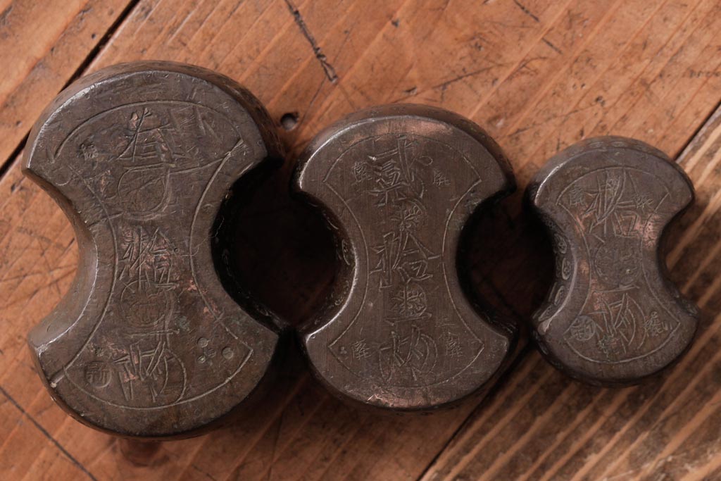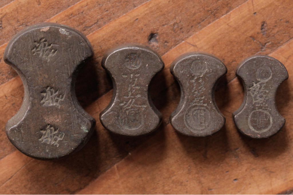 骨董・美術品 > アンティーク雑貨 古民具・骨董 江戸期 両替商天秤ばかり・後藤分銅12個付(計り、針口天秤、両替天秤)(1)