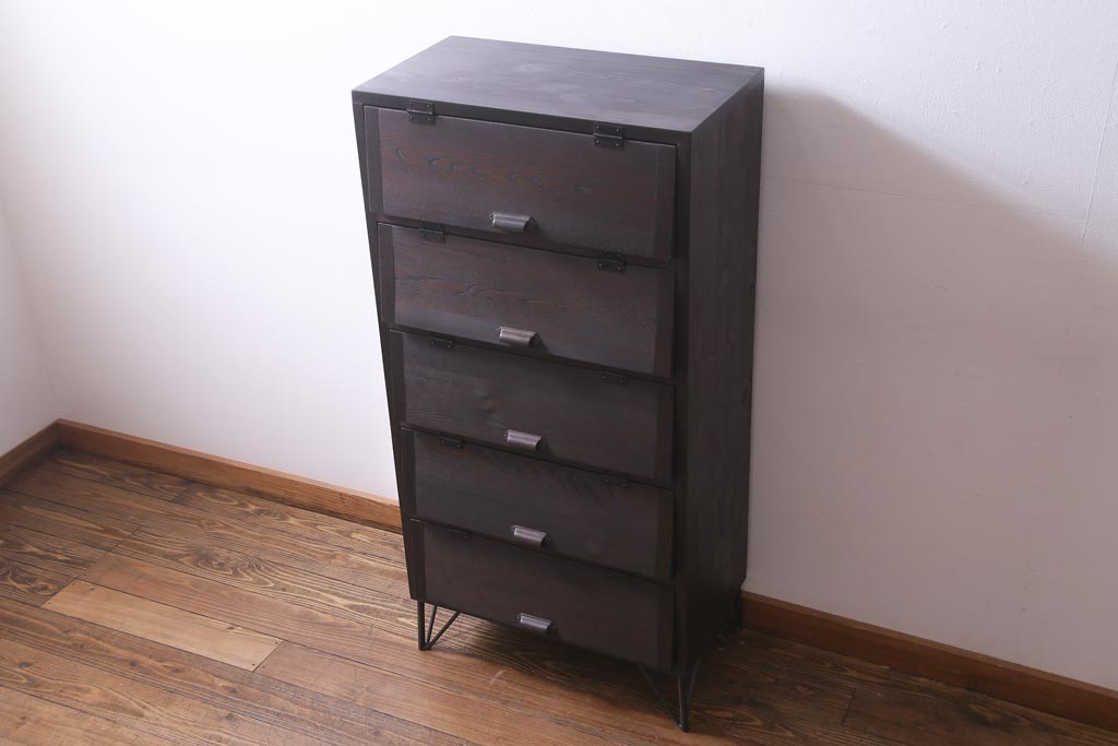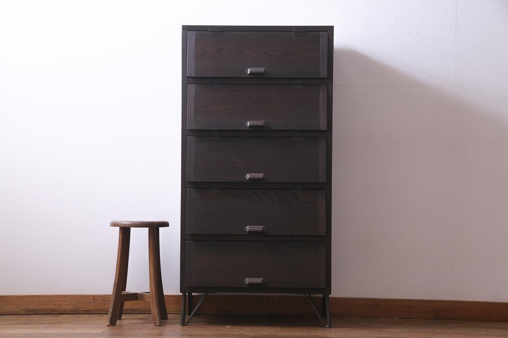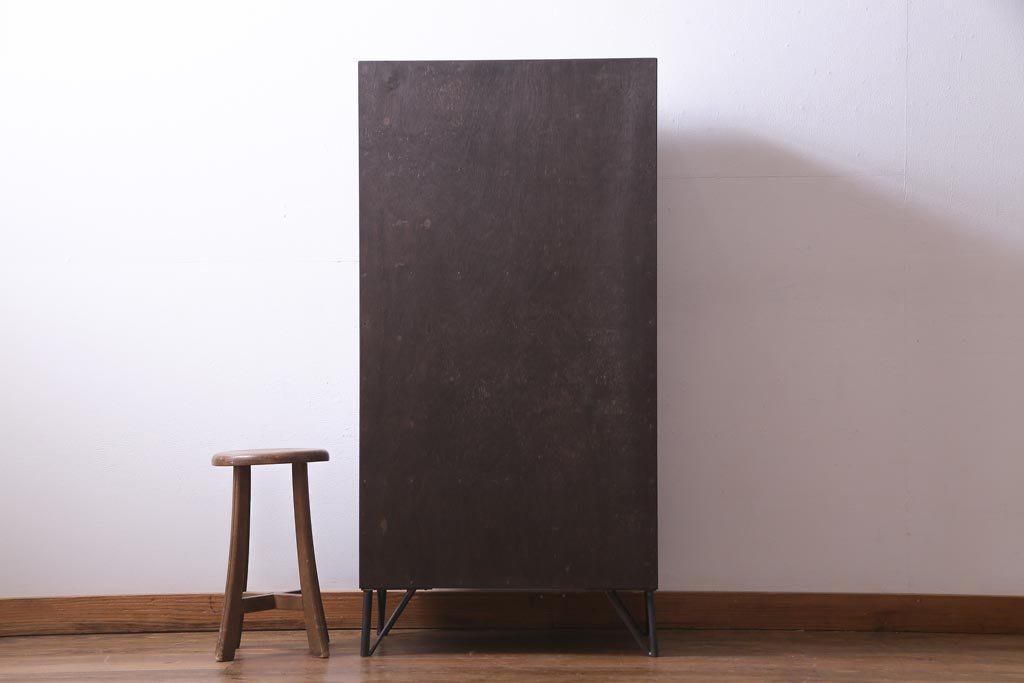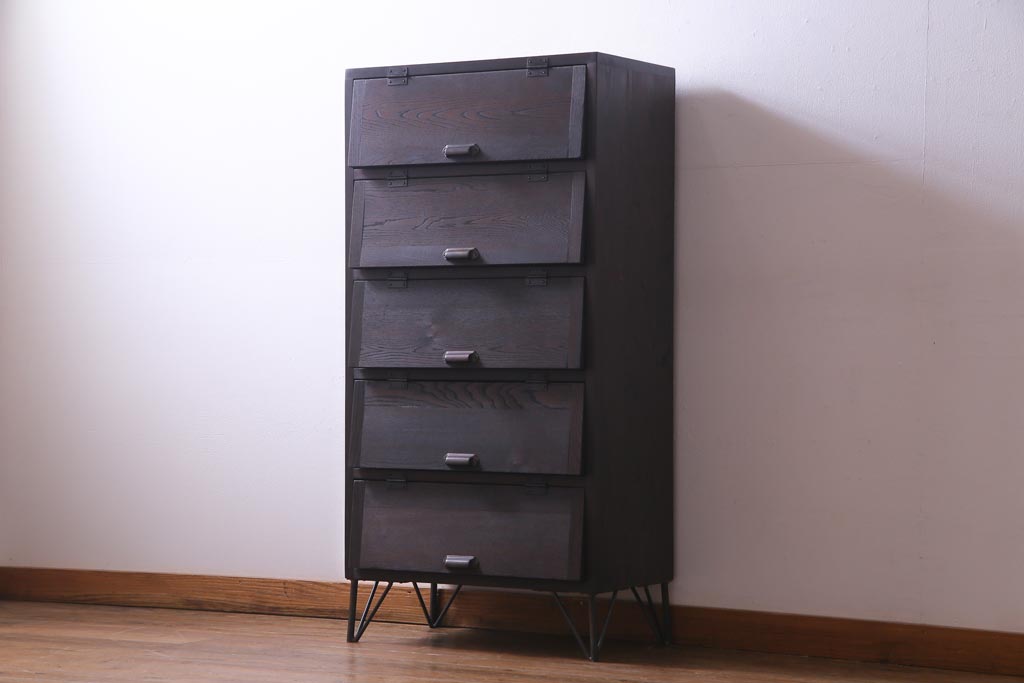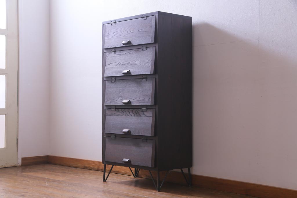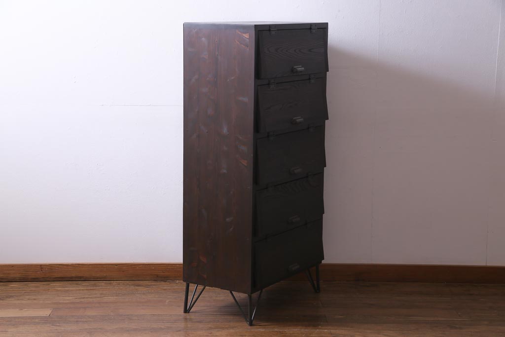 ラフジュ工房オリジナル 鉄脚付き インダストリアルな空間に馴染むパタパタ扉の収納棚(5段タイプ)(戸棚、下駄箱)です。