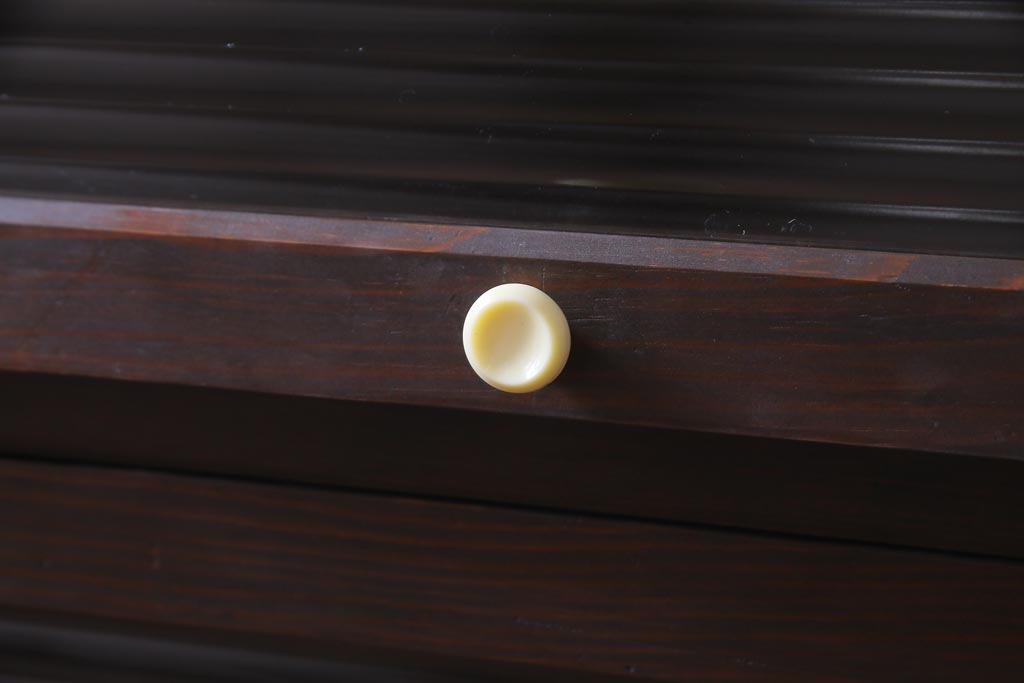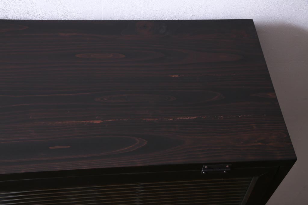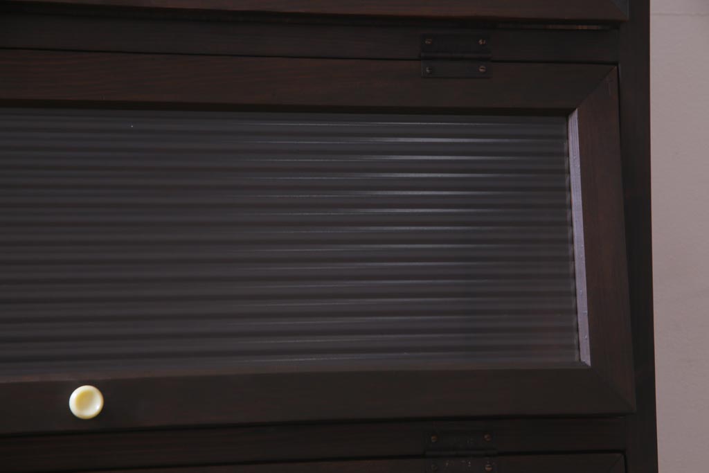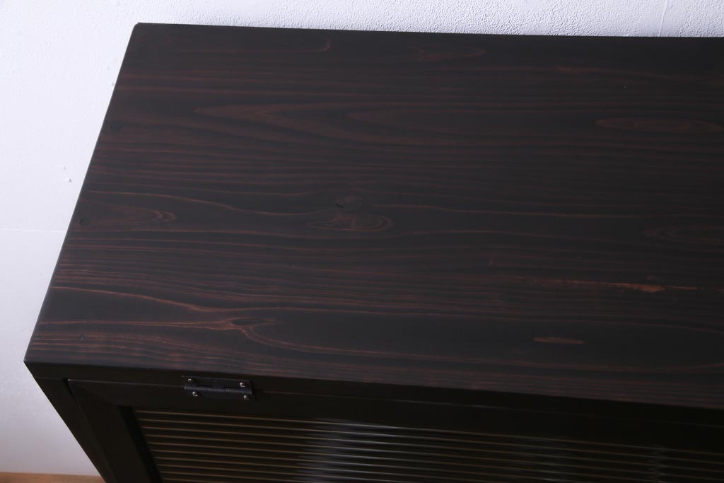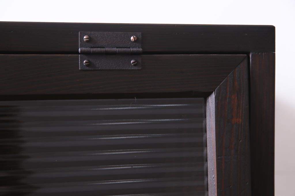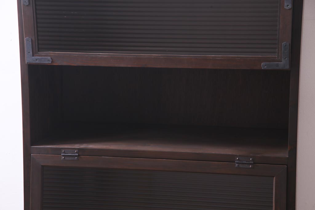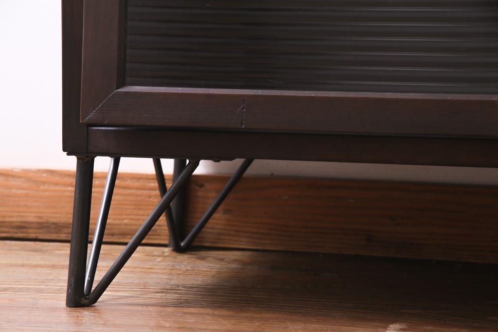 ラフジュ工房オリジナル リメイク家具 モールガラス入り 古材を活用したレトロシックなパタパタ扉の鉄脚付き収納棚(4段タイプ)(キャビネット、下駄箱)