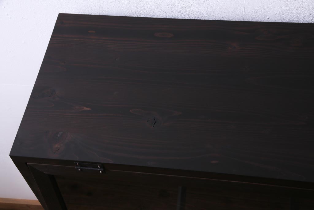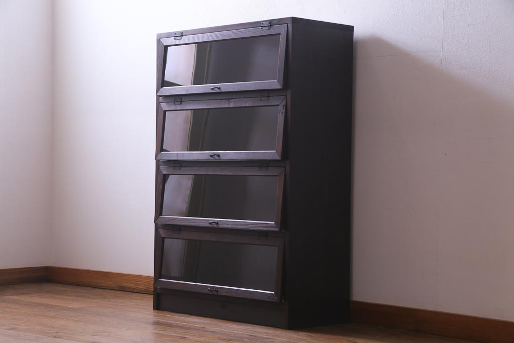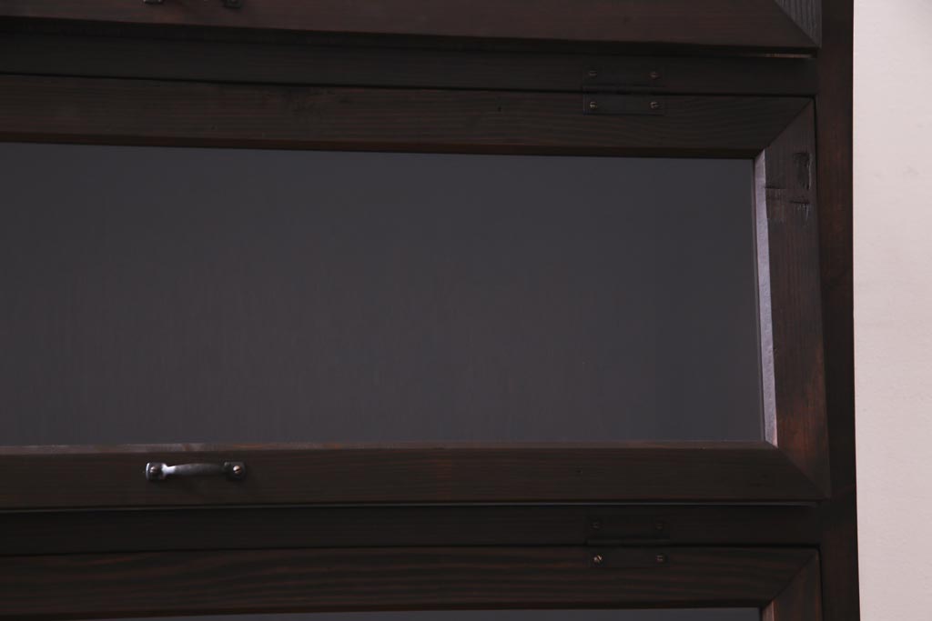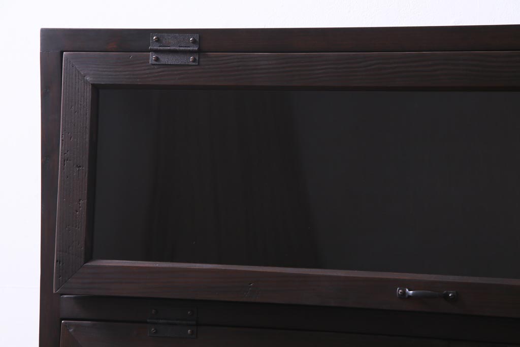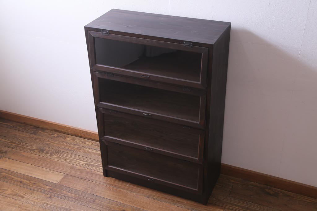 ラフジュ工房オリジナル リメイク家具 見せる収納を楽しめるガラス入りパタパタ扉の収納棚(4段タイプ)(戸棚、下駄箱)