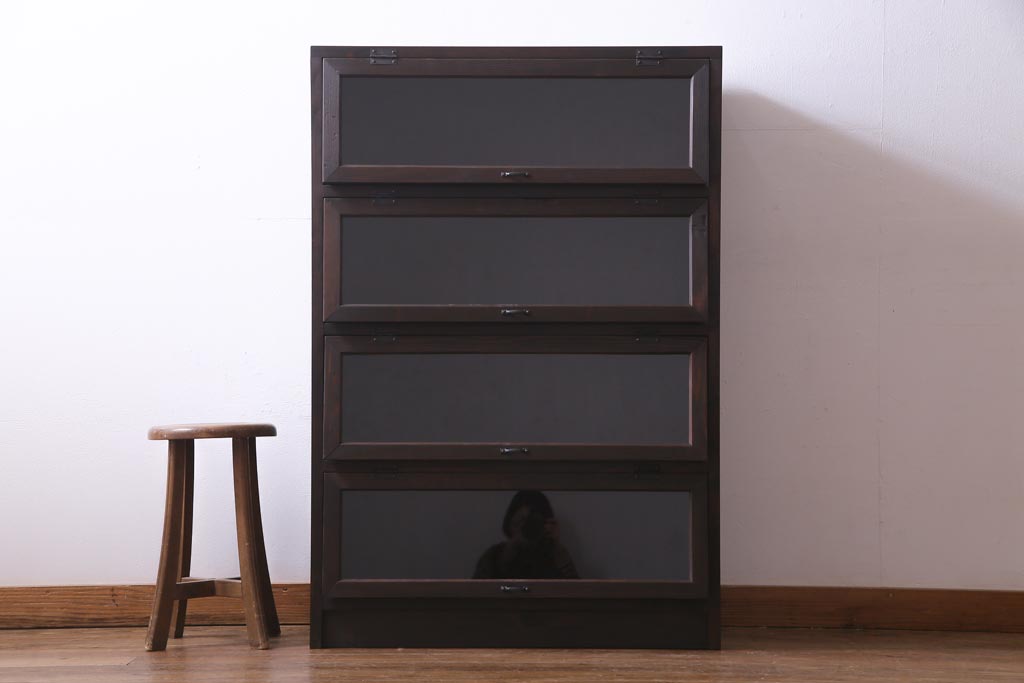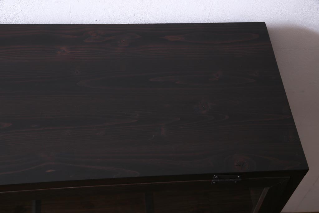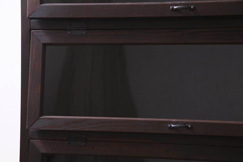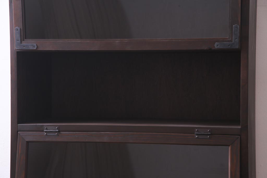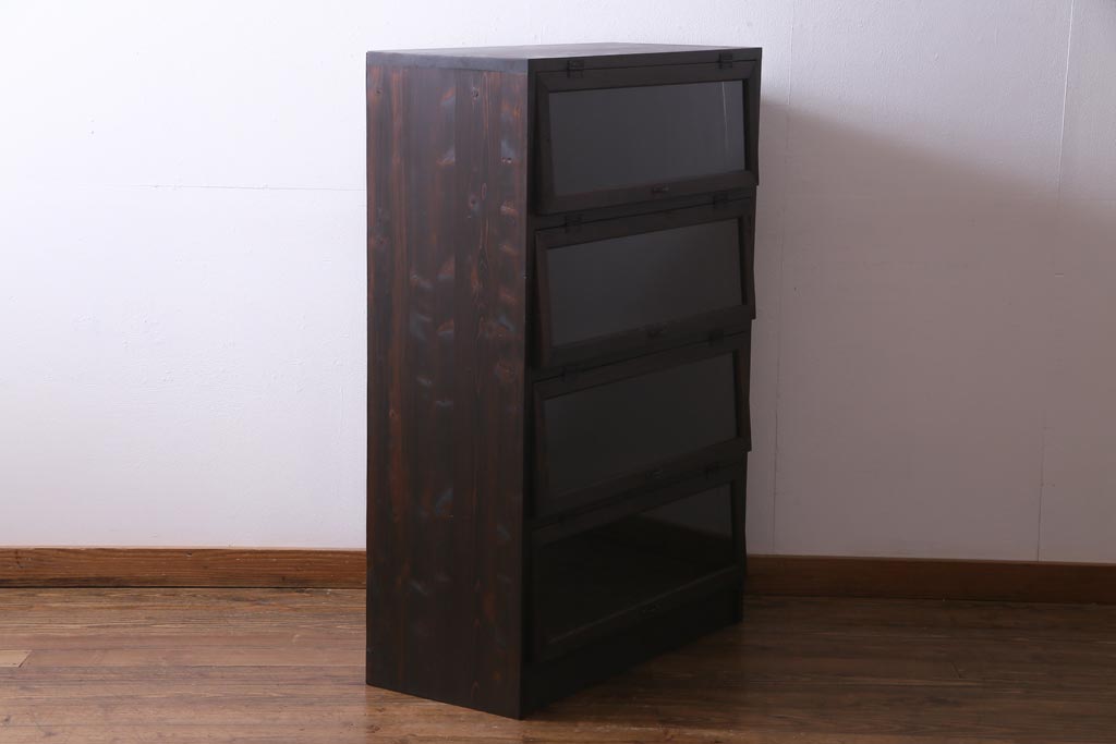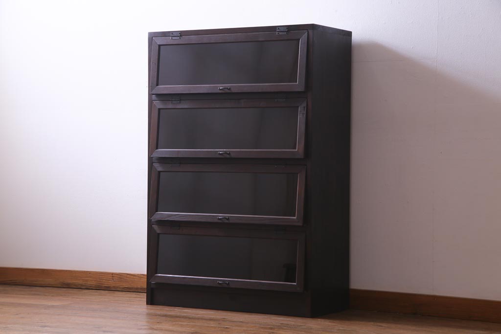 ラフジュ工房オリジナル リメイク家具 見せる収納を楽しめるガラス入りパタパタ扉の収納棚(4段タイプ)(戸棚、下駄箱)