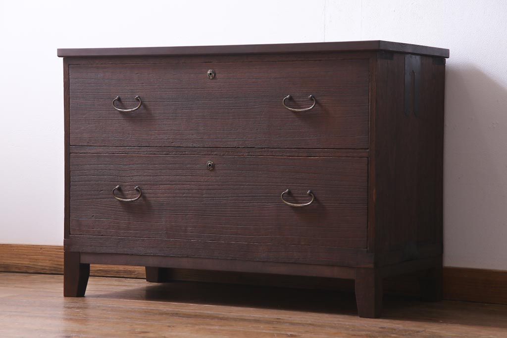 和箪笥> 衣装箪笥 > アンティーク家具 昭和初期 桐材 天板ヒノキ材 シンプルながら品のある脚付き箪笥ローボード(ローチェスト、衣装箪笥、テレビボード、桐箪笥、桐たんす)(1)