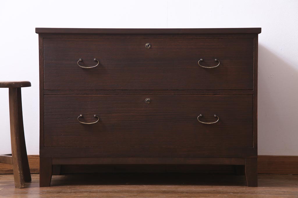 昭和初期 桐材 天板ヒノキ材 シンプルながら品のある脚付き箪笥ローボード(ローチェスト、衣装箪笥、テレビボード)(1)です。