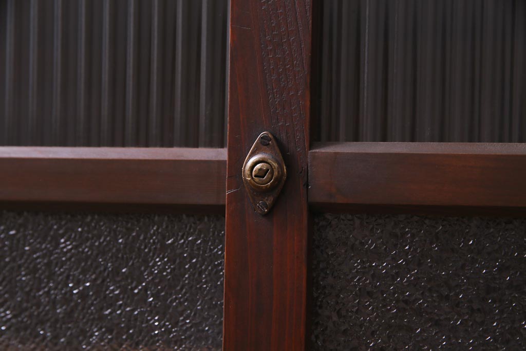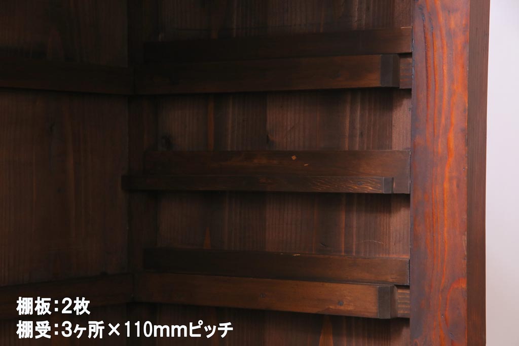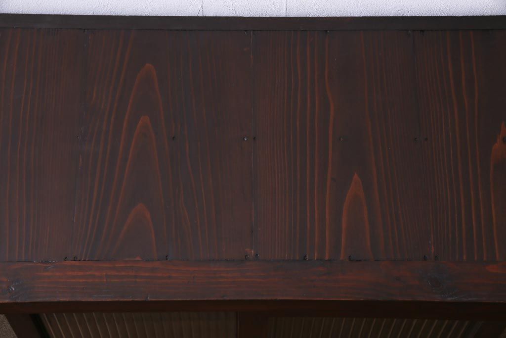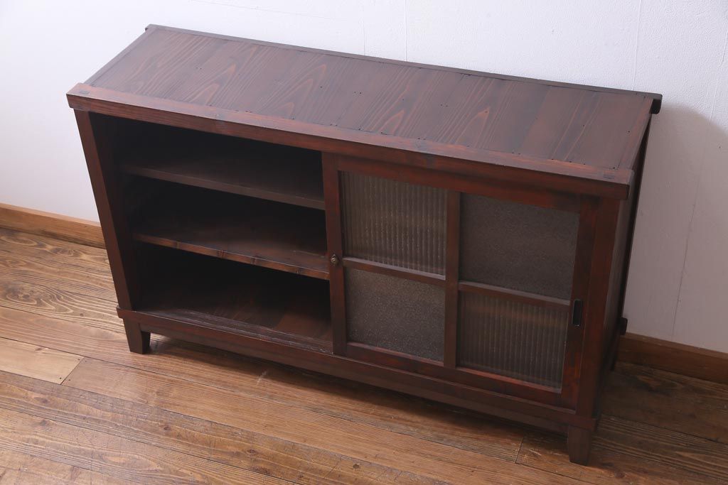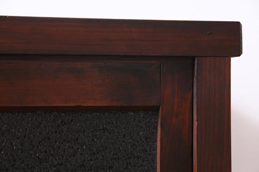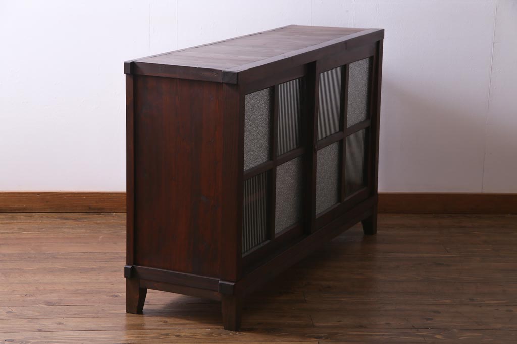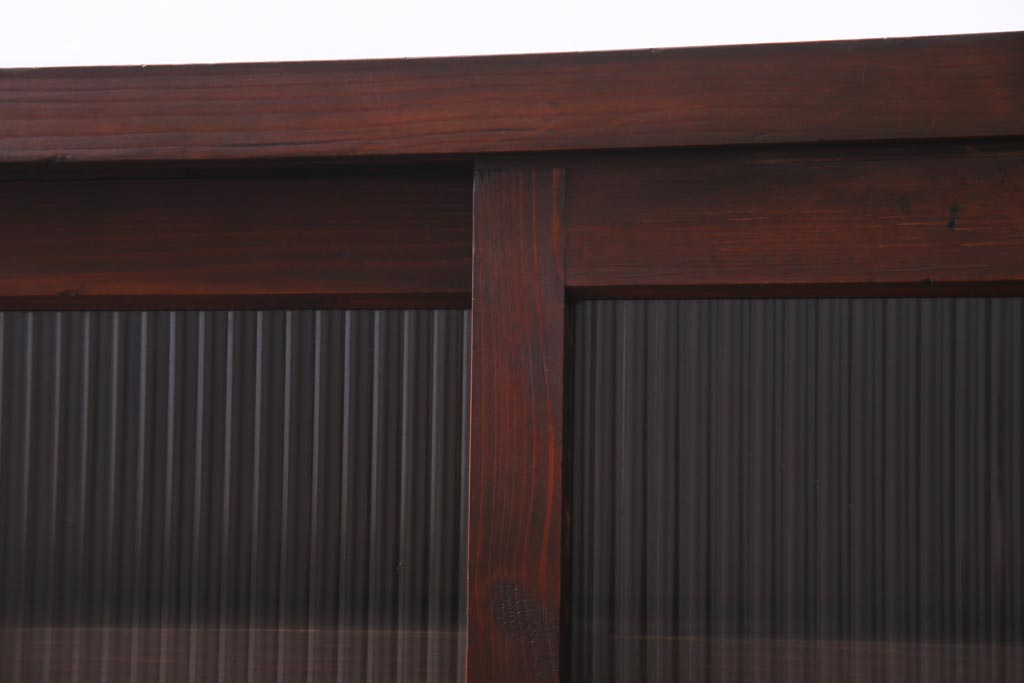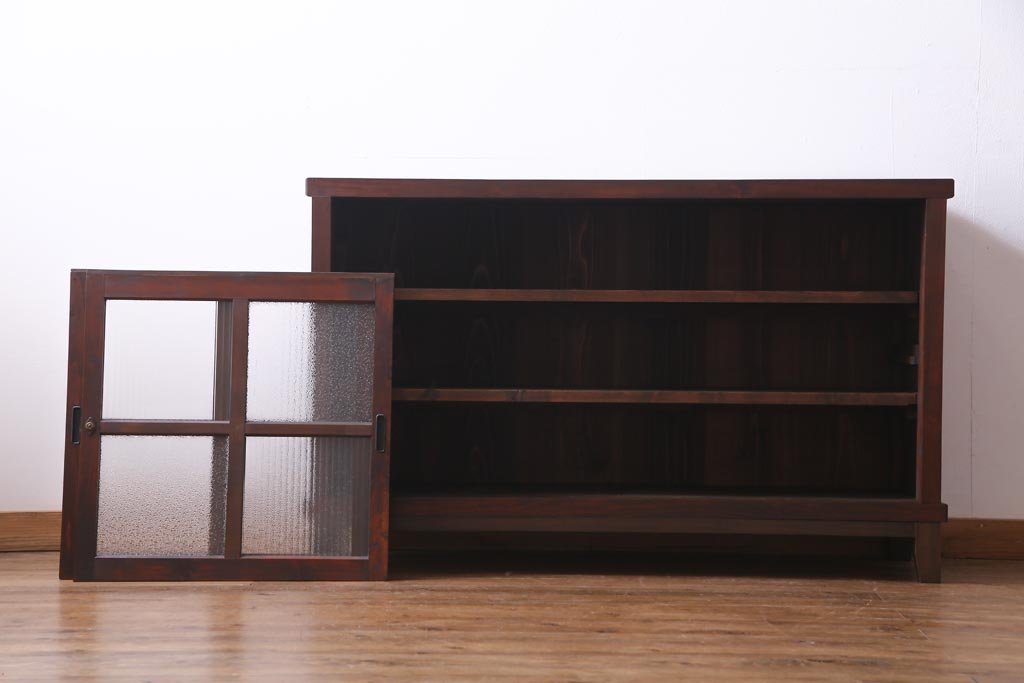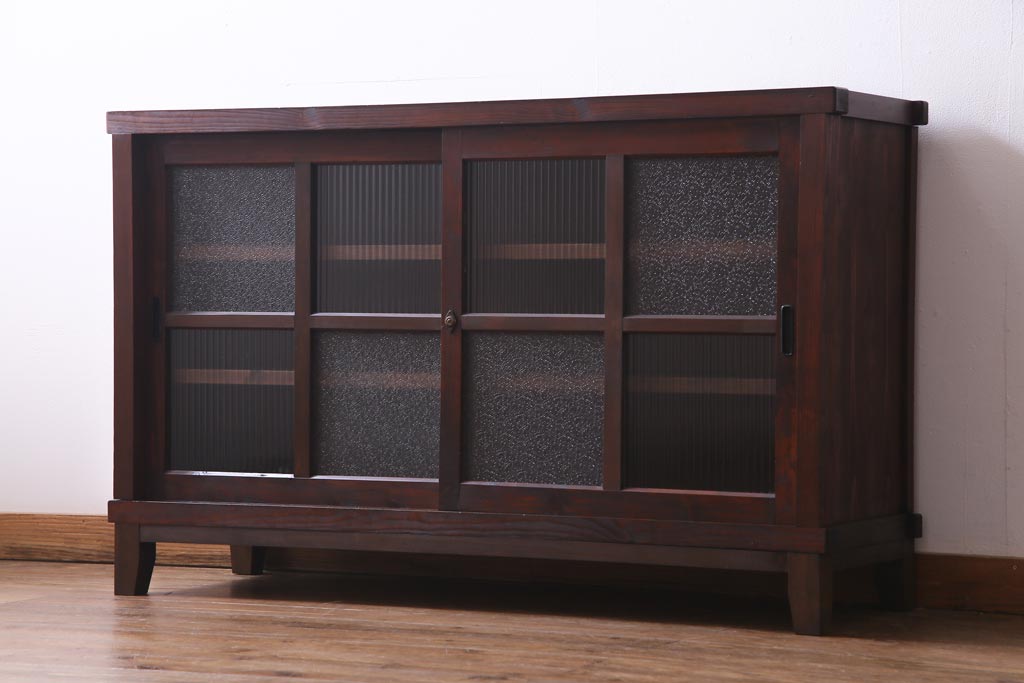 レトロ家具 和製アンティーク 杉・ヒノキ材 レトロガラスがモダンな雰囲気を高める脚付き戸棚(収納棚、サイドボード)