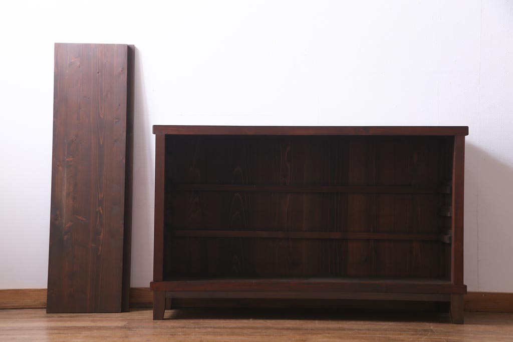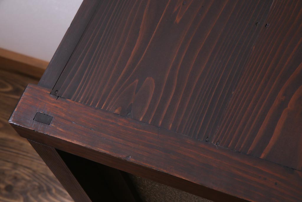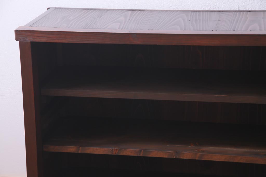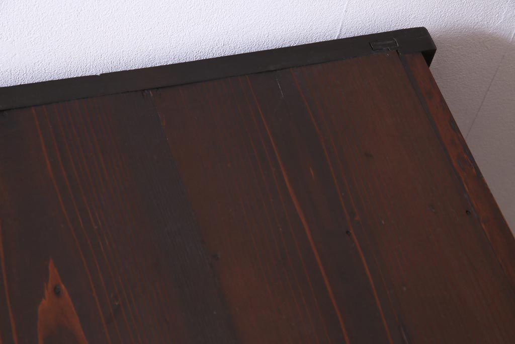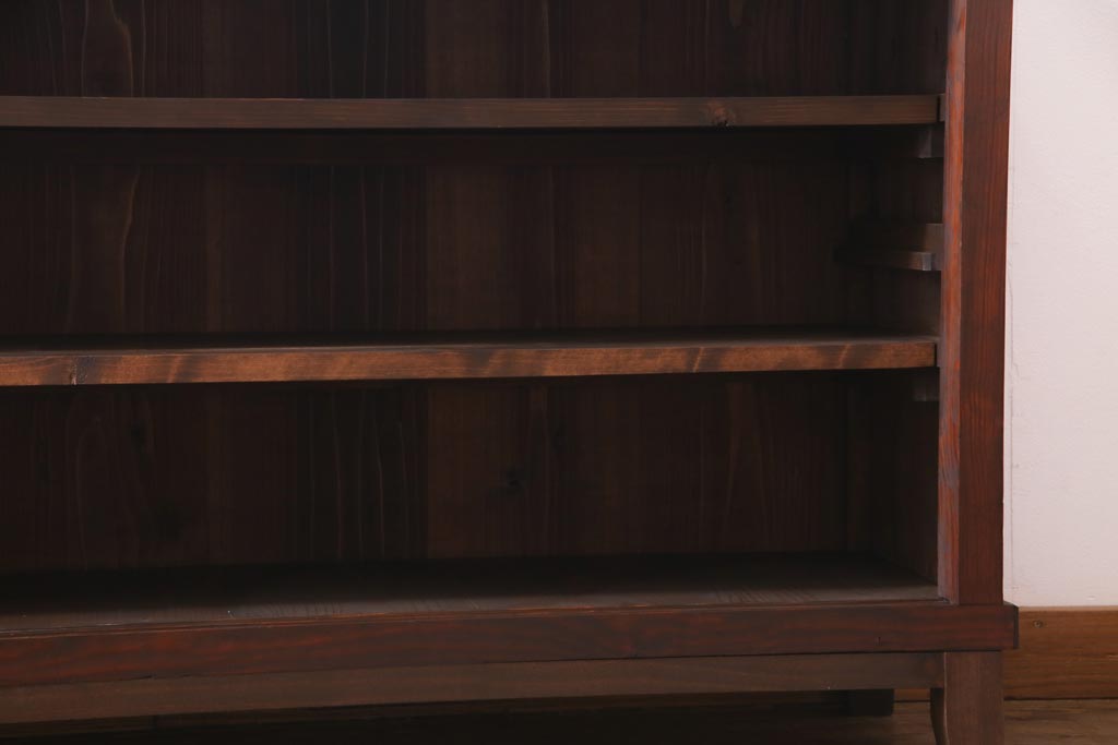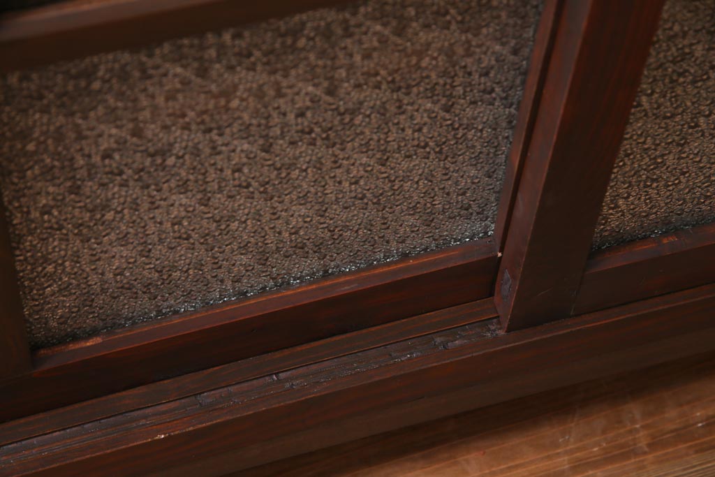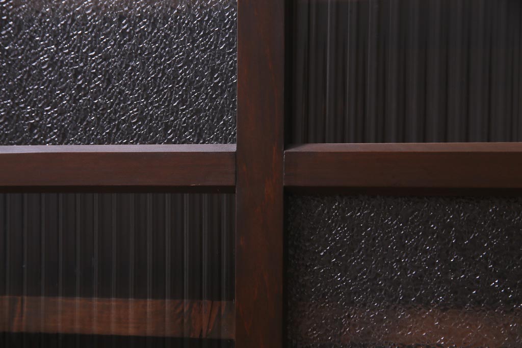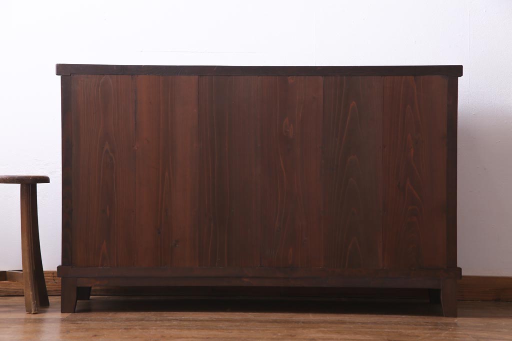 レトロ家具 和製アンティーク 杉・ヒノキ材 レトロガラスがモダンな雰囲気を高める脚付き戸棚(収納棚、サイドボード)