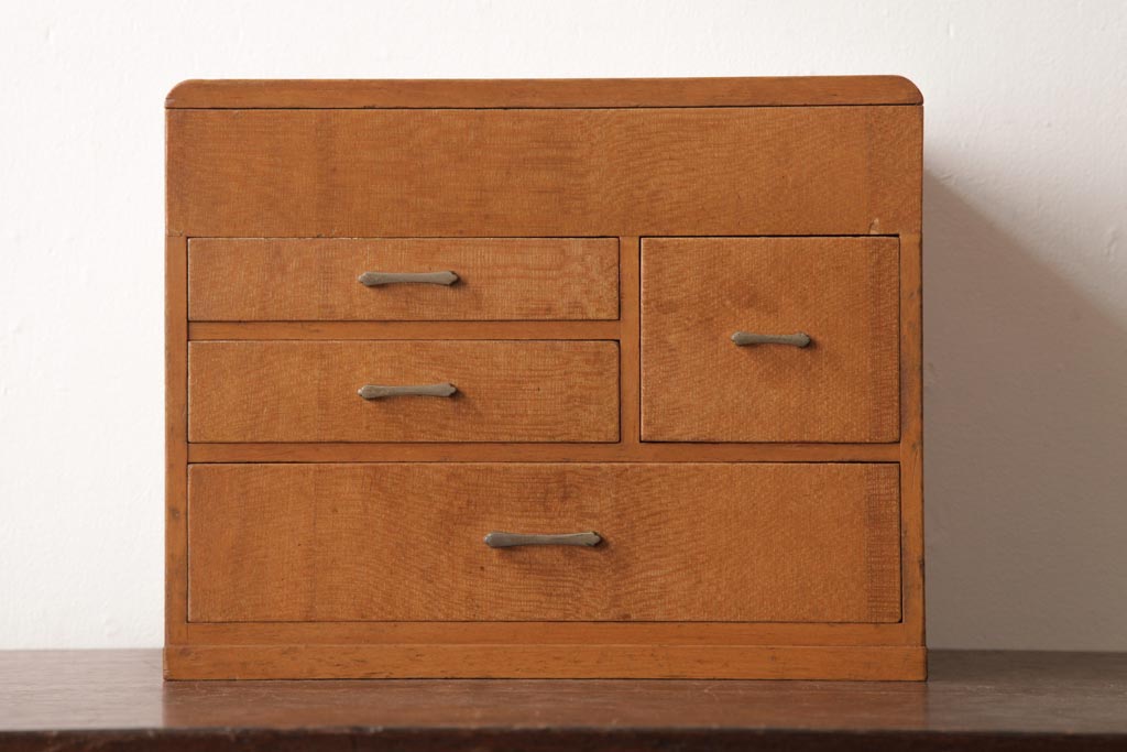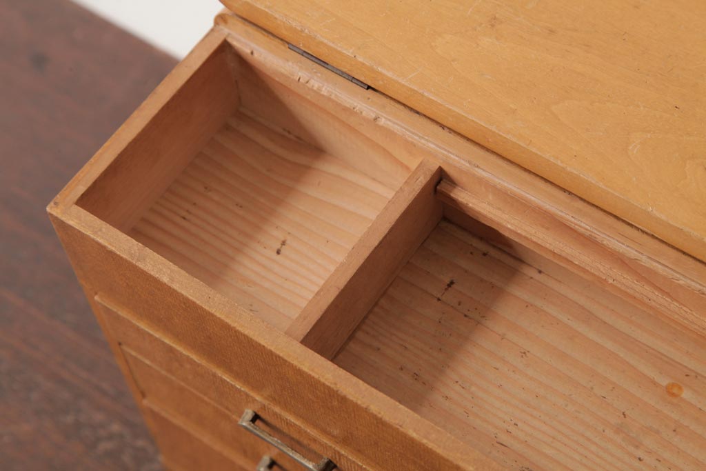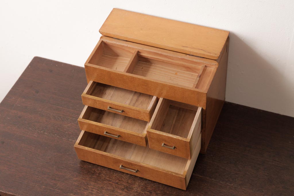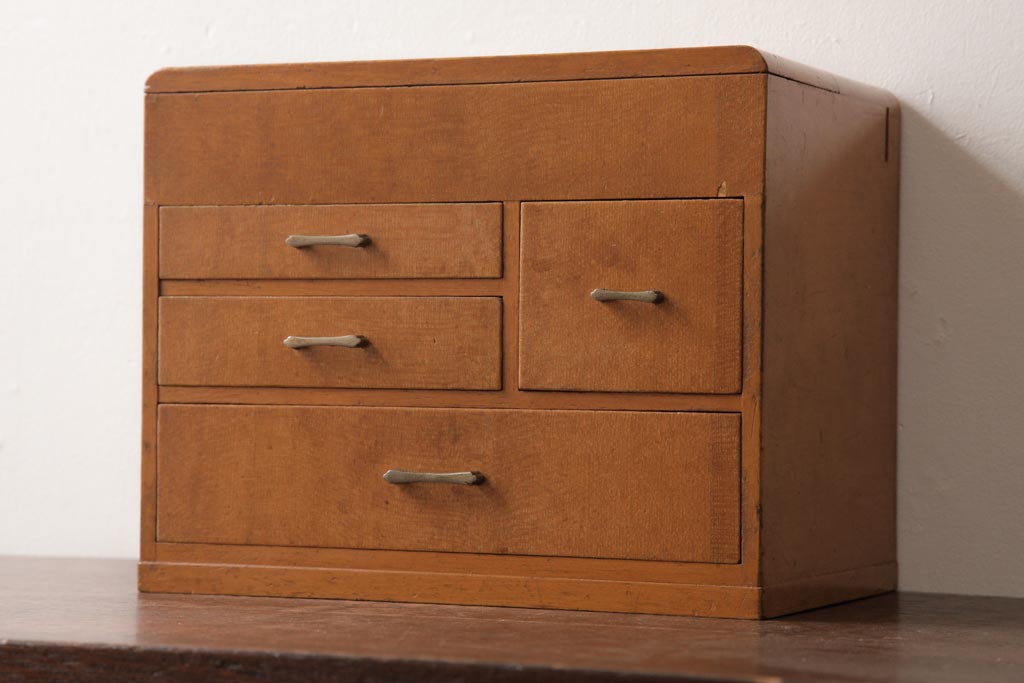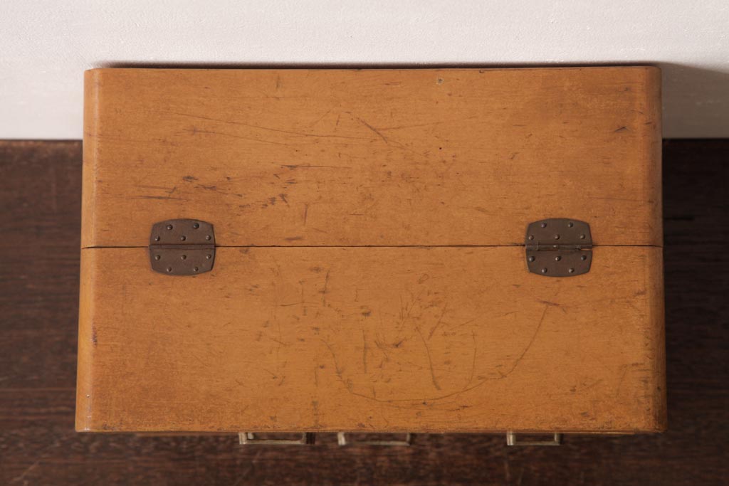 アンティーク雑貨 昭和レトロ 明るい木色が柔らかな雰囲気醸し出す裁縫箱(小引き出し、ソーイングボックス)