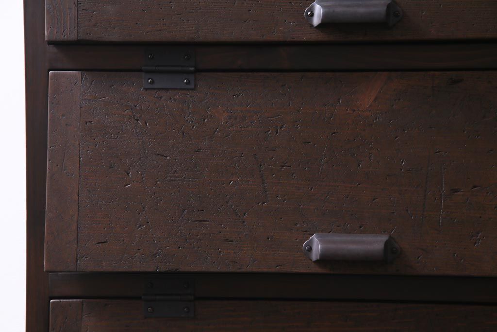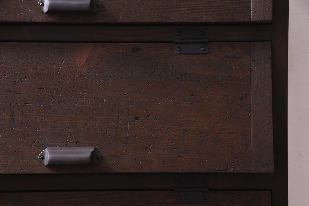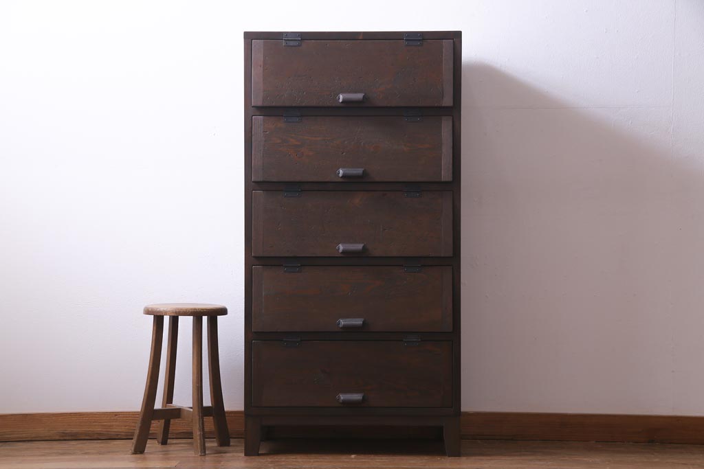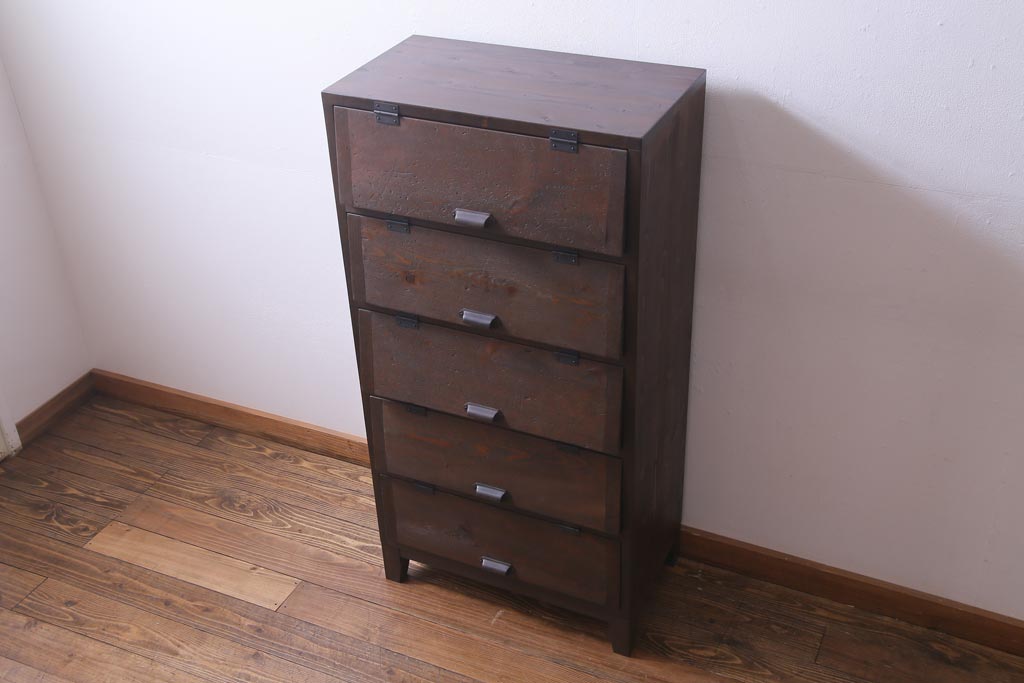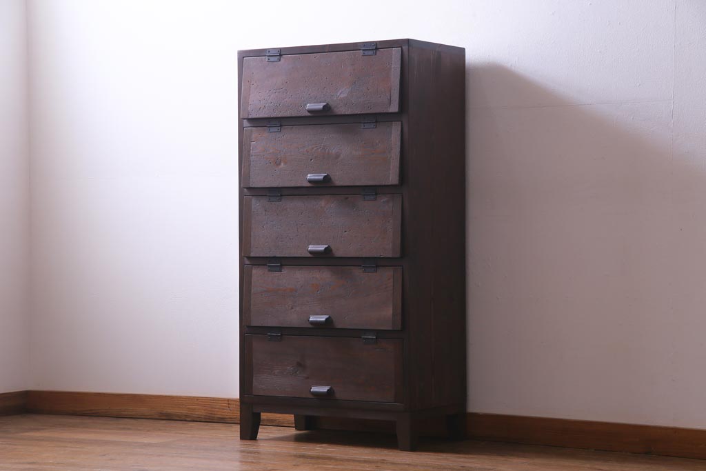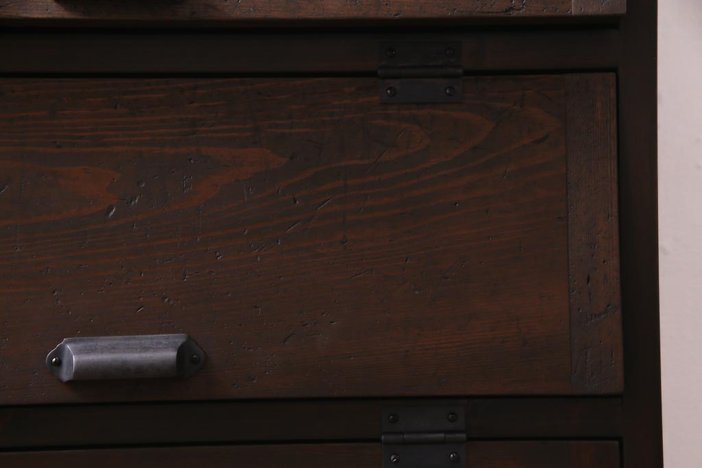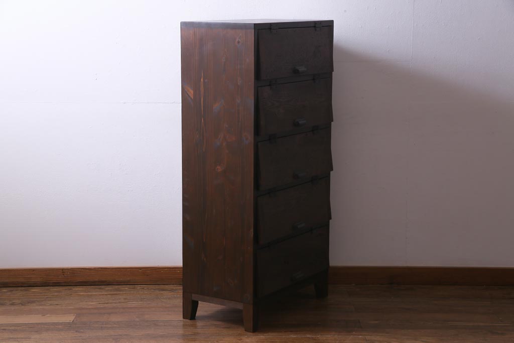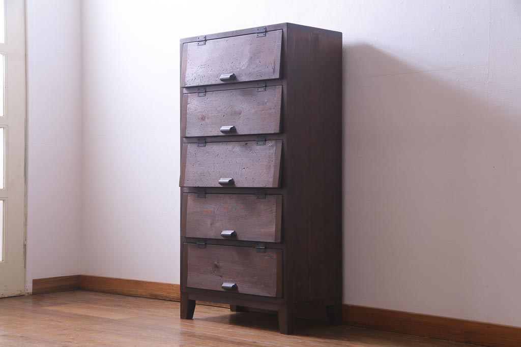 ラフジュ工房オリジナル 前面松材 古材の風合いが味わい深い脚付きパタパタ収納棚(5段タイプ)(戸棚、下駄箱)