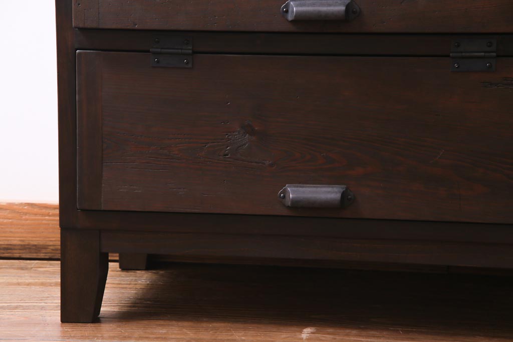 ラフジュ工房オリジナル 前面松材 古材の風合いが味わい深い脚付きパタパタ収納棚(5段タイプ)(戸棚、下駄箱)です。