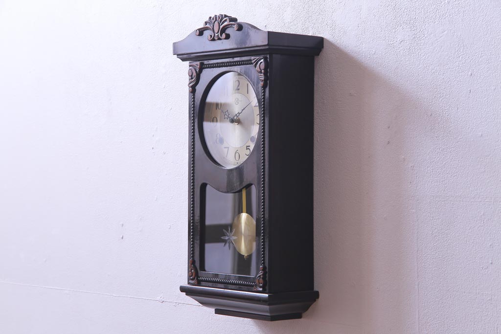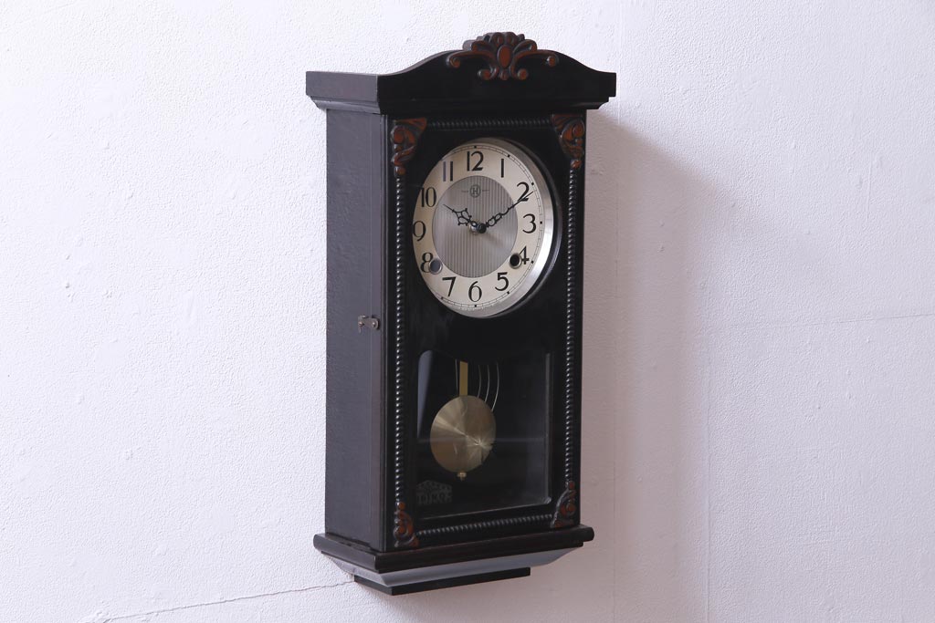 和製アンティーク 日比野時計 電池式 クラシカルな佇まいが素敵な柱時計(壁掛け時計)です。