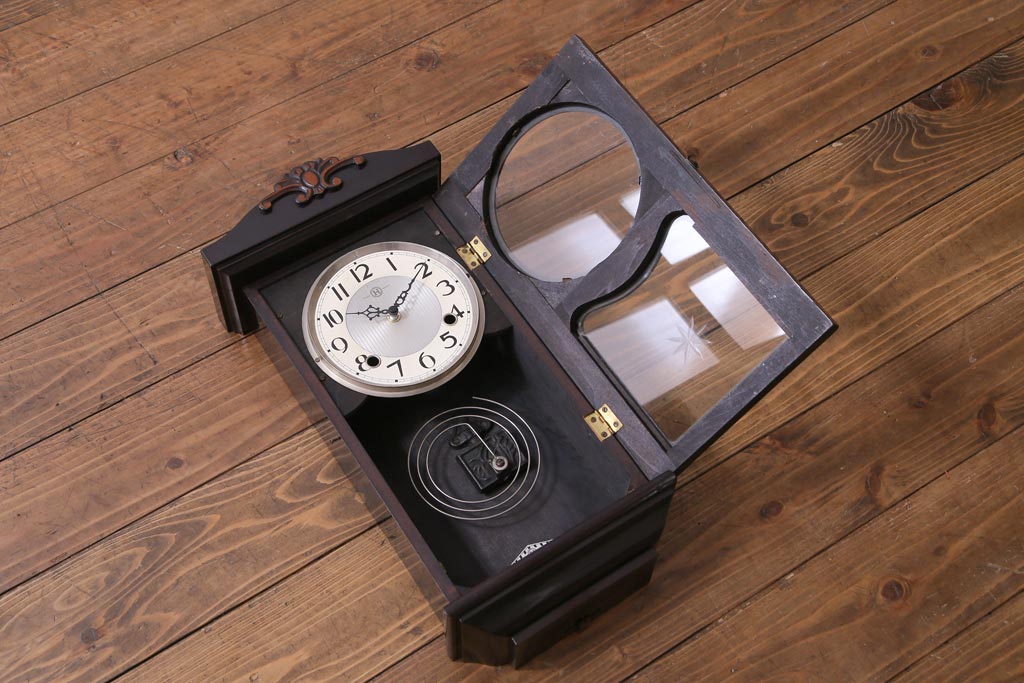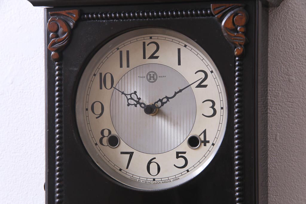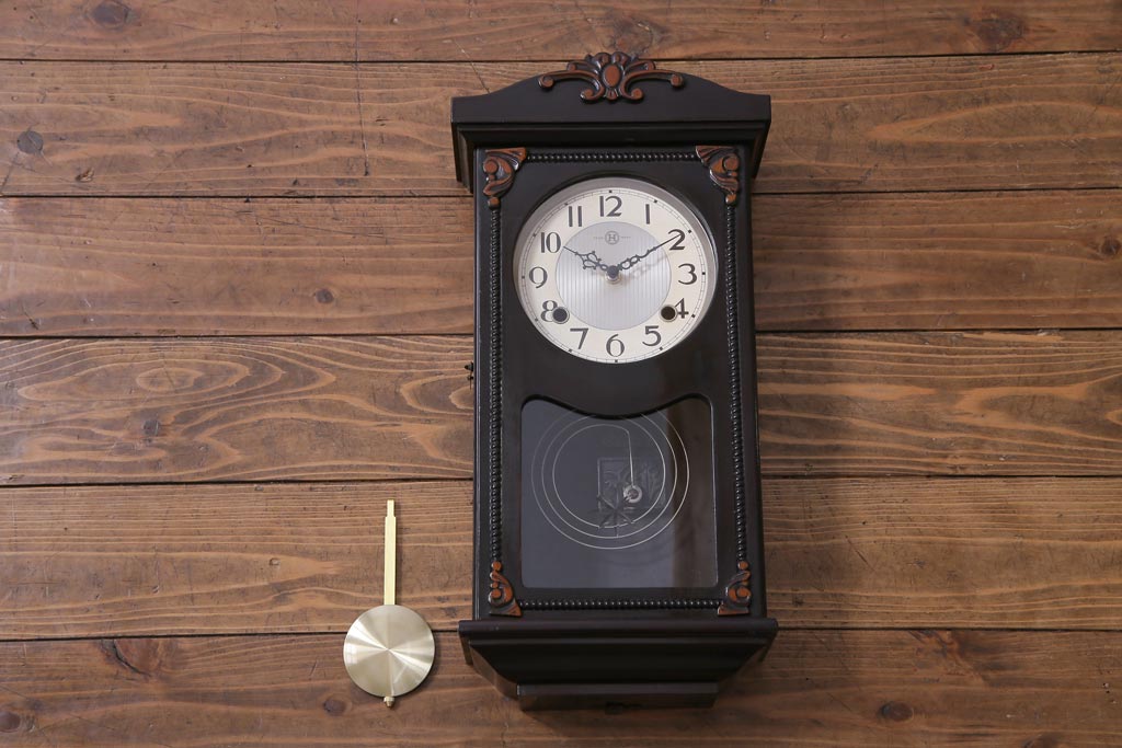 アンティーク雑貨 和製アンティーク 日比野時計 電池式 クラシカルな佇まいが素敵な柱時計(壁掛け時計)