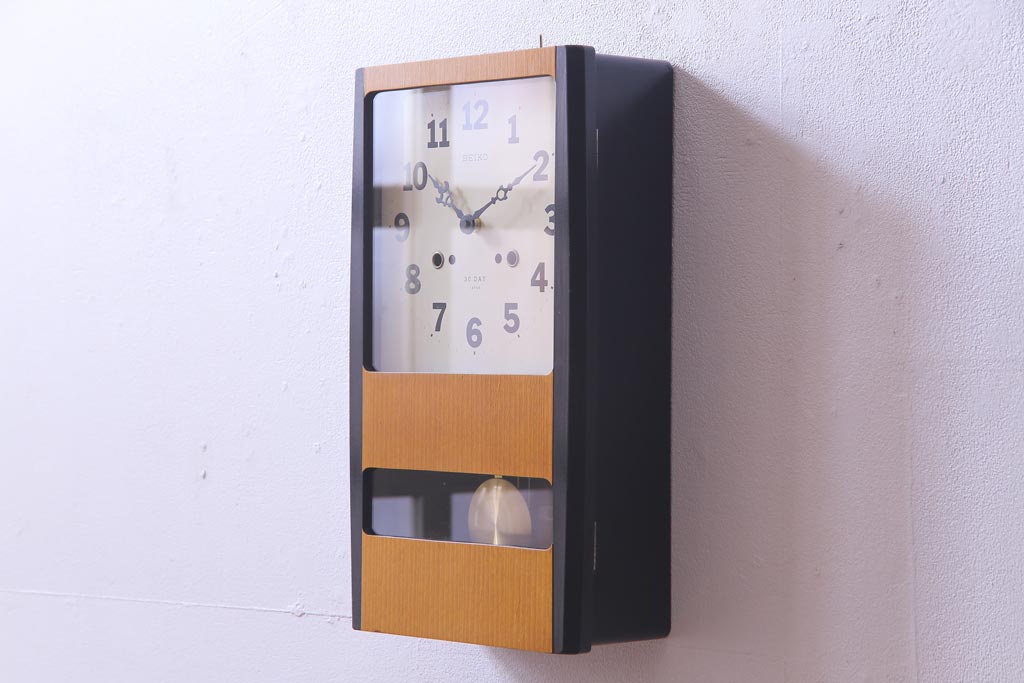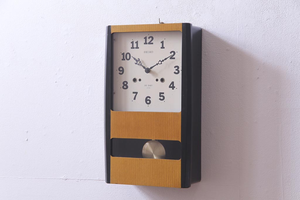 昭和中期 SEIKO(セイコー) 電池式 昭和レトロな雰囲気がお洒落な掛け時計(柱時計)です。