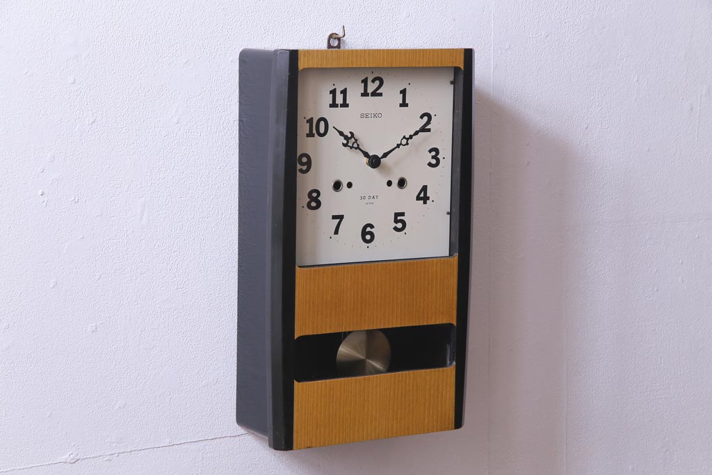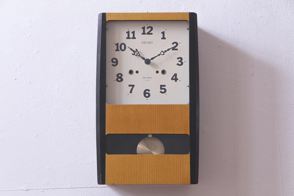 時計> 掛け時計 > アンティーク雑貨 昭和中期 SEIKO(セイコー) 電池式 昭和レトロな雰囲気がお洒落な掛け時計(柱時計)