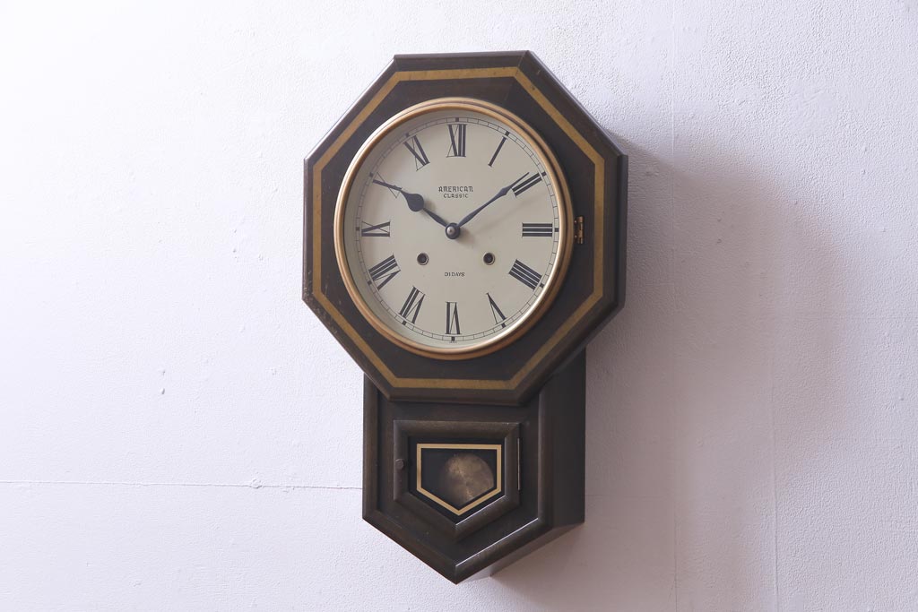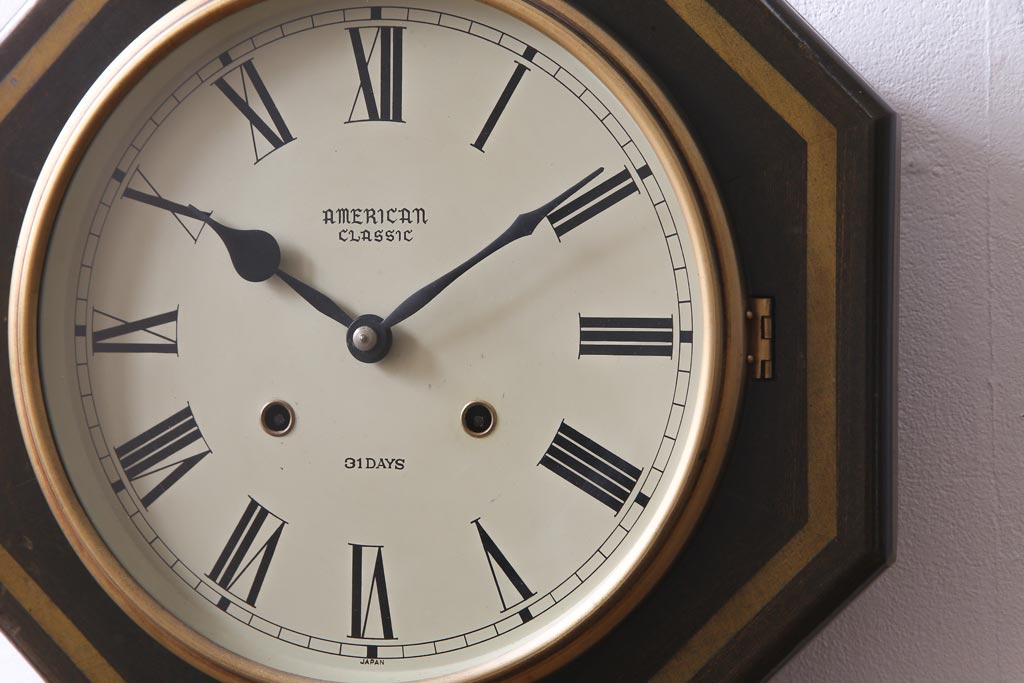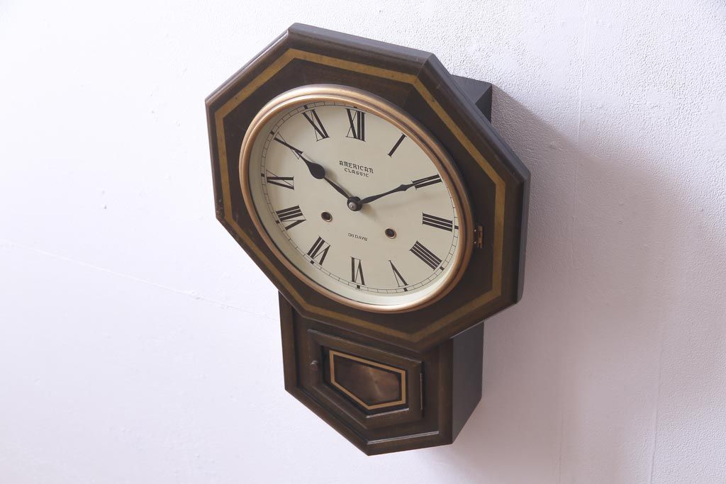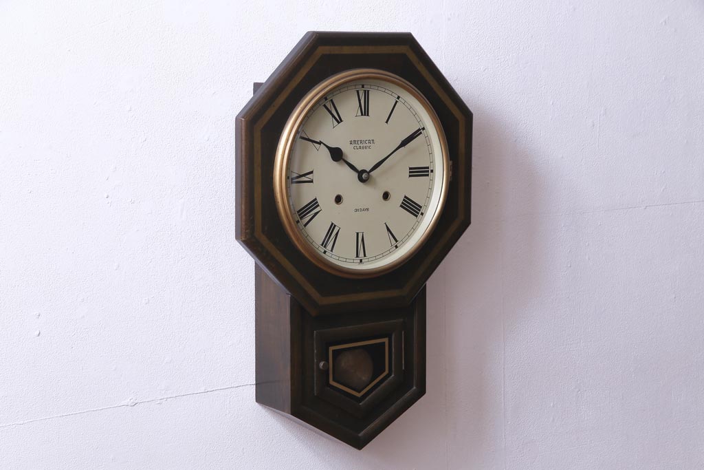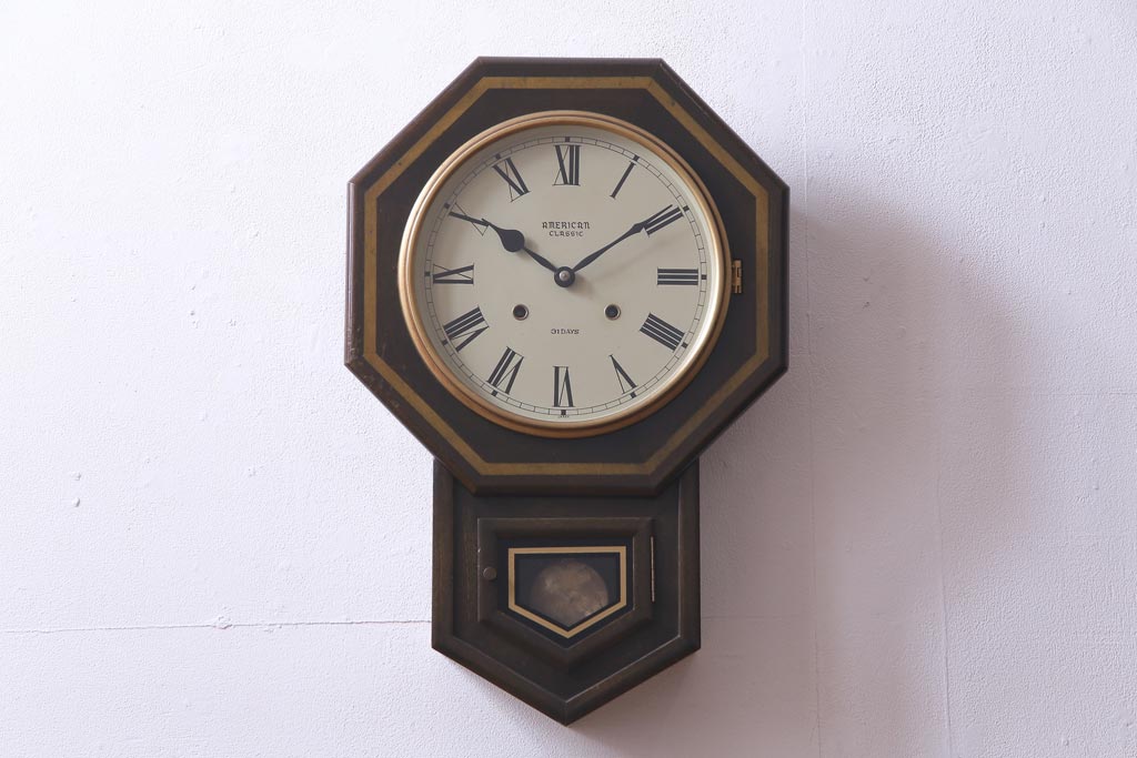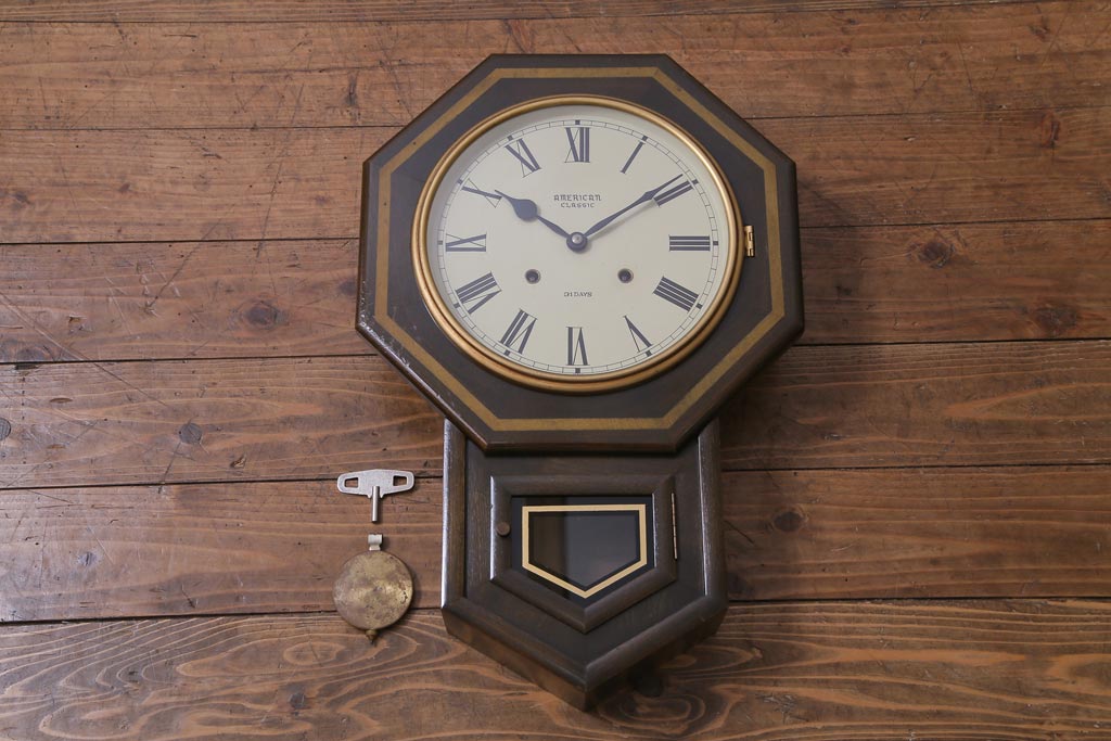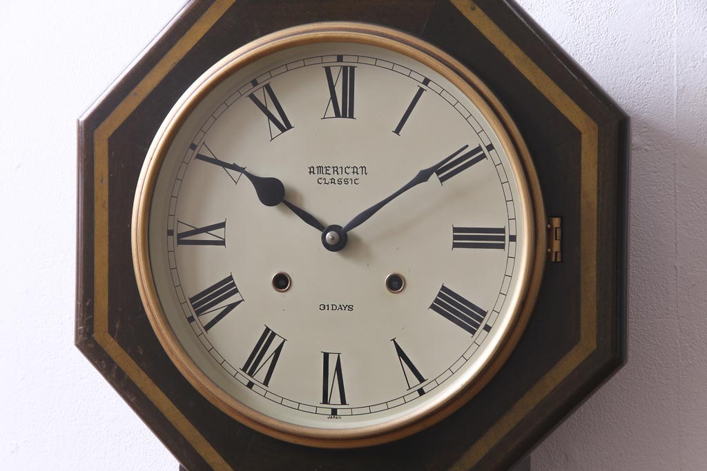 時計> 掛け時計 > アンティーク雑貨 美品 手巻き ゼンマイ式 31DAYS ビンテージの八角柱時計(振り子時計、掛け時計)