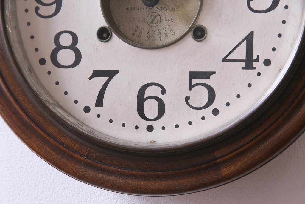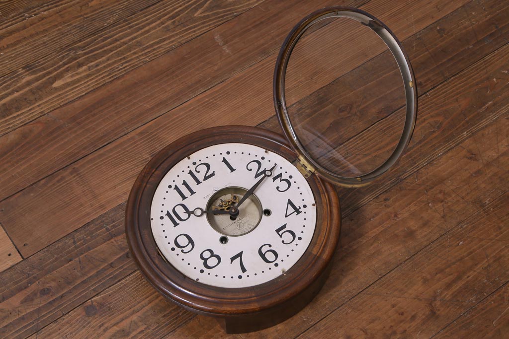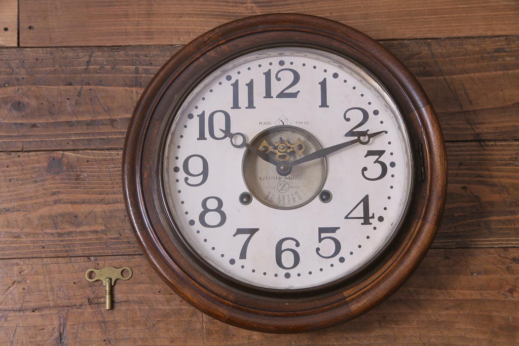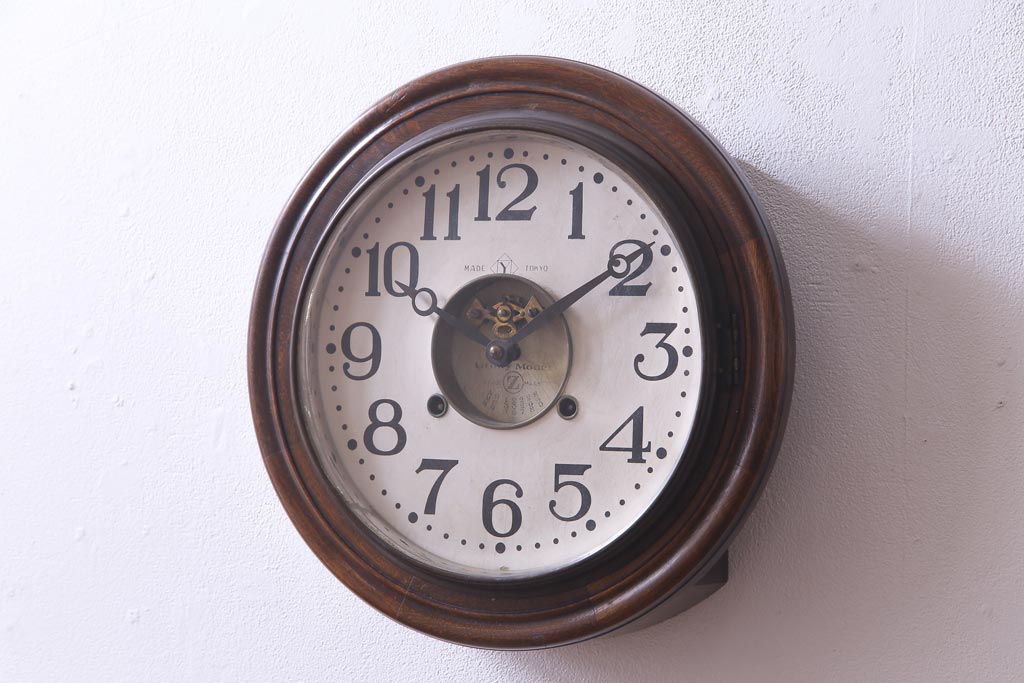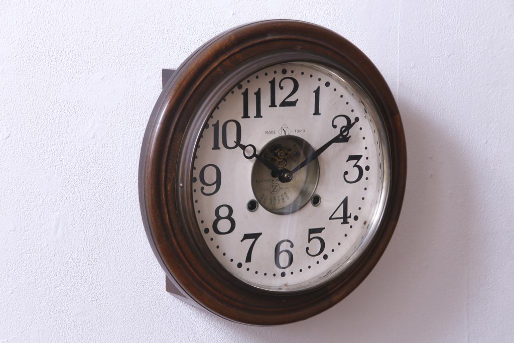 アンティーク雑貨 和製アンティーク 戦前 Zマーク 手巻き式 テンプ式 丸い木製の柱時計(掛け時計)