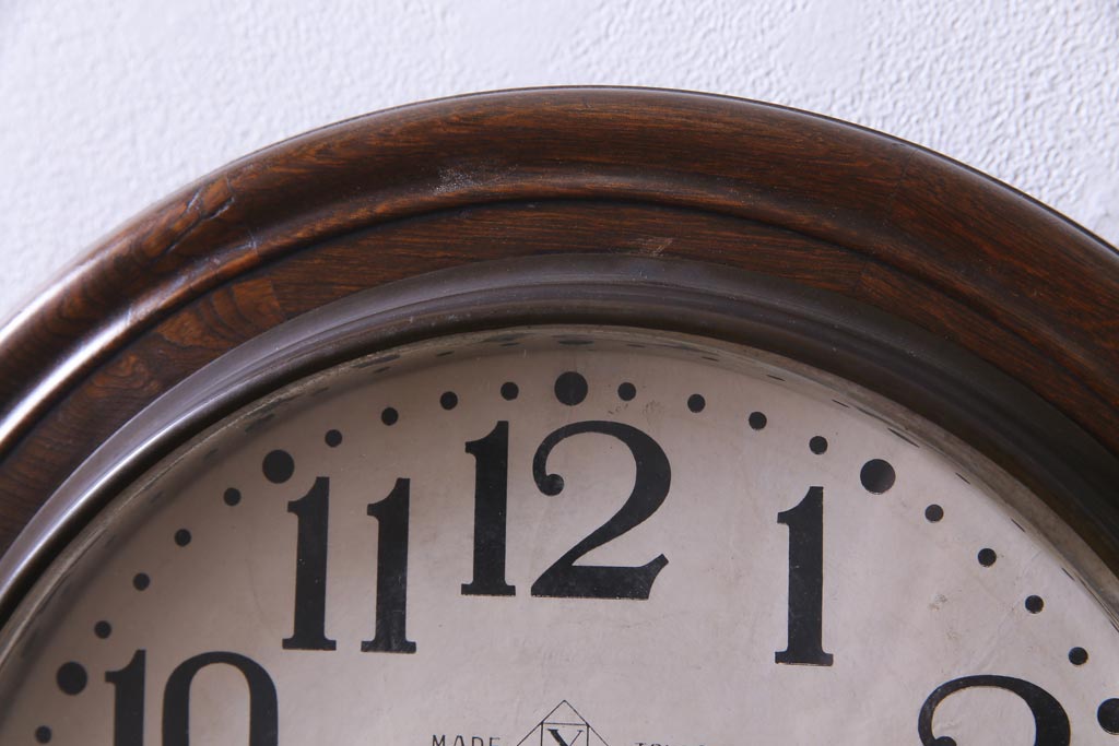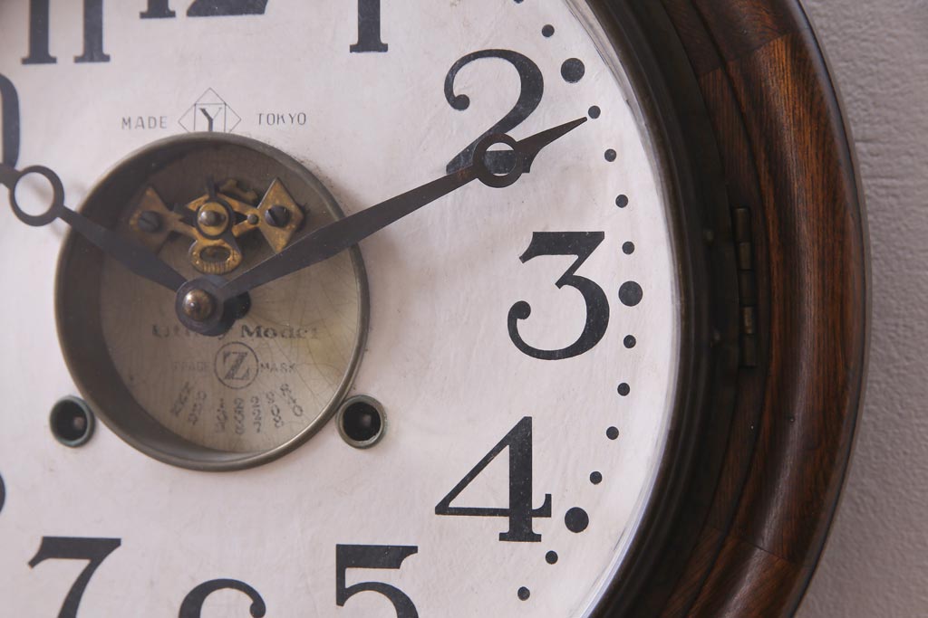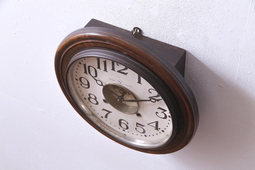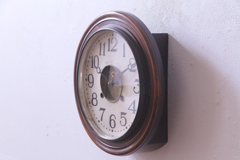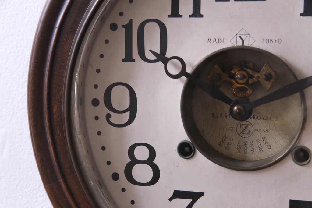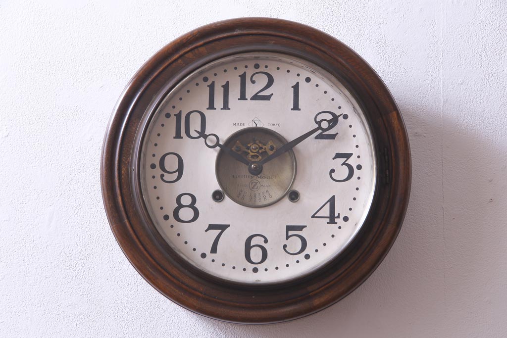 アンティーク雑貨 和製アンティーク 戦前 Zマーク 手巻き式 テンプ式 丸い木製の柱時計(掛け時計)