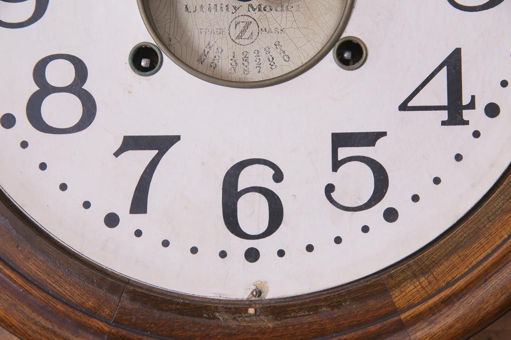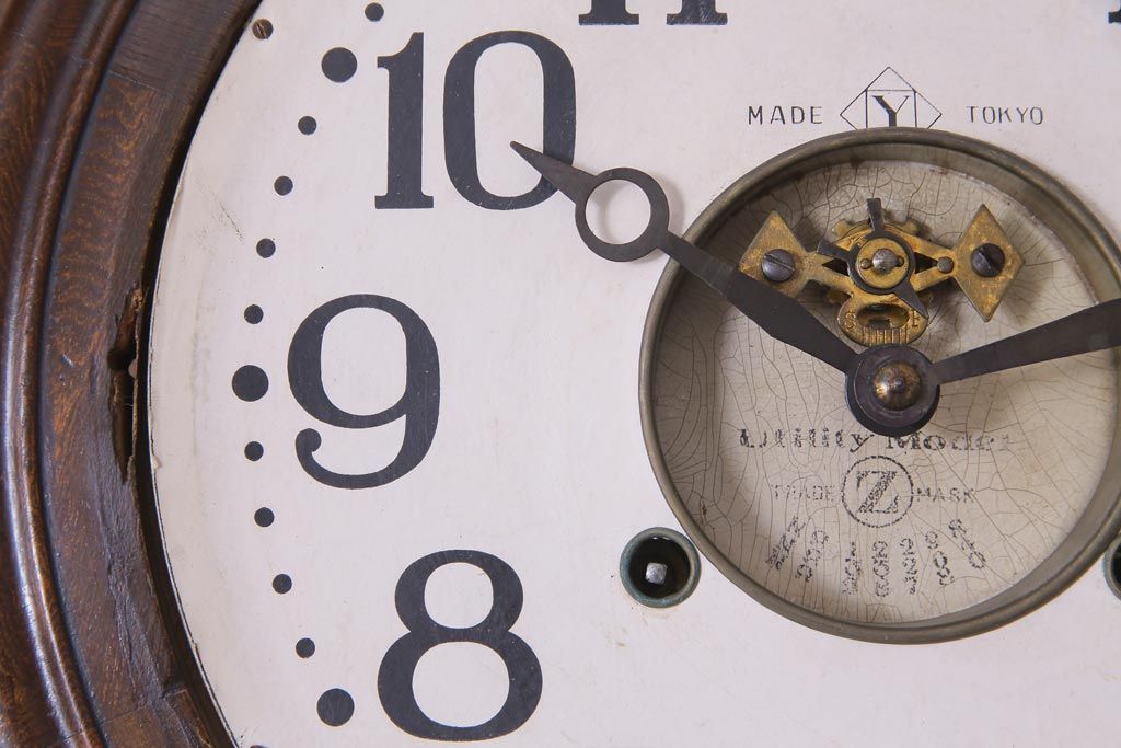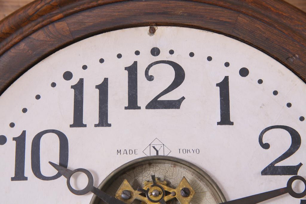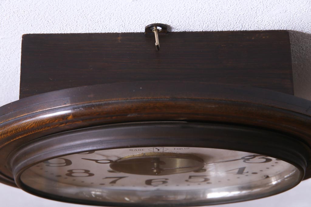 時計> 掛け時計 > アンティーク雑貨 和製アンティーク 戦前 Zマーク 手巻き式 テンプ式 丸い木製の柱時計(掛け時計)