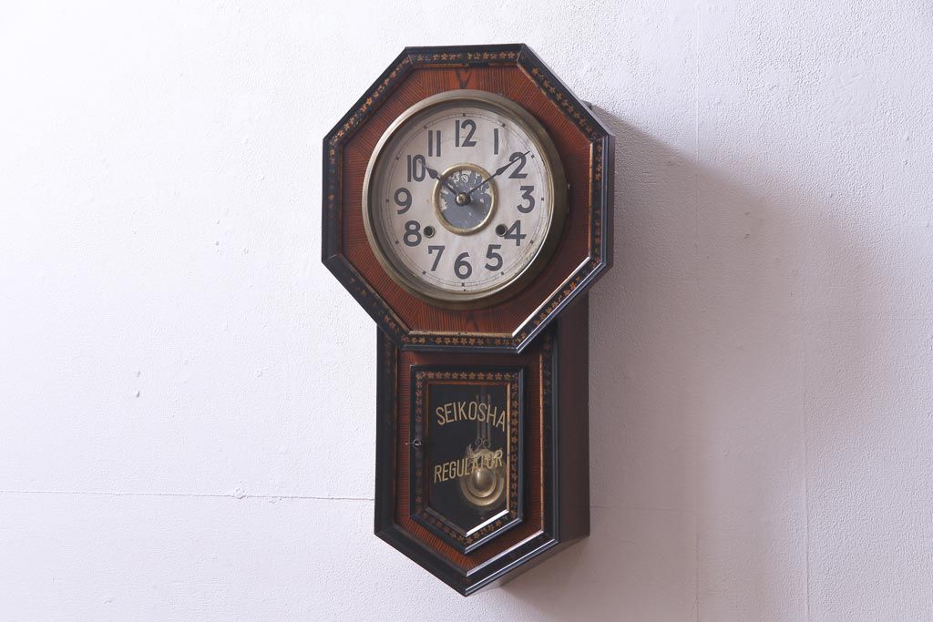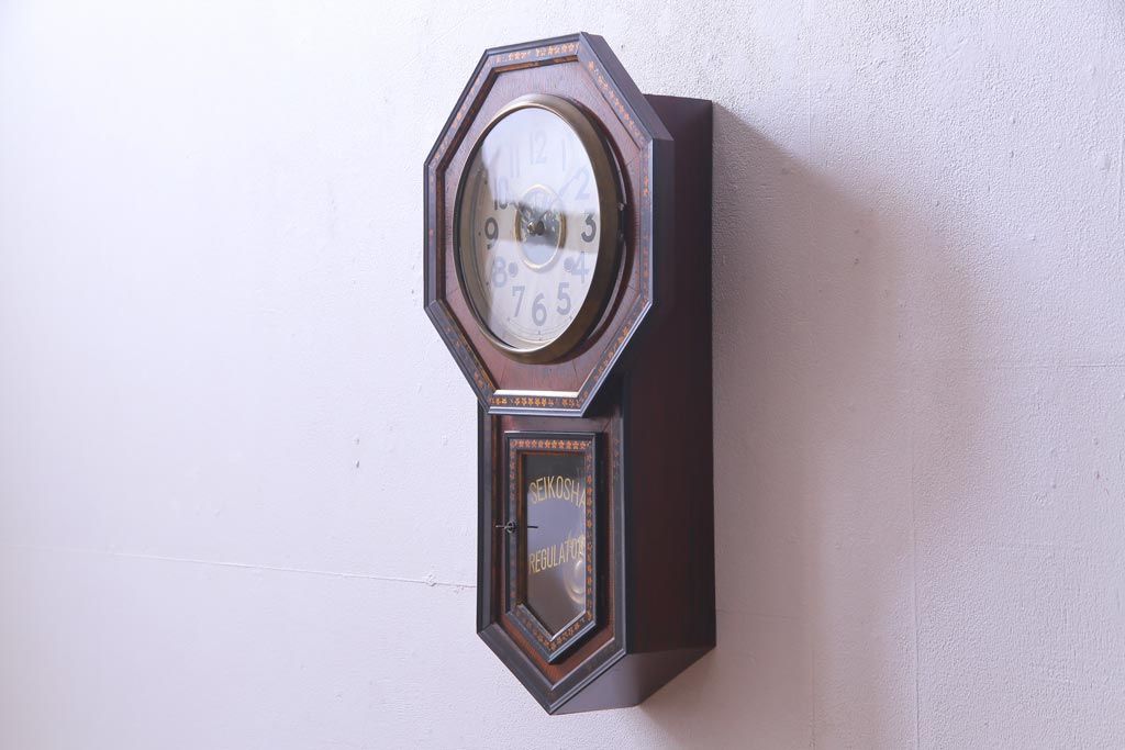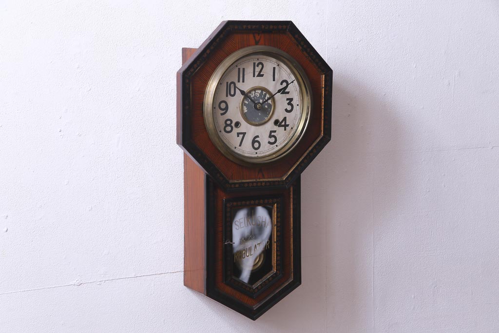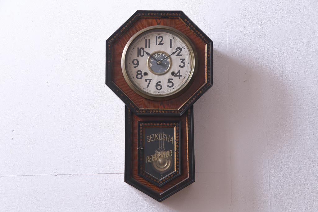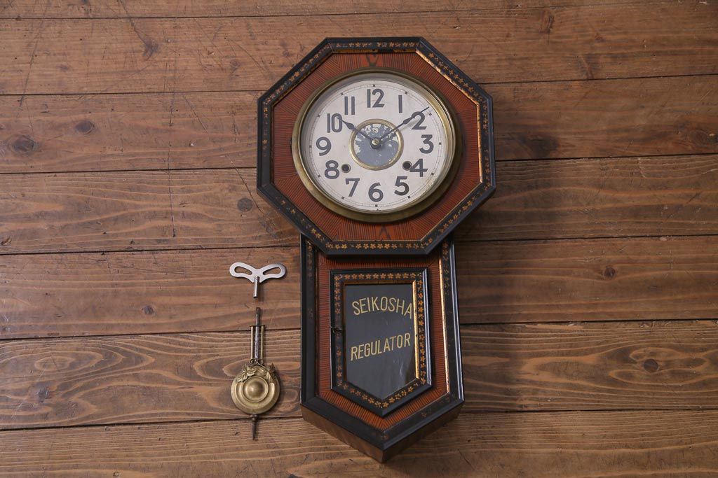 アンティーク雑貨 和製アンティーク SEIKOSHA(精工舎、セイコー) ゼンマイ式 八角柱時計(掛時計、振り子時計)