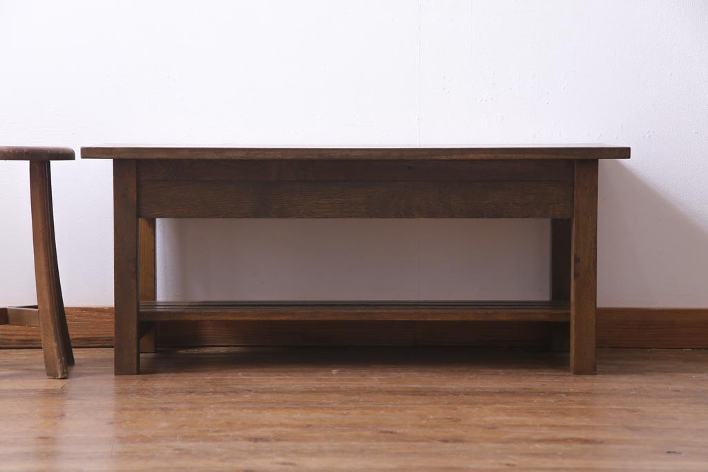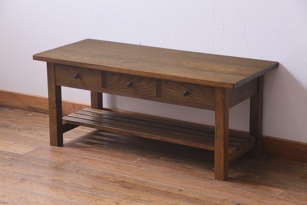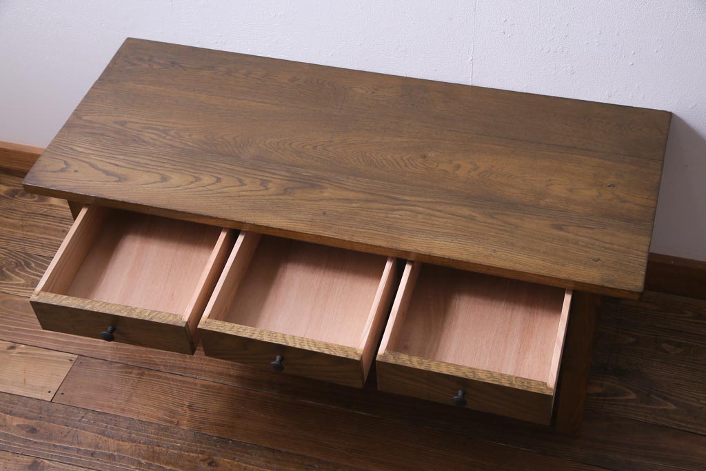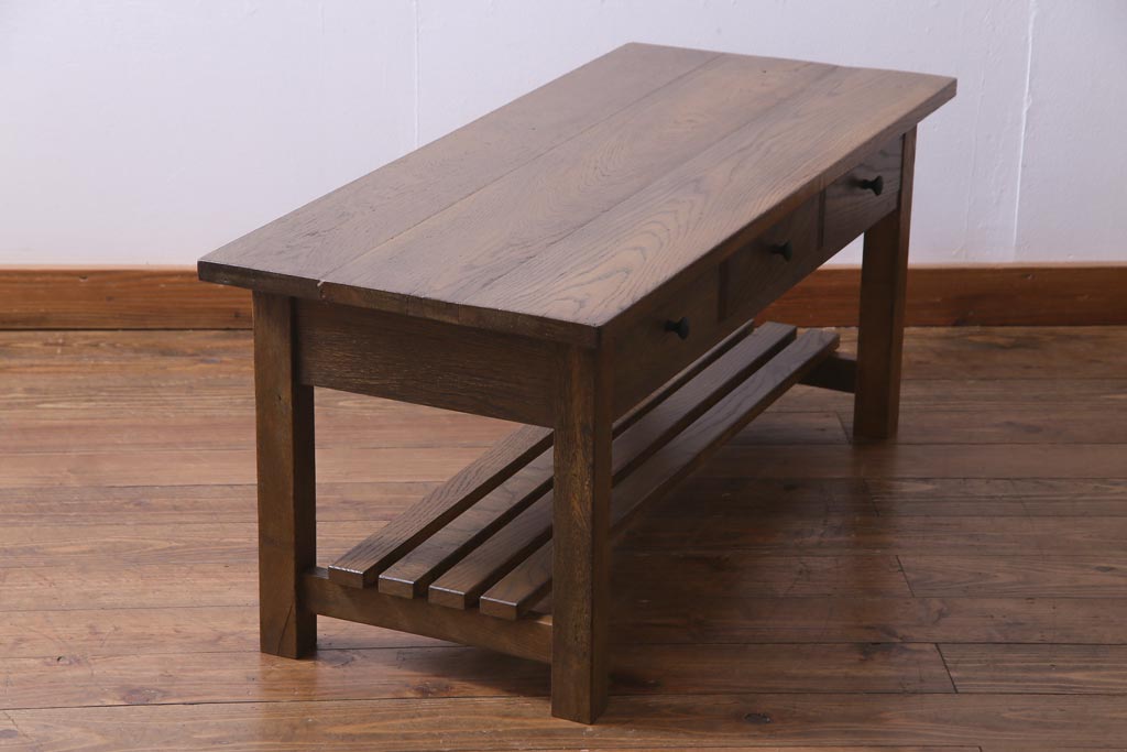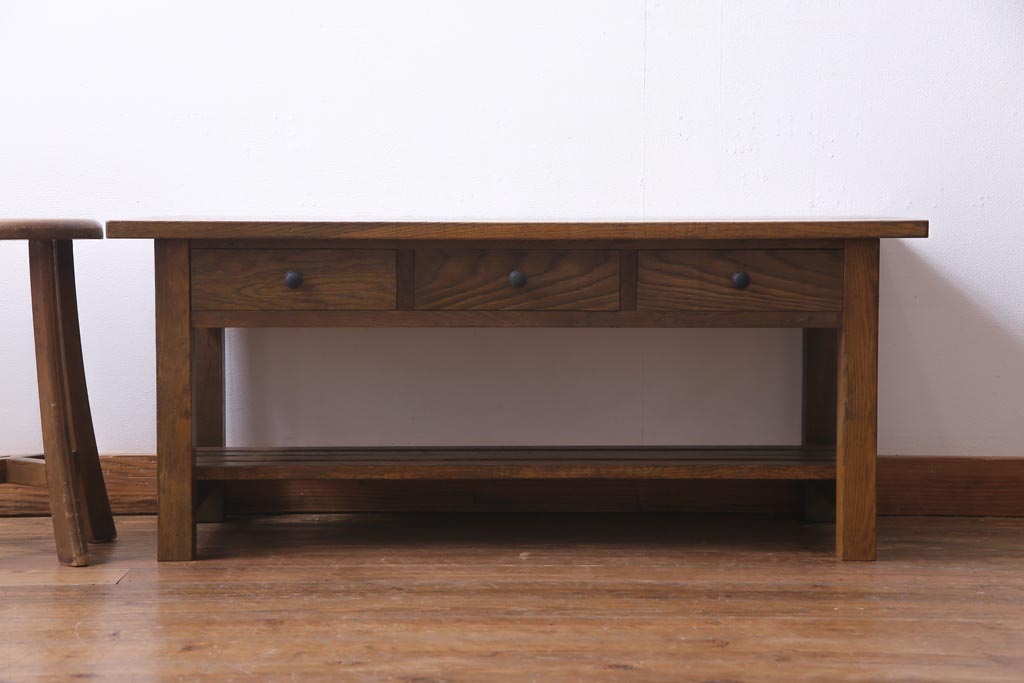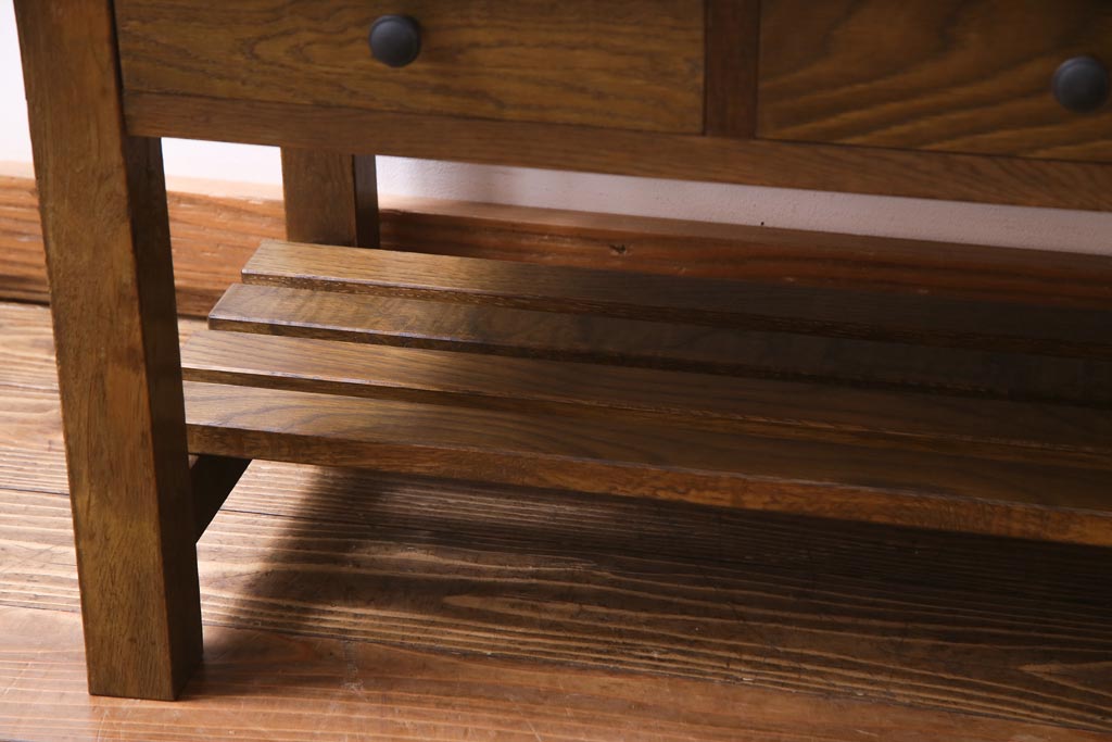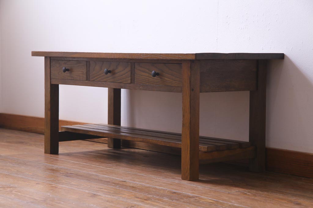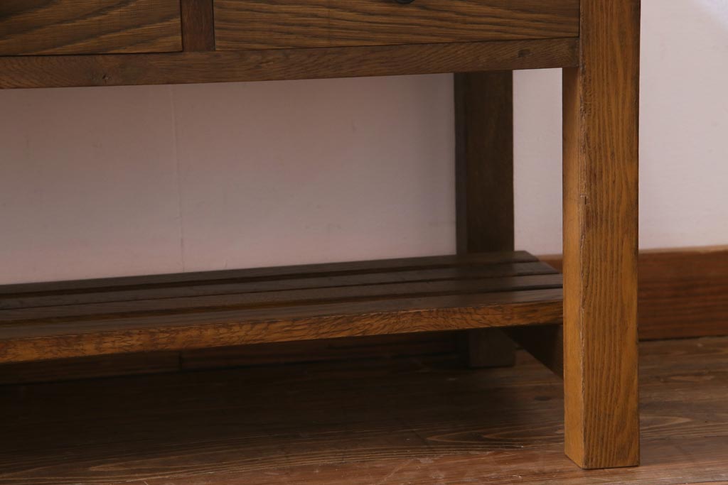 当店で引き出しと棚を取り付けたテーブルです。