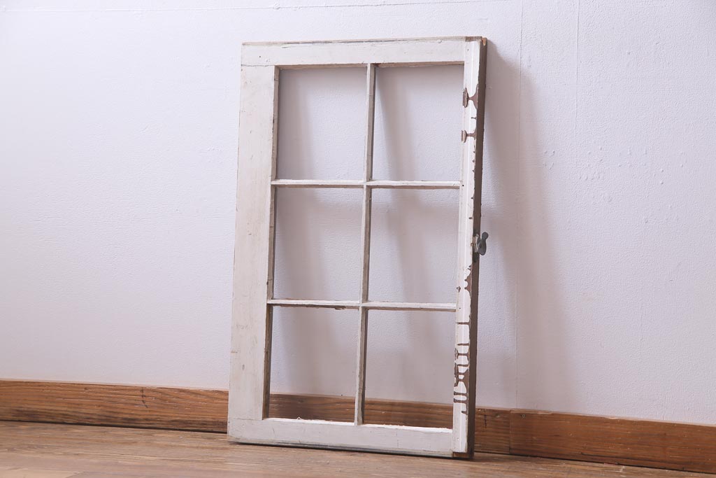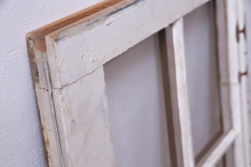 ジャンク品 フランスアンティーク 古いペイントの質感がシャビーなガラス窓