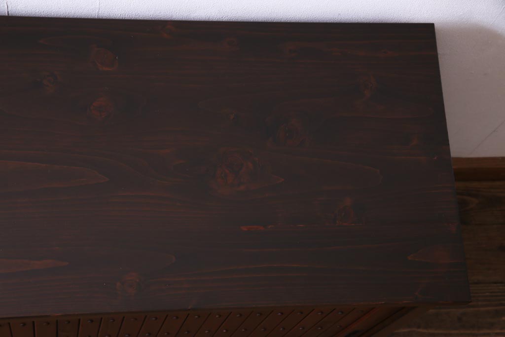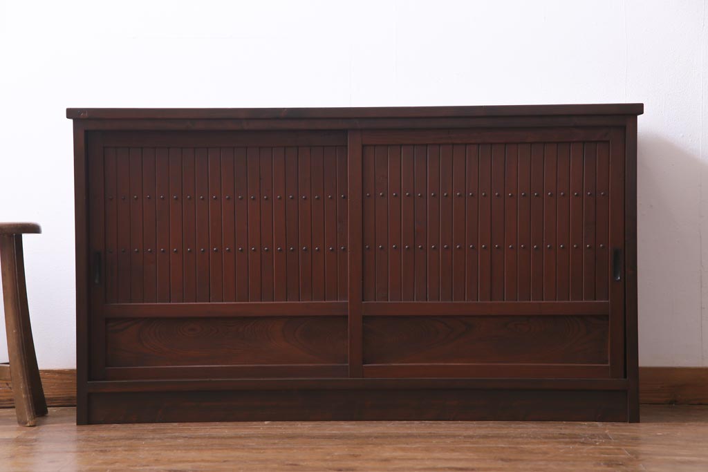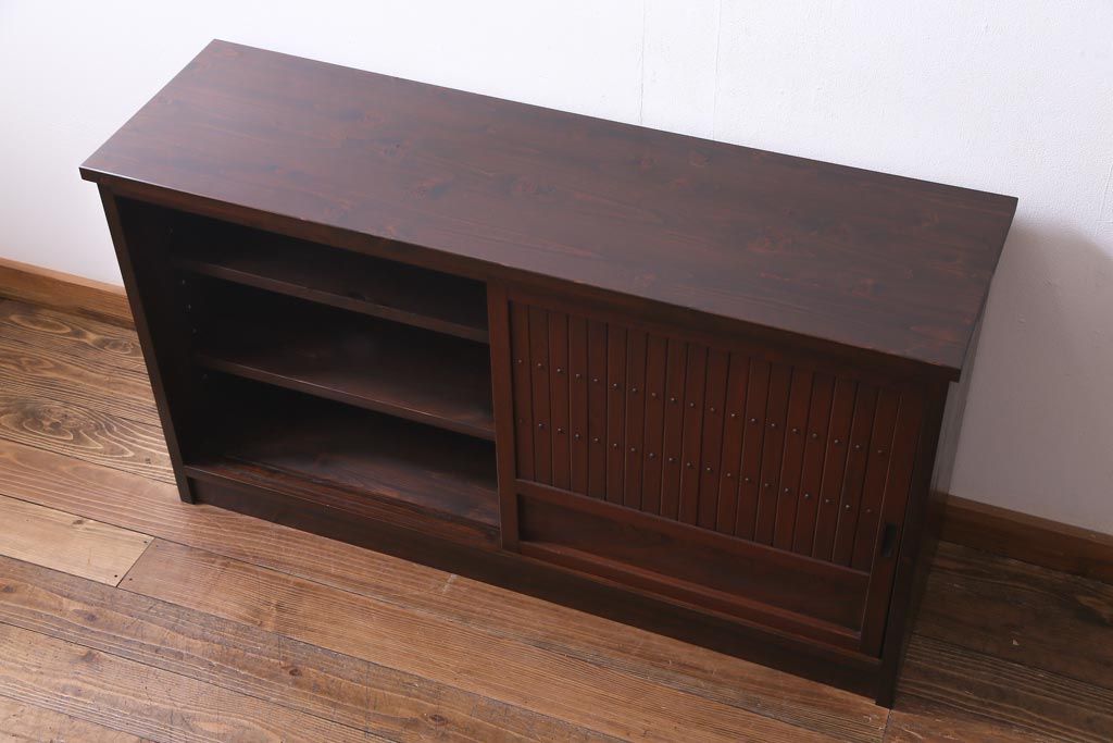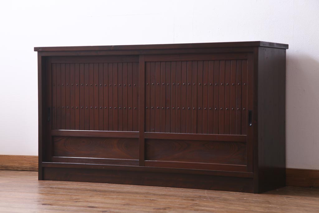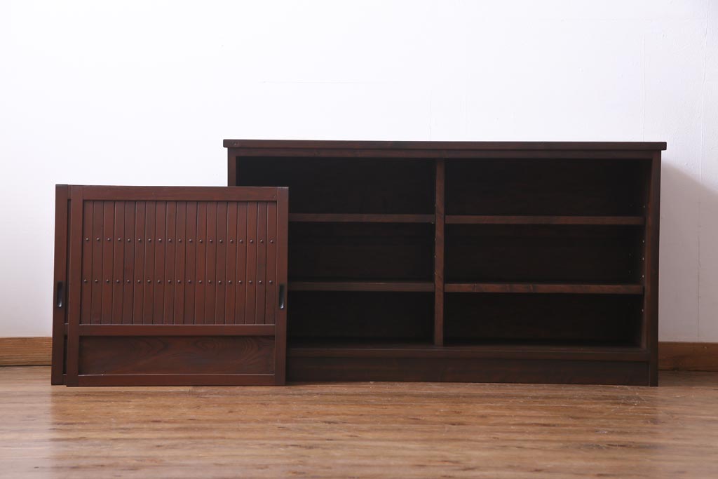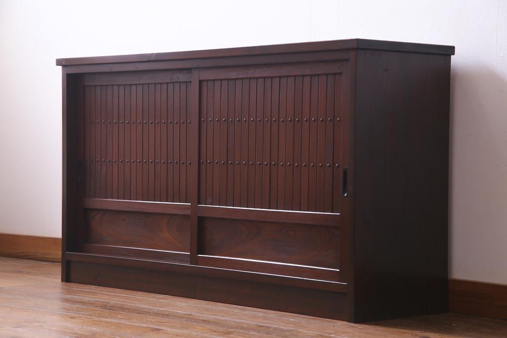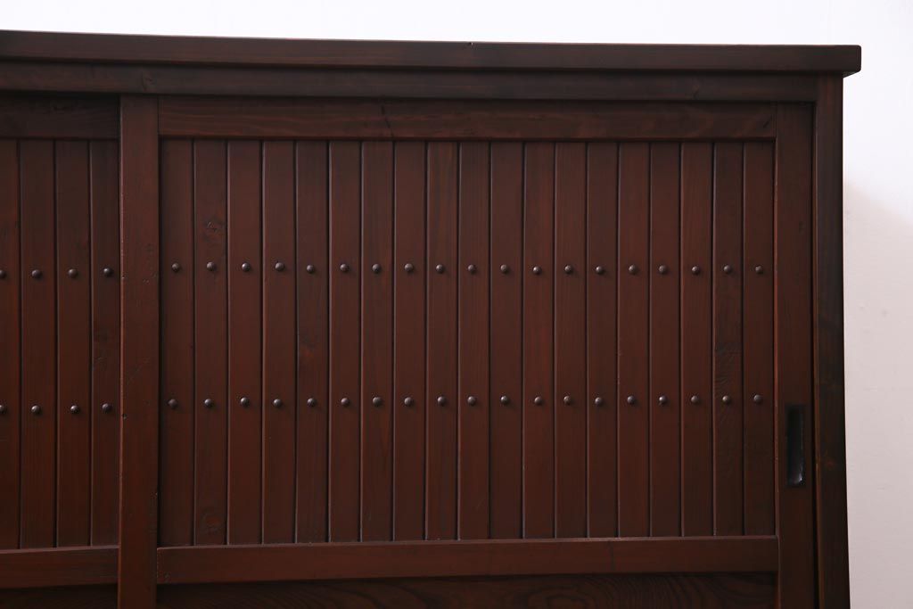 ラフジュ工房オリジナル リメイク家具 明治期 赤みを帯びた上品な建具を活用した収納棚(ローボード、戸棚)