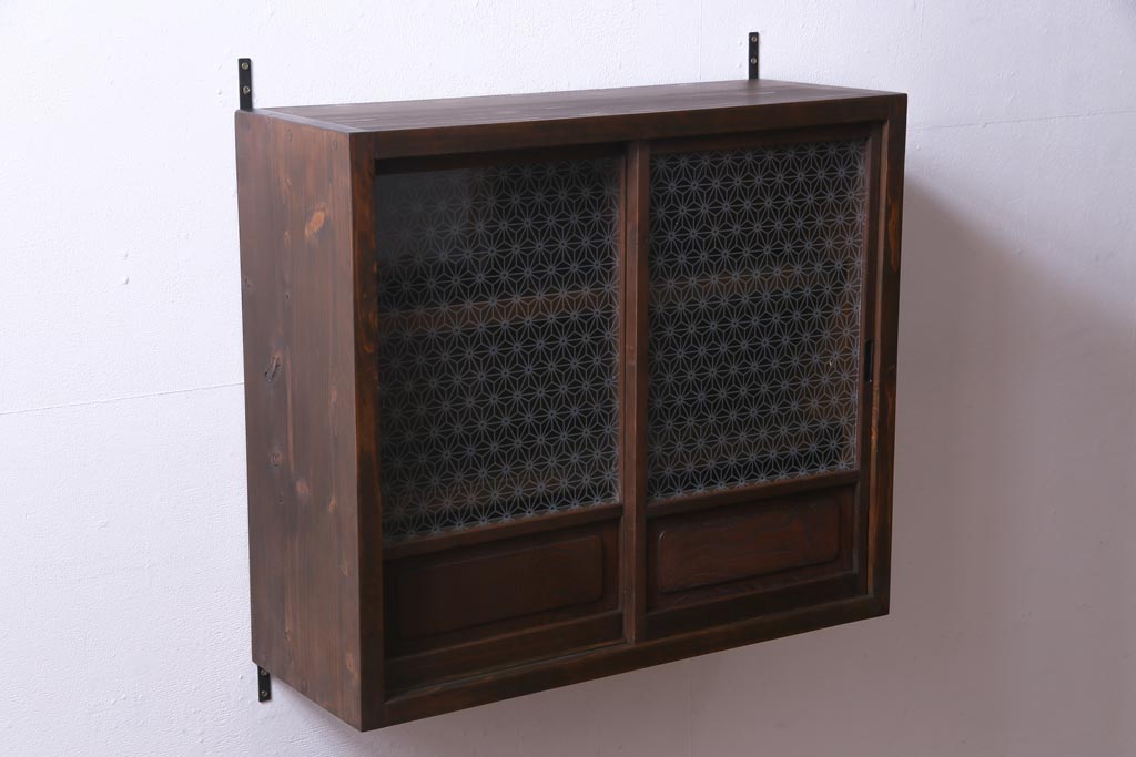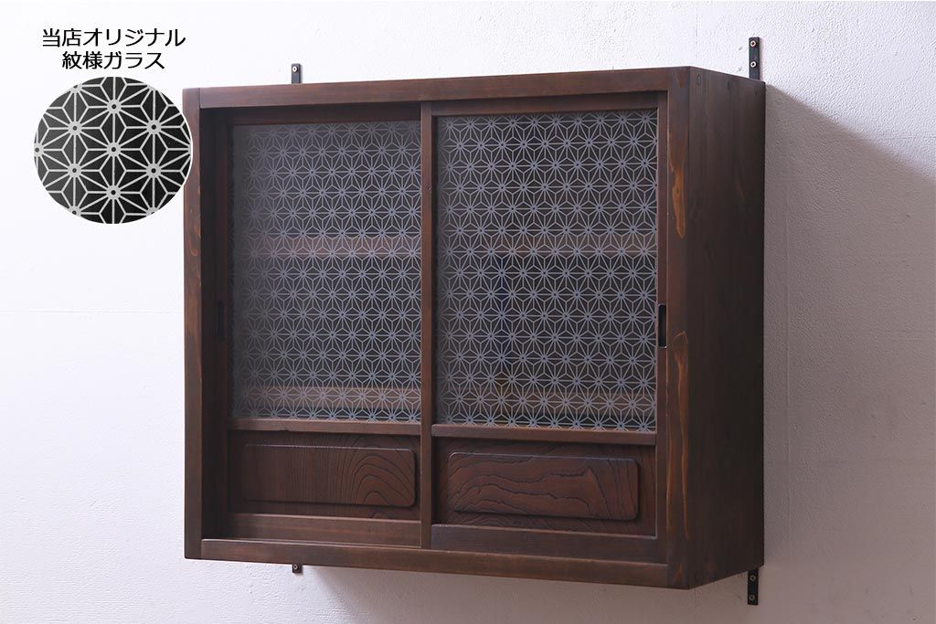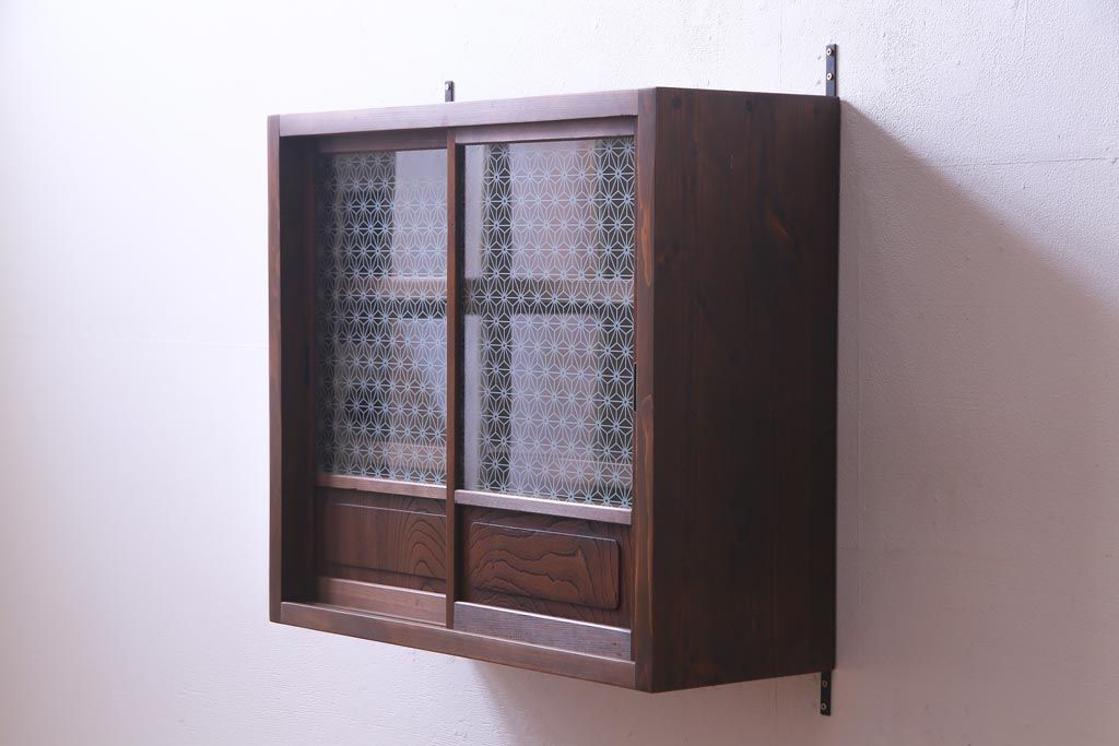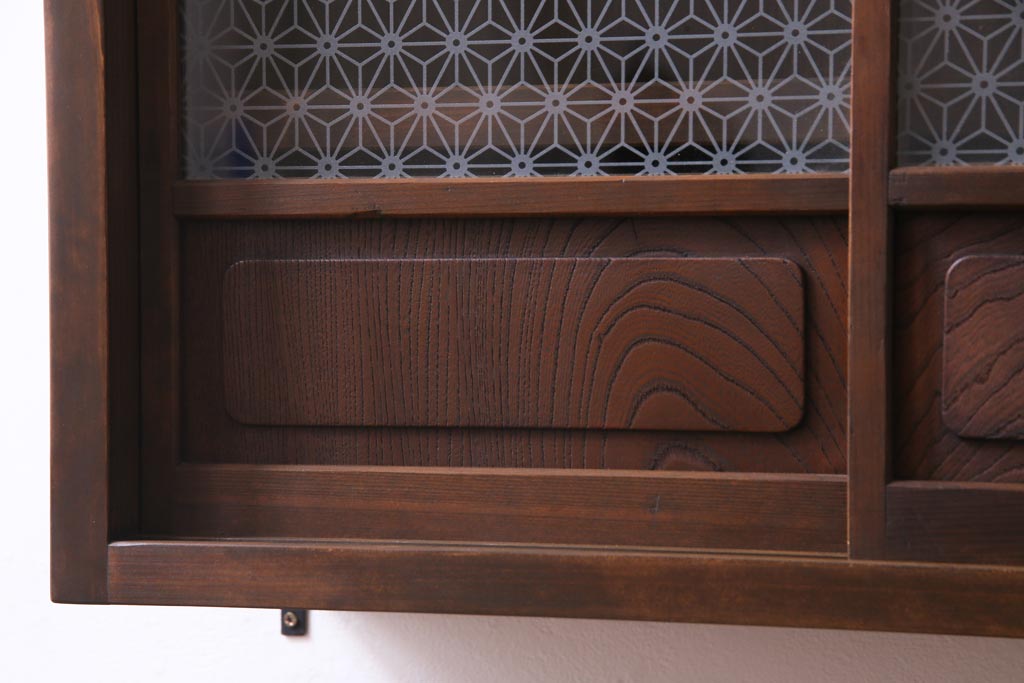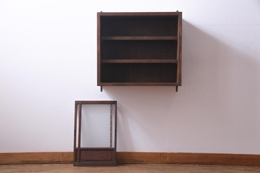 ラフジュ工房オリジナル 当店オリジナルガラスを組み入れた古建具リメイクの壁掛け戸棚(ウォールシェルフ、収納棚)