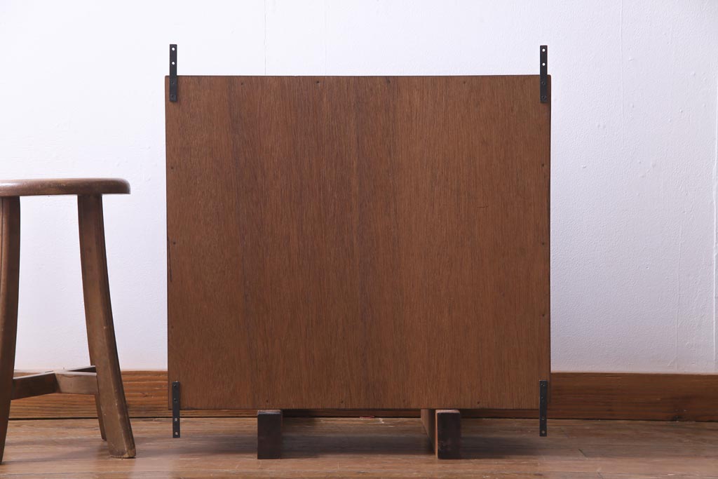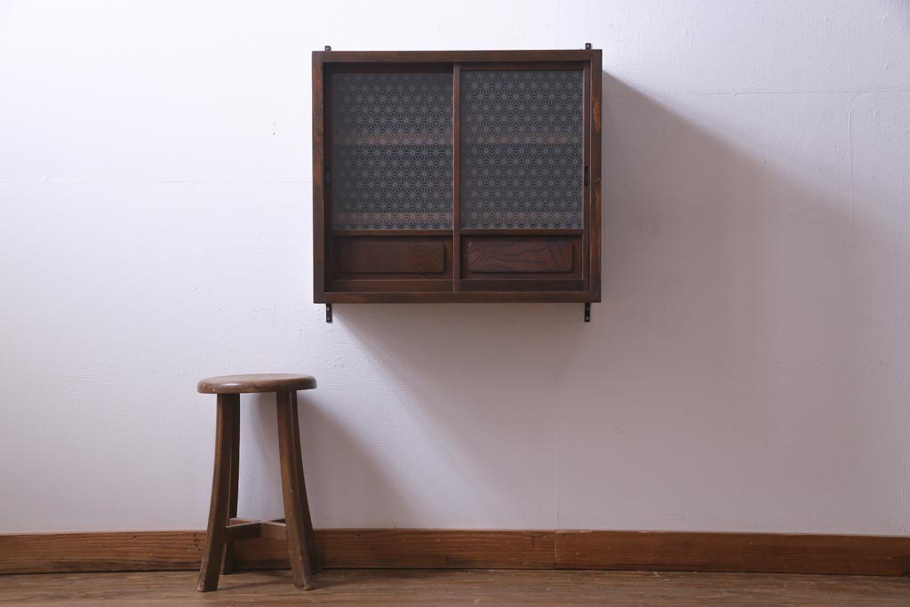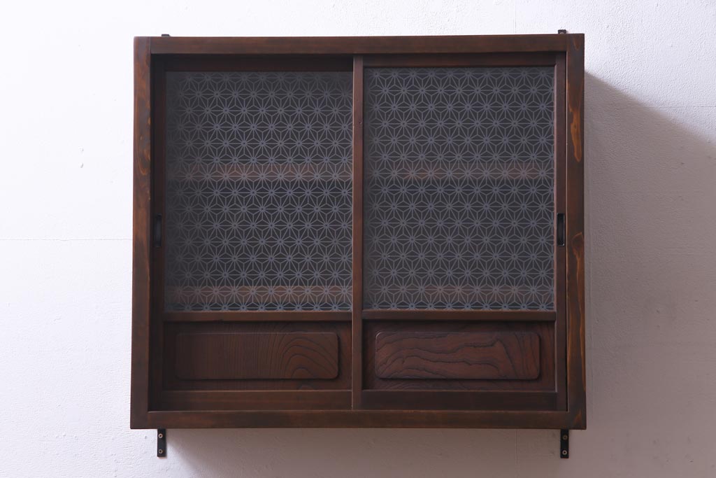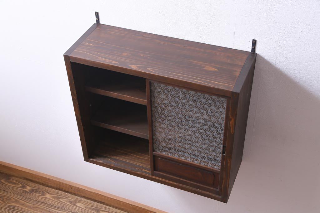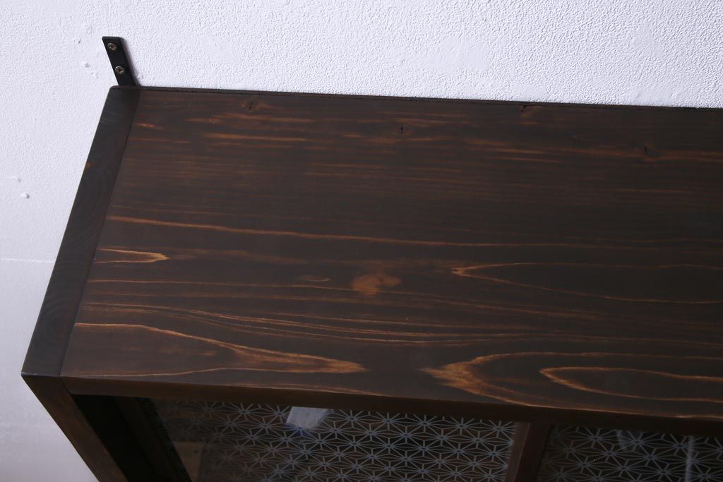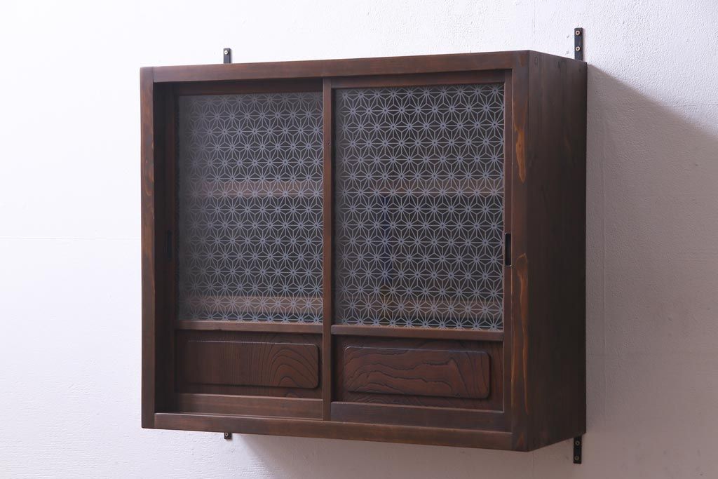 ラフジュ工房オリジナル 当店オリジナルガラスを組み入れた古建具リメイクの壁掛け戸棚(ウォールシェルフ、収納棚)