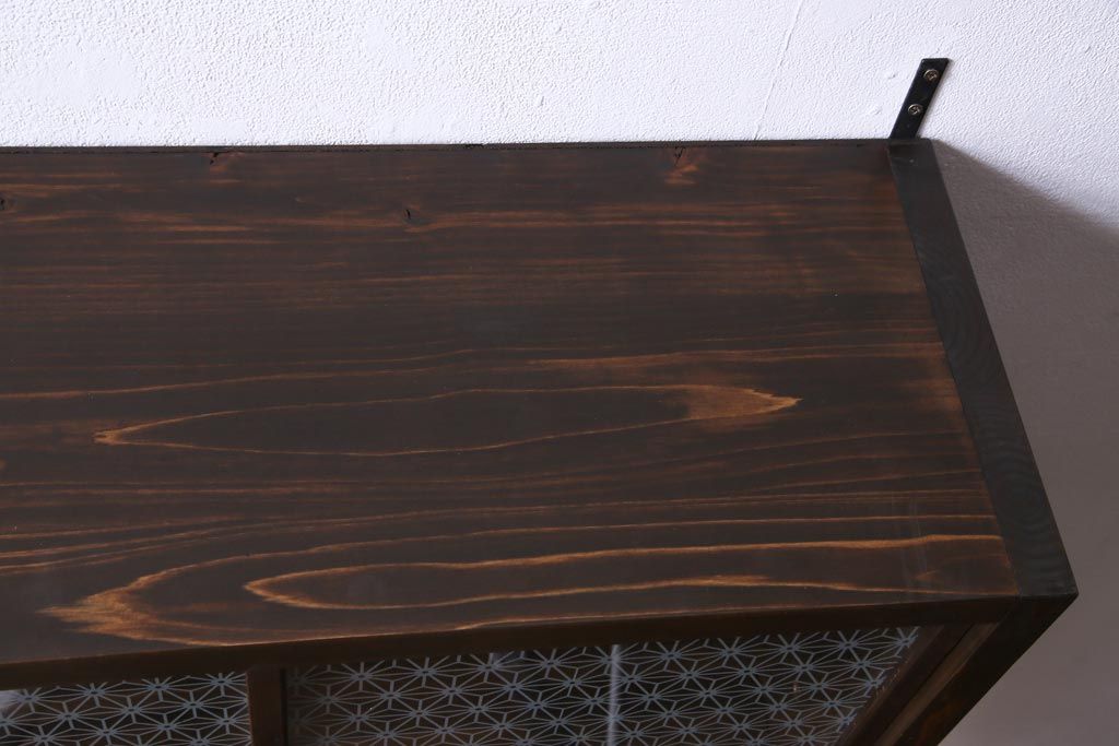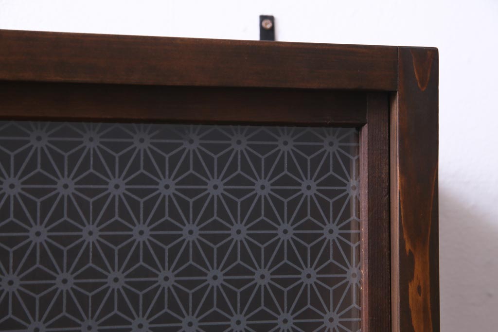 ラフジュ工房オリジナル 当店オリジナルガラスを組み入れた古建具リメイクの壁掛け戸棚(ウォールシェルフ、収納棚)です。