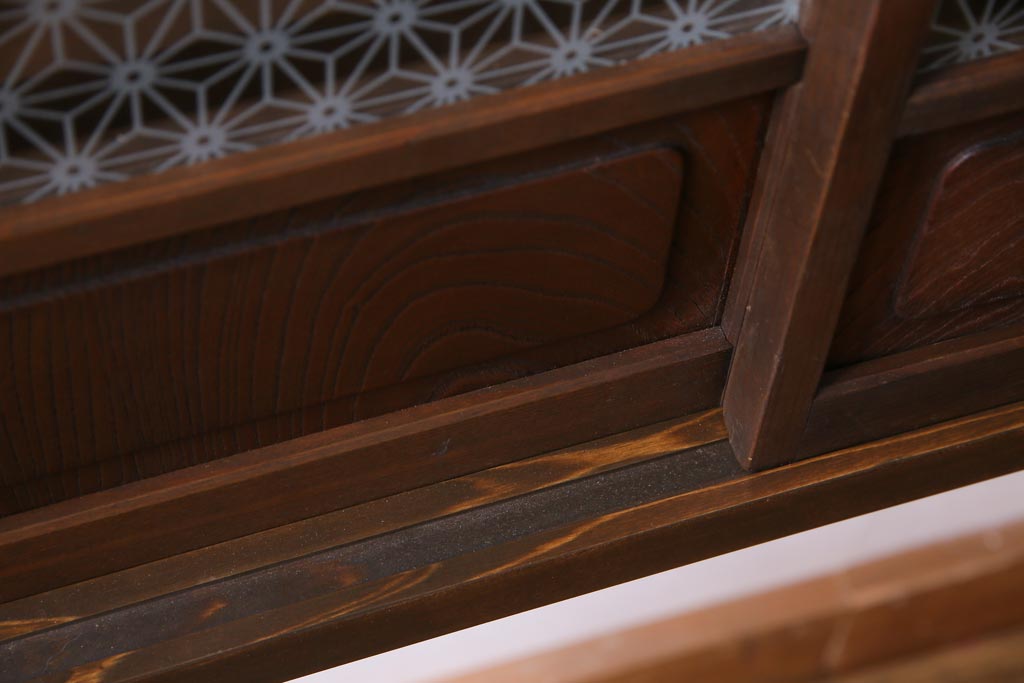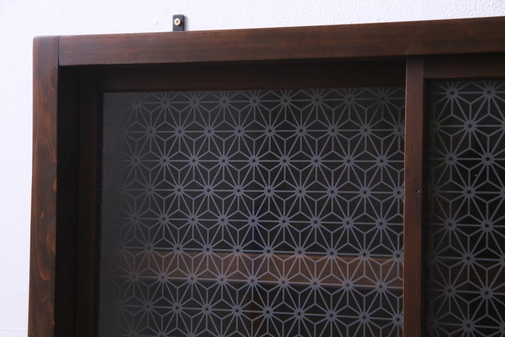 キャビネット・戸棚 > ラフジュ工房オリジナル 当店オリジナルガラスを組み入れた古建具リメイクの壁掛け戸棚(ウォールシェルフ、収納棚)