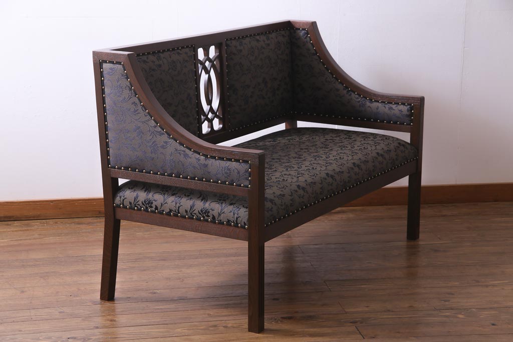 ラフジュ工房オリジナル ナラ材 アンティークソファを再現した大正ロマン香る2人掛けソファ(1)
