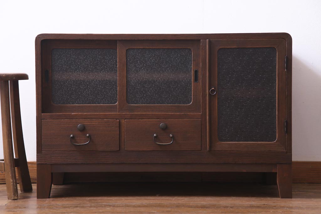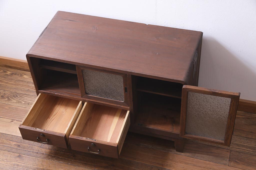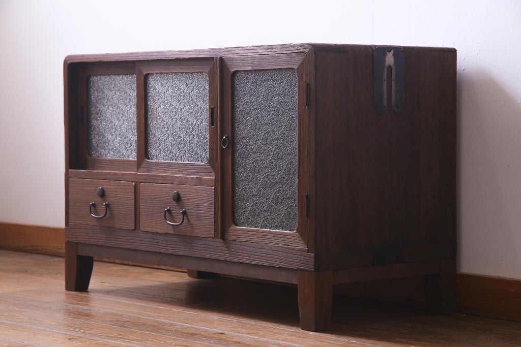 ラフジュ工房> キャビネット・戸棚> テレビ台・ローボード > レトロ家具 昭和レトロ 桐材 丸みを帯びたフォルムのリメイクローボード(戸棚、テレビボード)