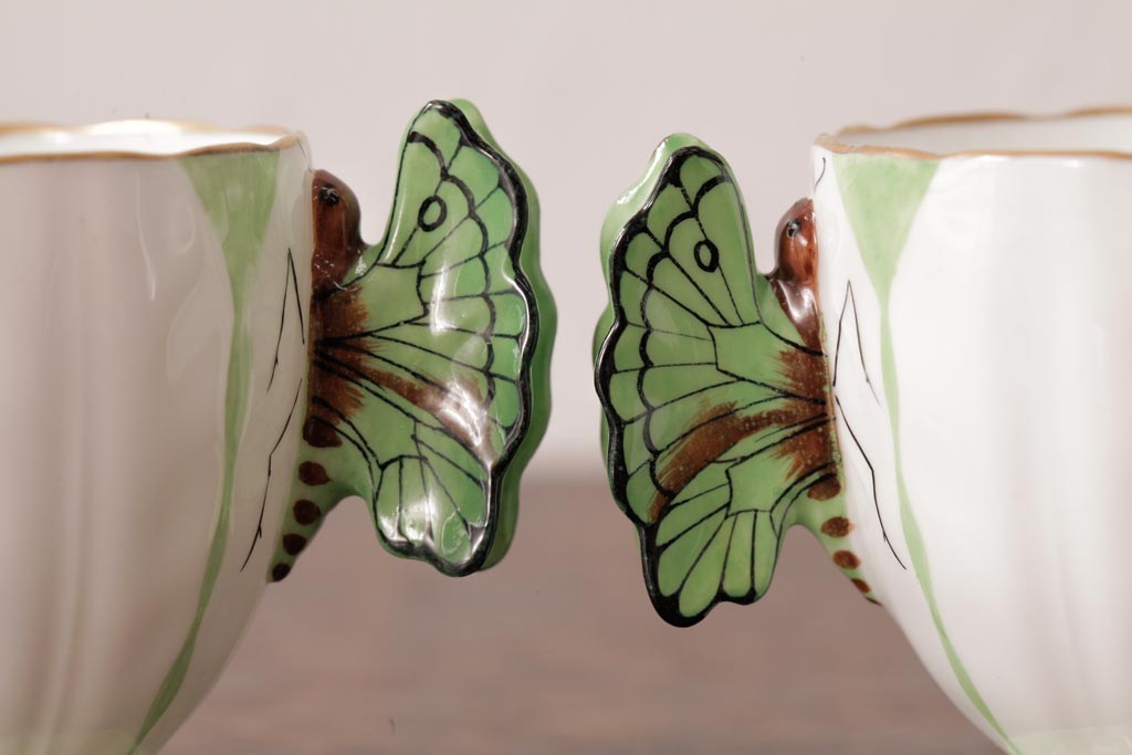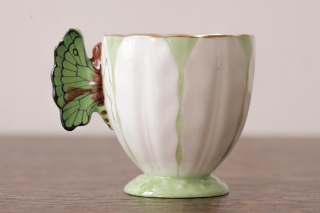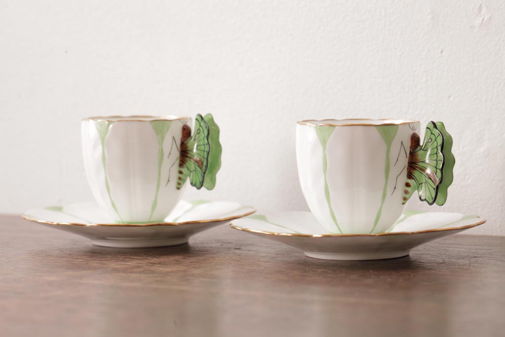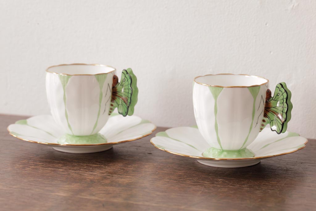 イギリスアンティーク AYNSLEY(エインズレイ) バタフライ(蝶々) デミタスカップ&ソーサー2客セット(洋食器)(1)