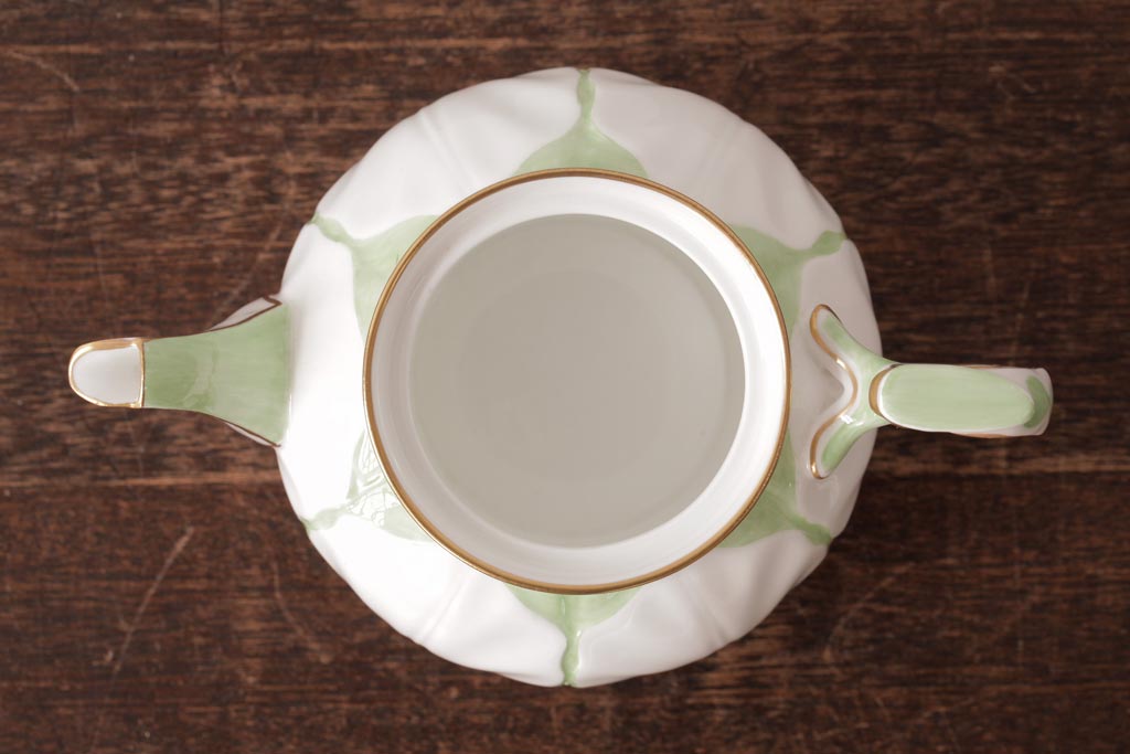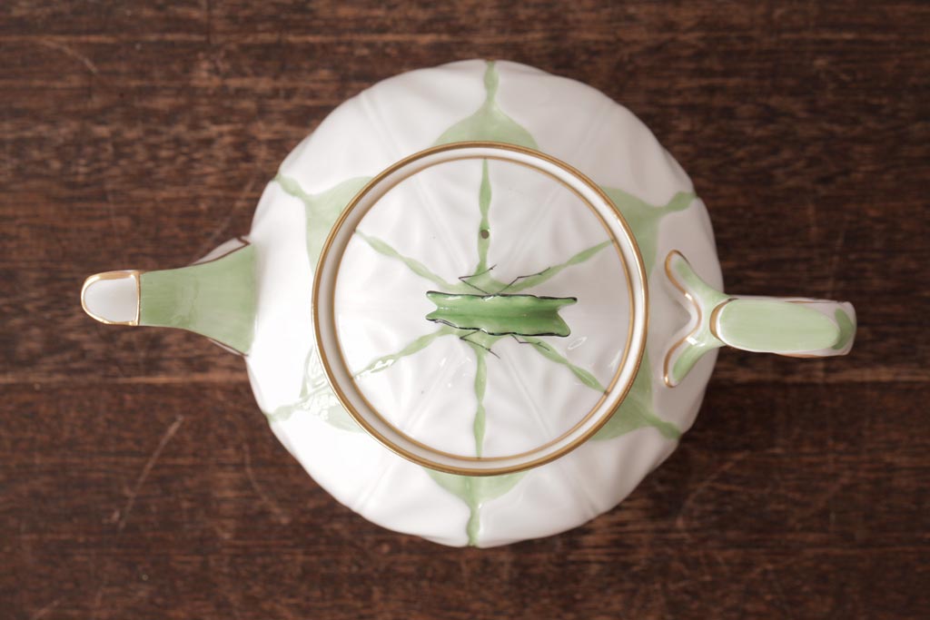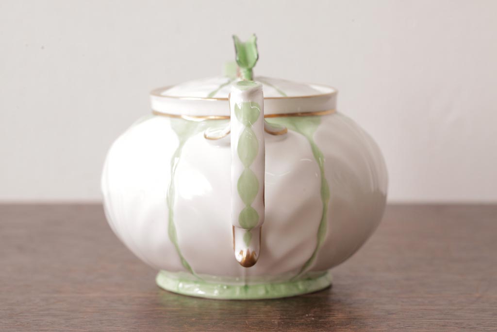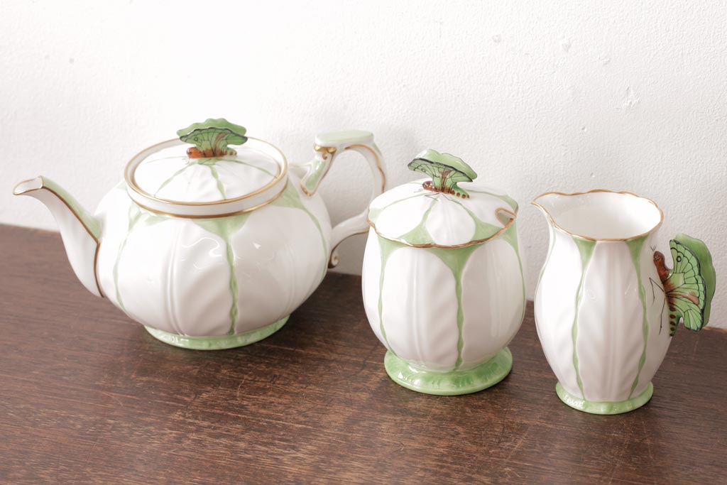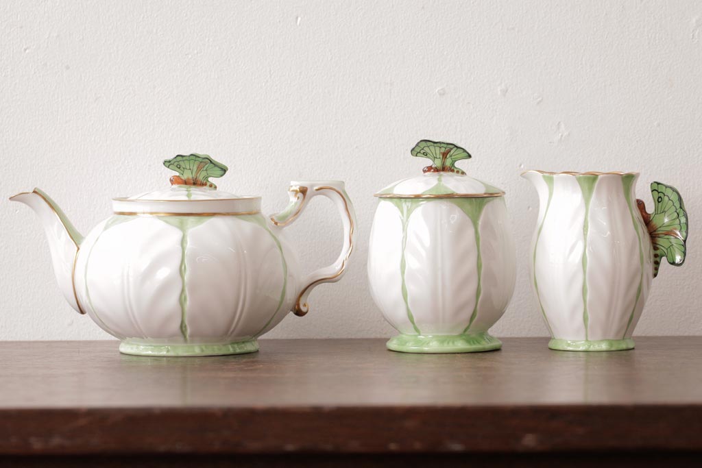 ラフジュ工房> 洋食器・キッチン用品> ティーセット > イギリスアンティーク AYNSLEY(エインズレイ) バタフライ(蝶々) グリーン ティーセット(ティーポット、シュガーポット、クリーマー)