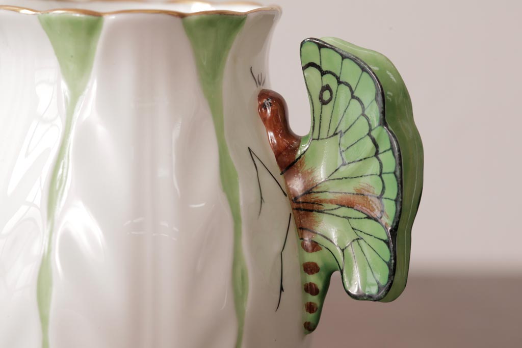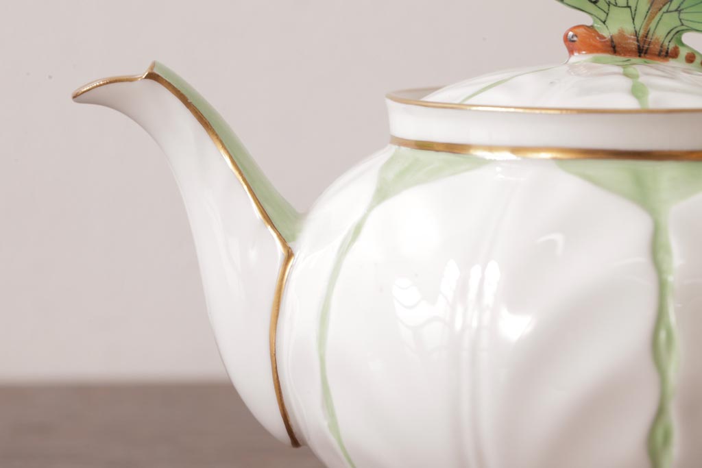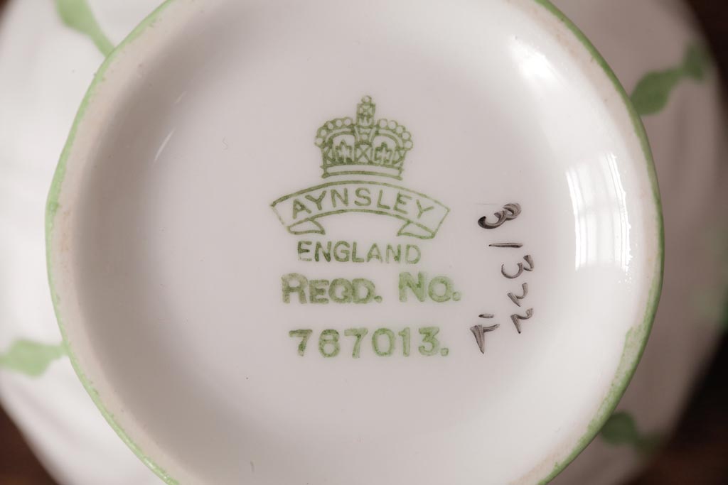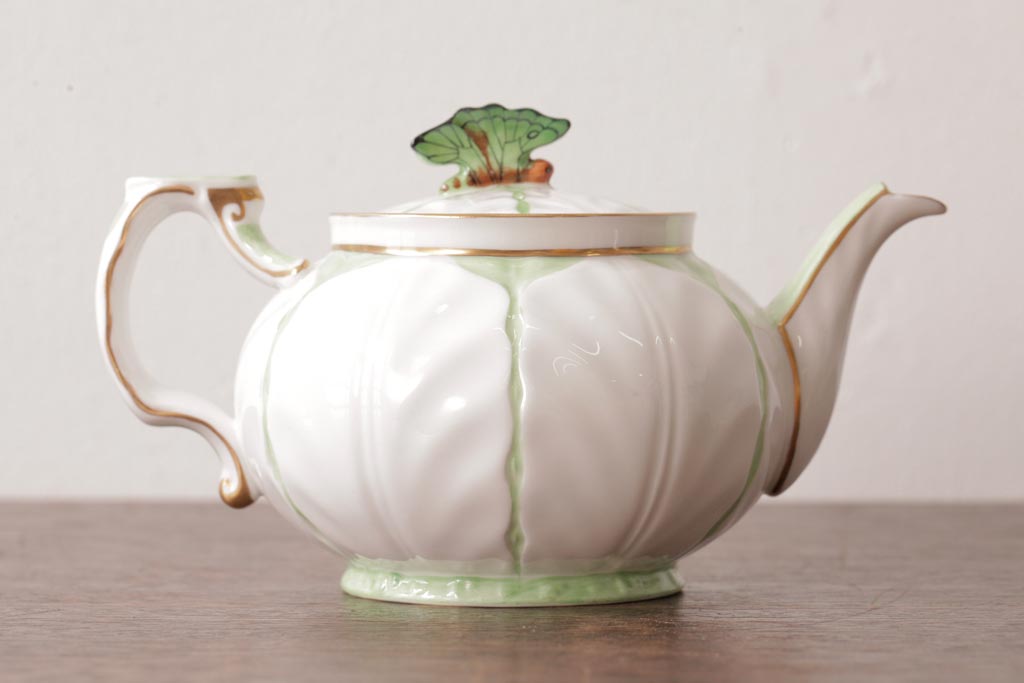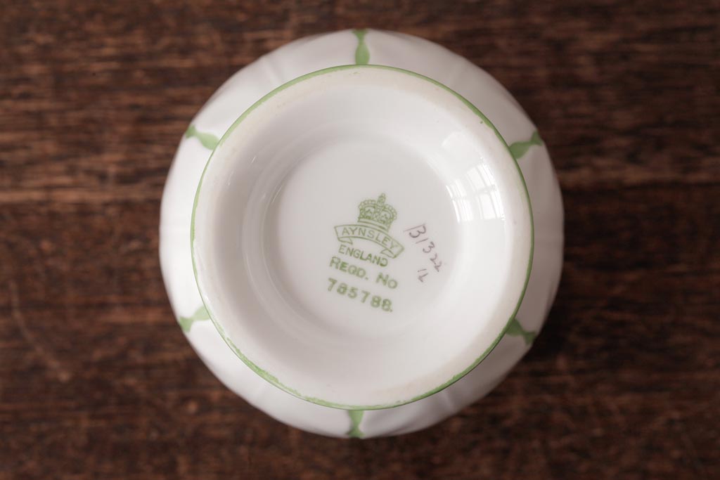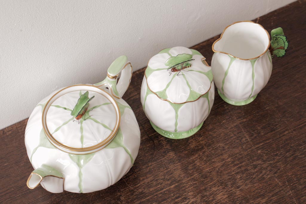 ラフジュ工房> 洋食器・キッチン用品> ティーセット > イギリスアンティーク AYNSLEY(エインズレイ) バタフライ(蝶々) グリーン ティーセット(ティーポット、シュガーポット、クリーマー)