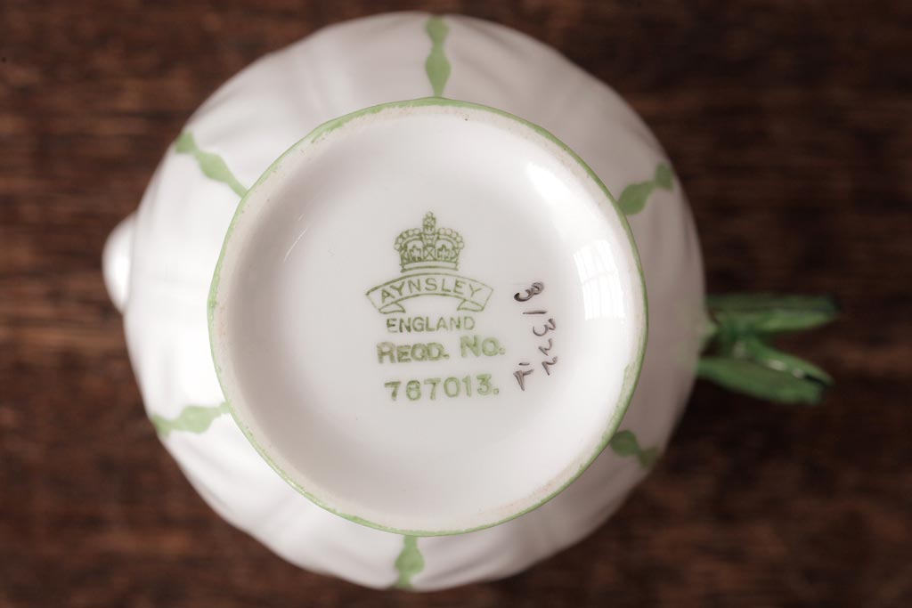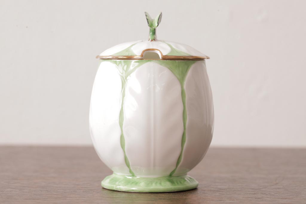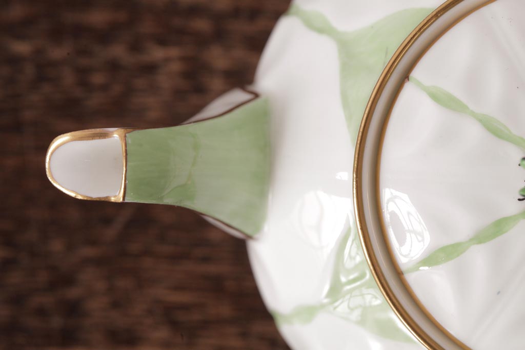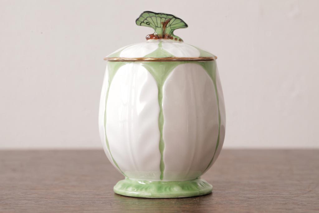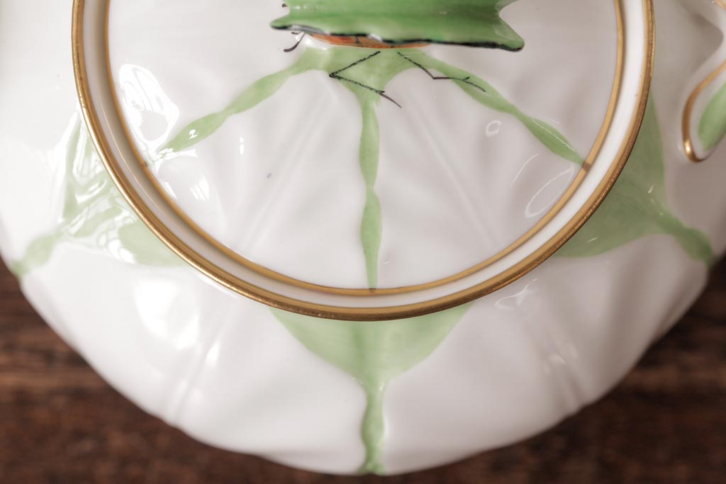 ラフジュ工房> 洋食器・キッチン用品> ポット・シュガーポット・クリーマー > イギリスアンティーク AYNSLEY(エインズレイ) バタフライ(蝶々) グリーン ティーセット(ティーポット、シュガーポット、クリーマー)