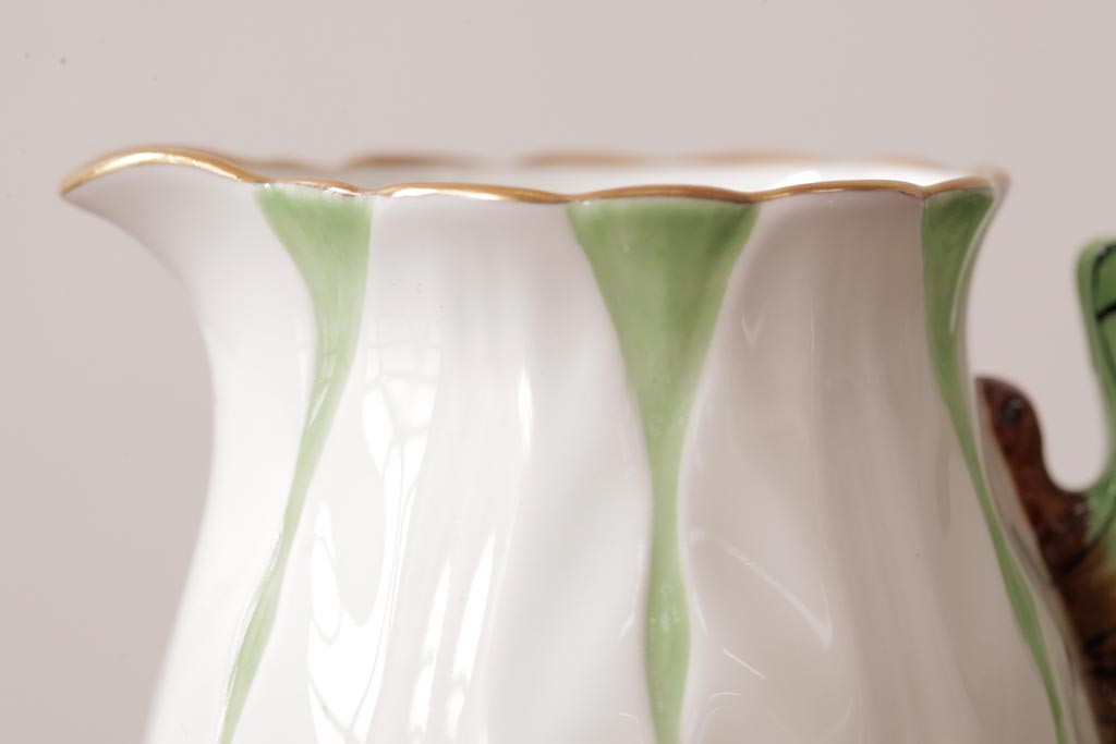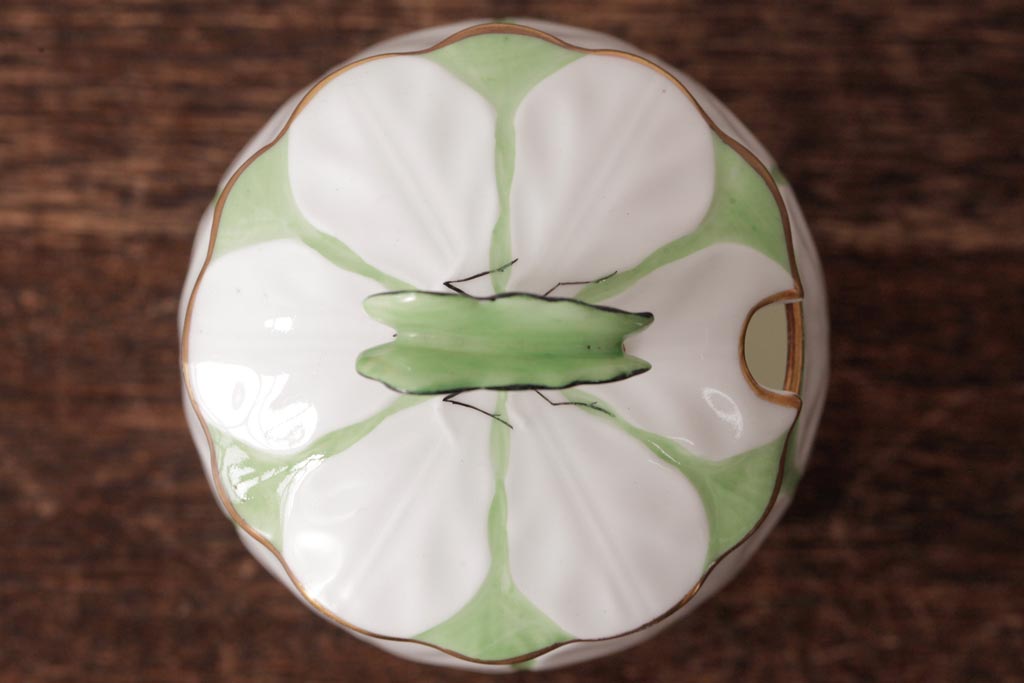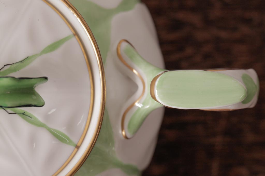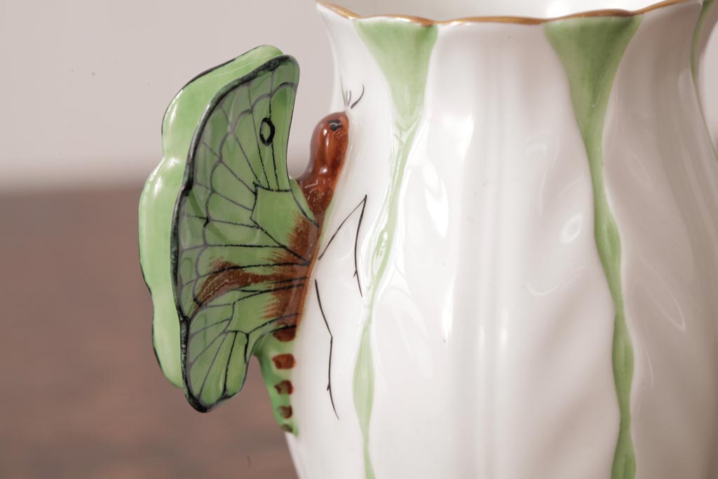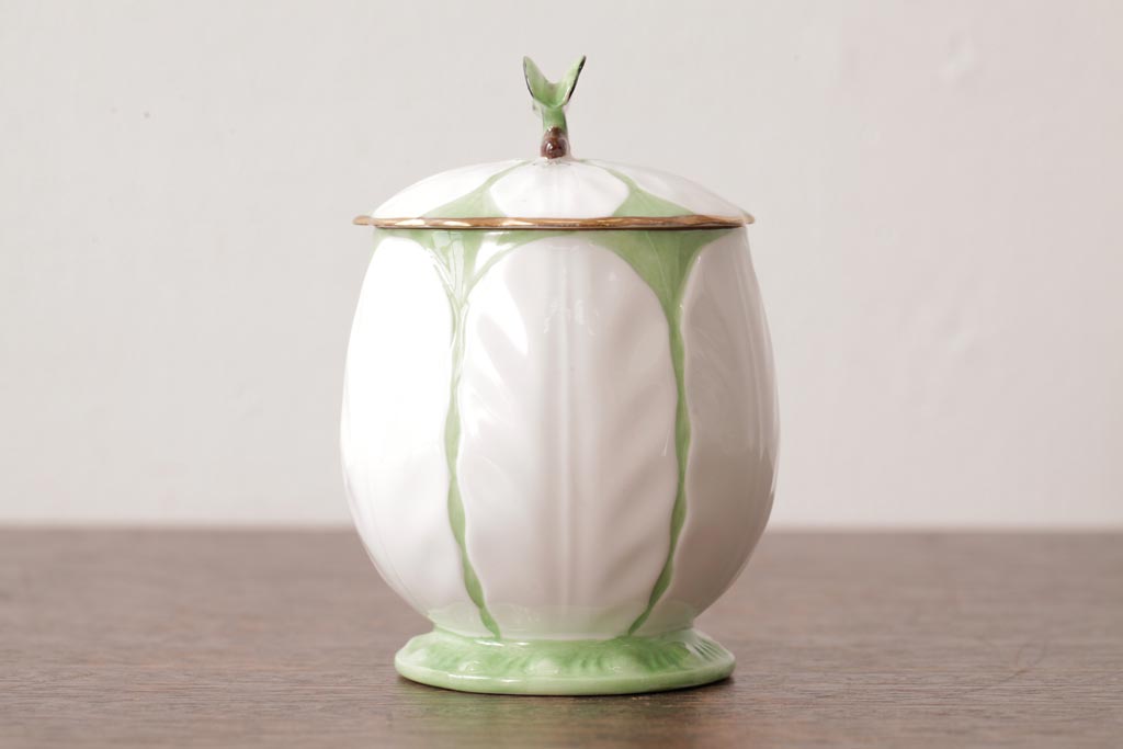 ラフジュ工房> 洋食器・キッチン用品> ポット・シュガーポット・クリーマー > イギリスアンティーク AYNSLEY(エインズレイ) バタフライ(蝶々) グリーン ティーセット(ティーポット、シュガーポット、クリーマー)
