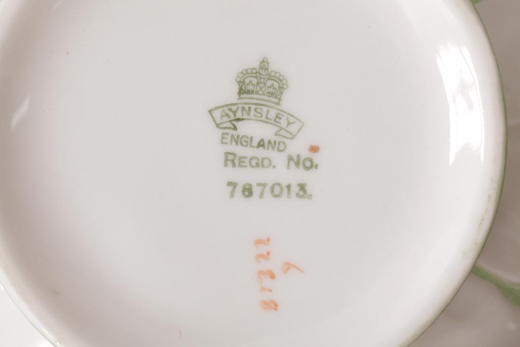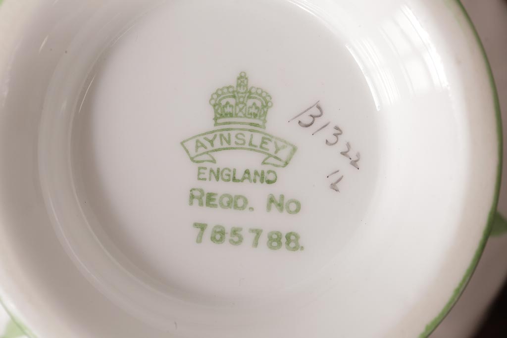 イギリスアンティーク AYNSLEY(エインズレイ) バタフライ(蝶々) グリーン ティーセット(ティーポット、シュガーポット、クリーマー)
