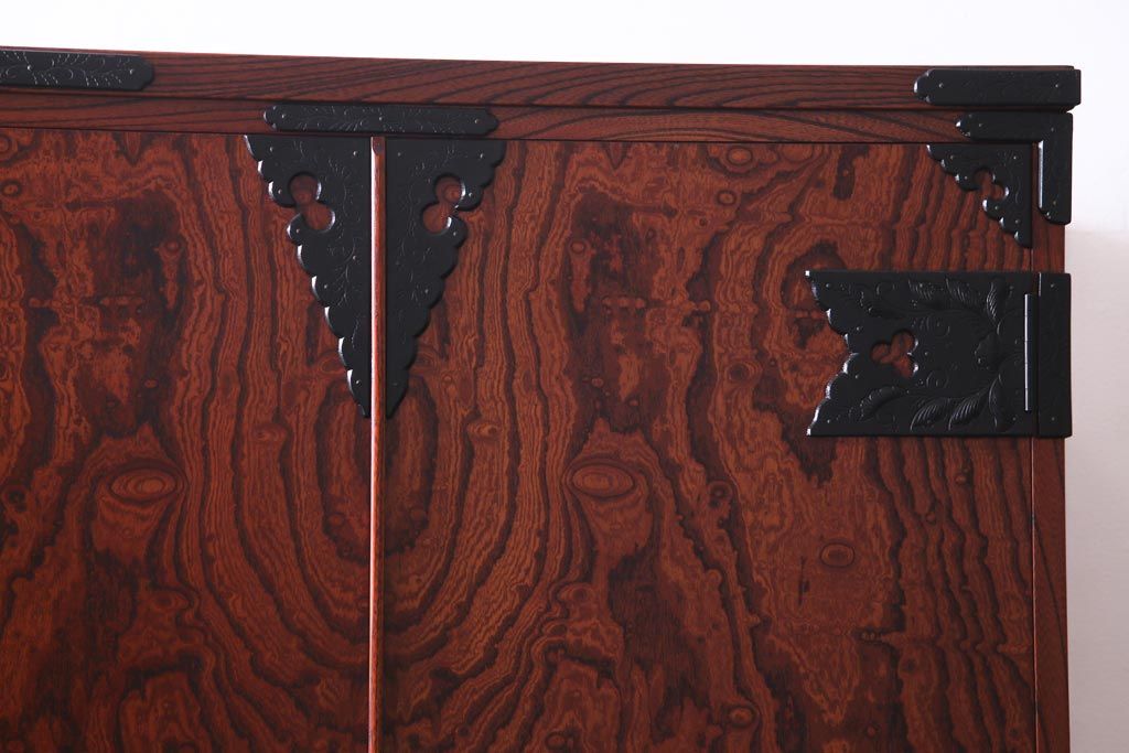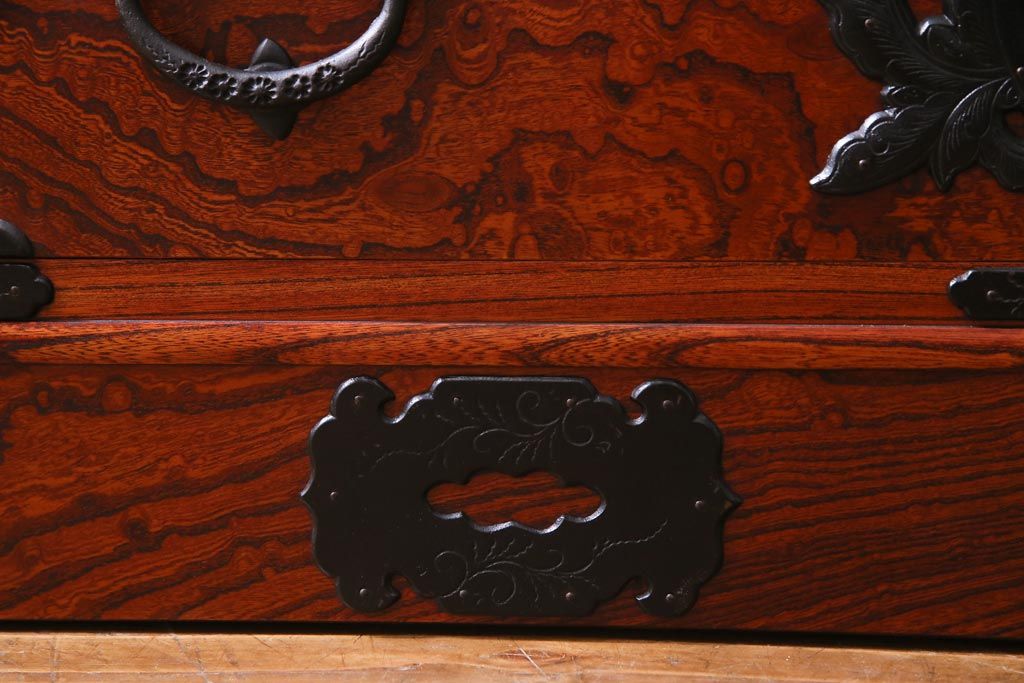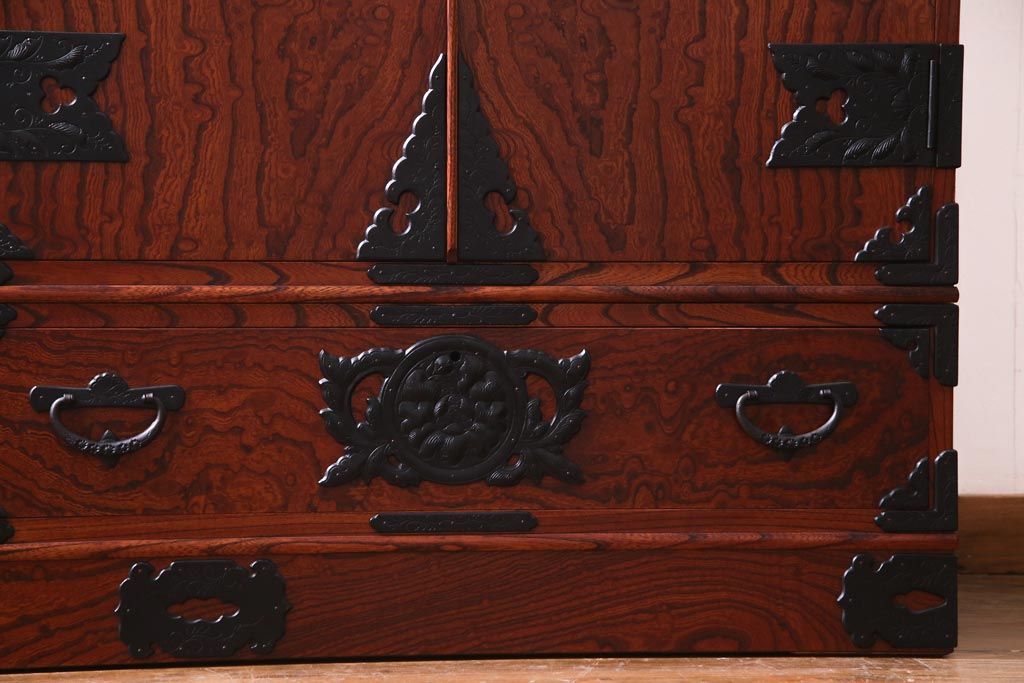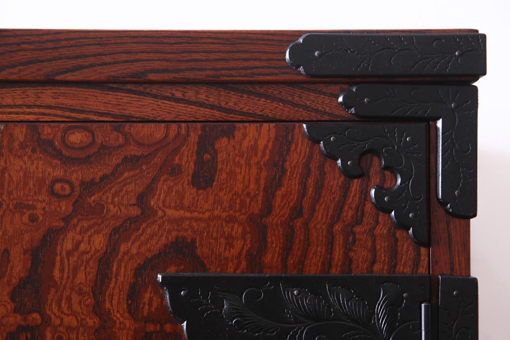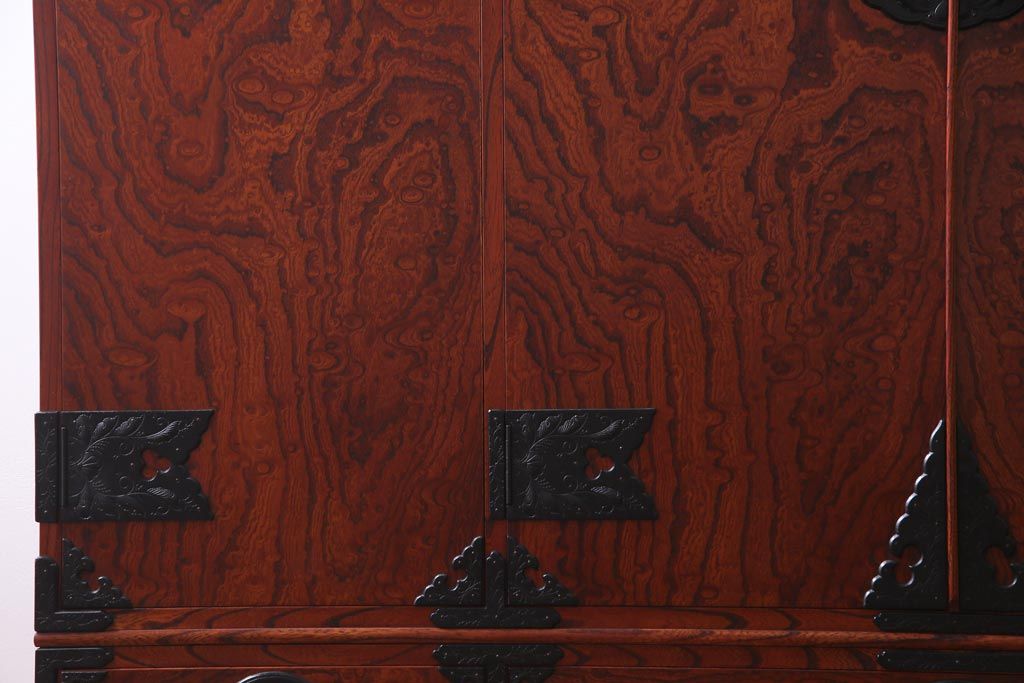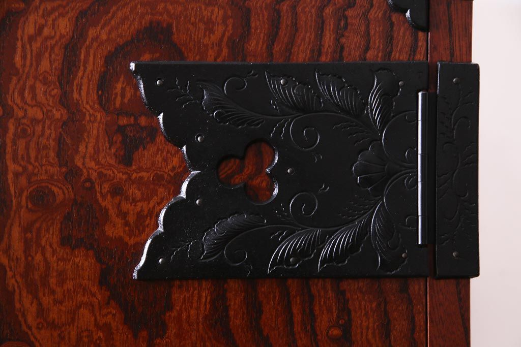 大胆な木目が現れる美しい木肌や、華やかな意匠の金具など、