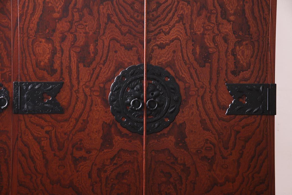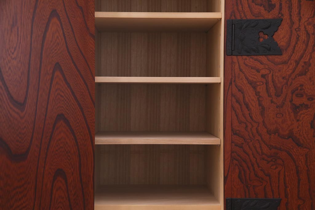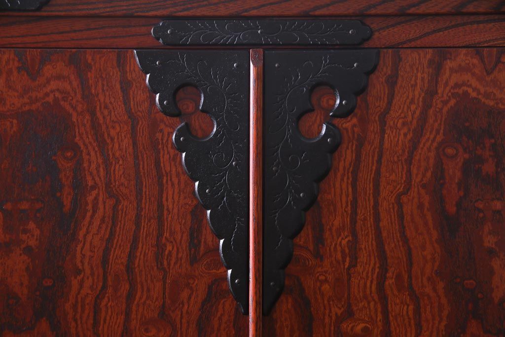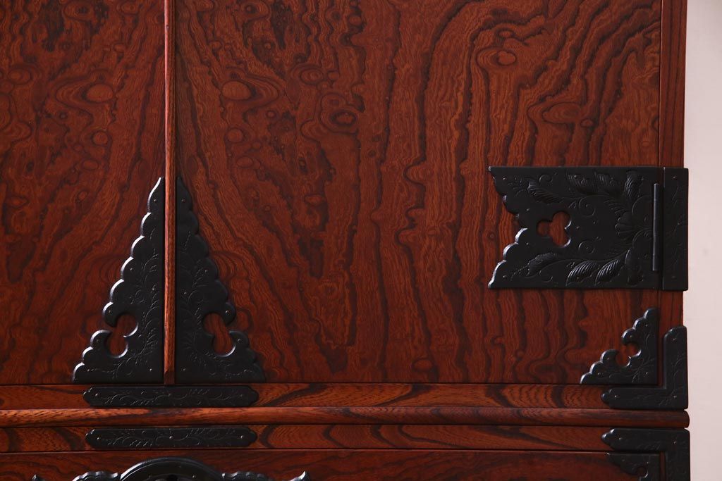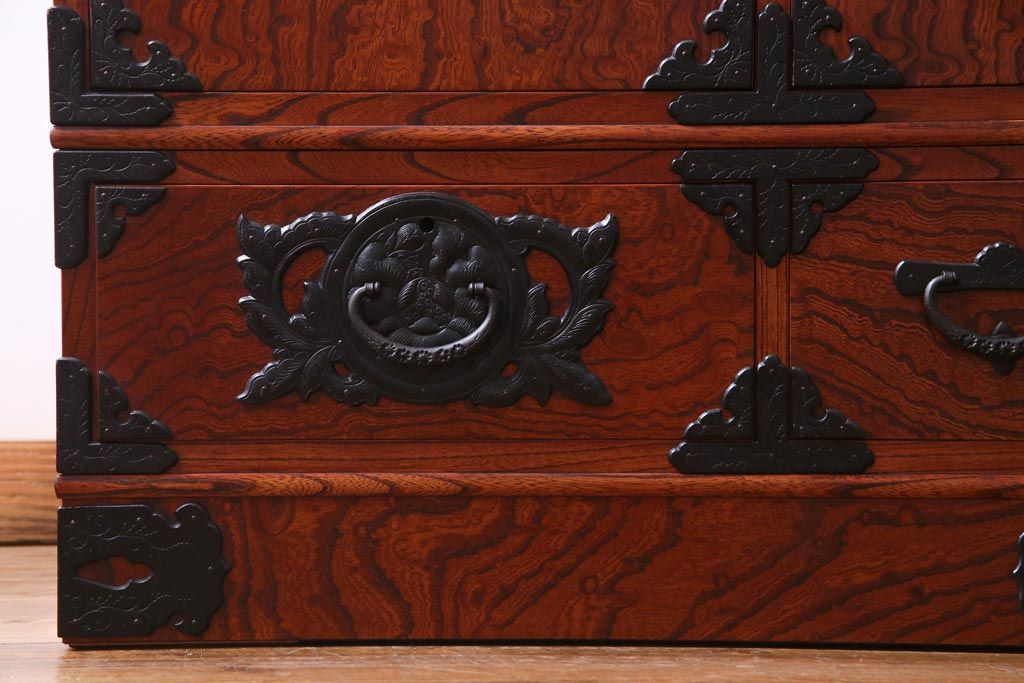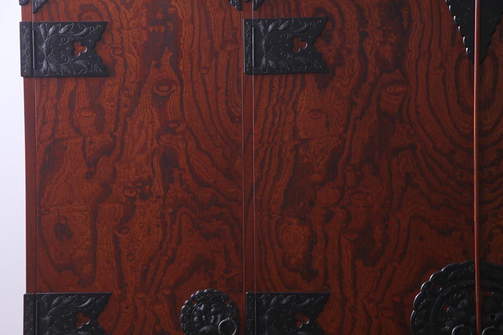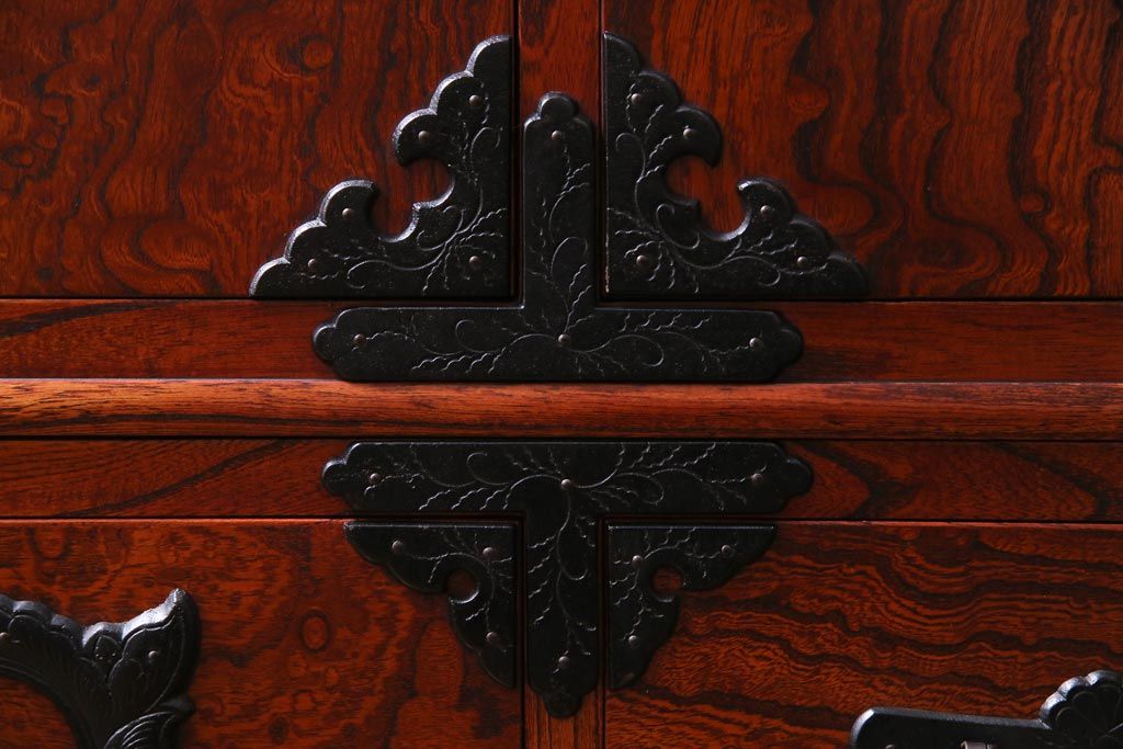 大胆な木目が現れる美しい木肌や、華やかな意匠の金具など、