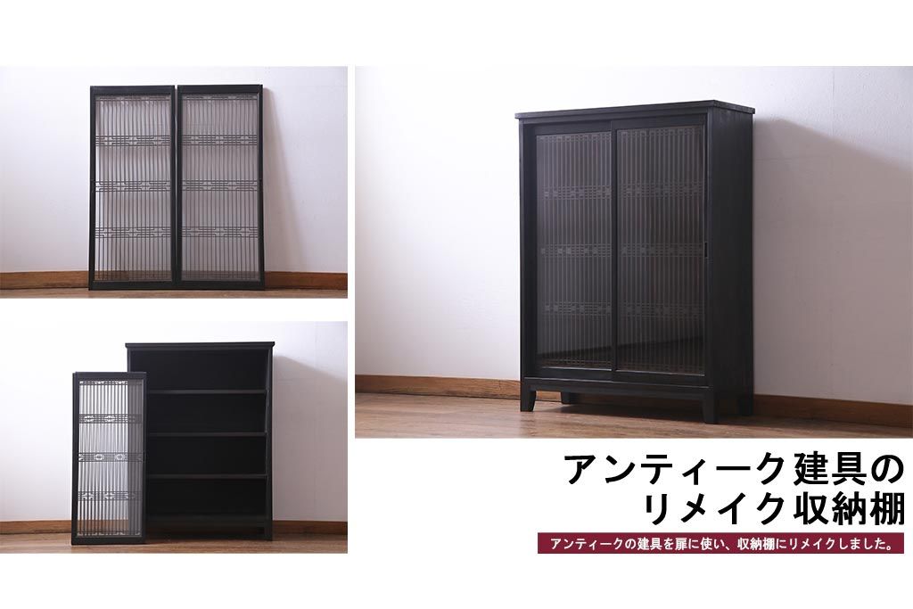 ラフジュ工房> キャビネット・戸棚> 下駄箱 > ラフジュ工房オリジナル 古い書院戸を活かした和モダンな脚付き戸棚(組子、収納棚)(2)
