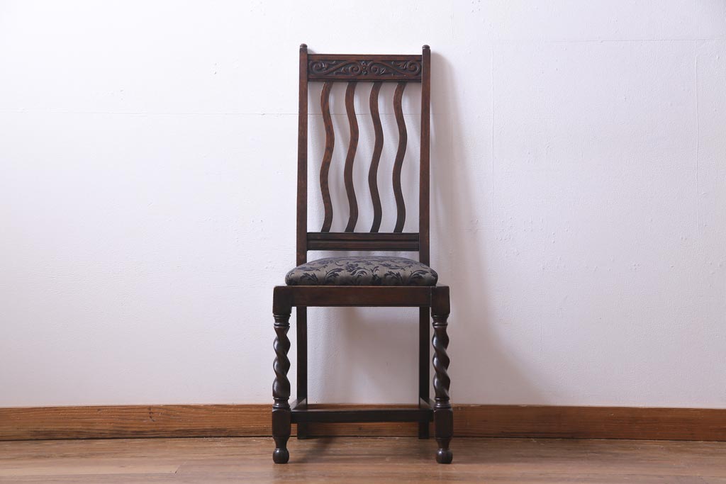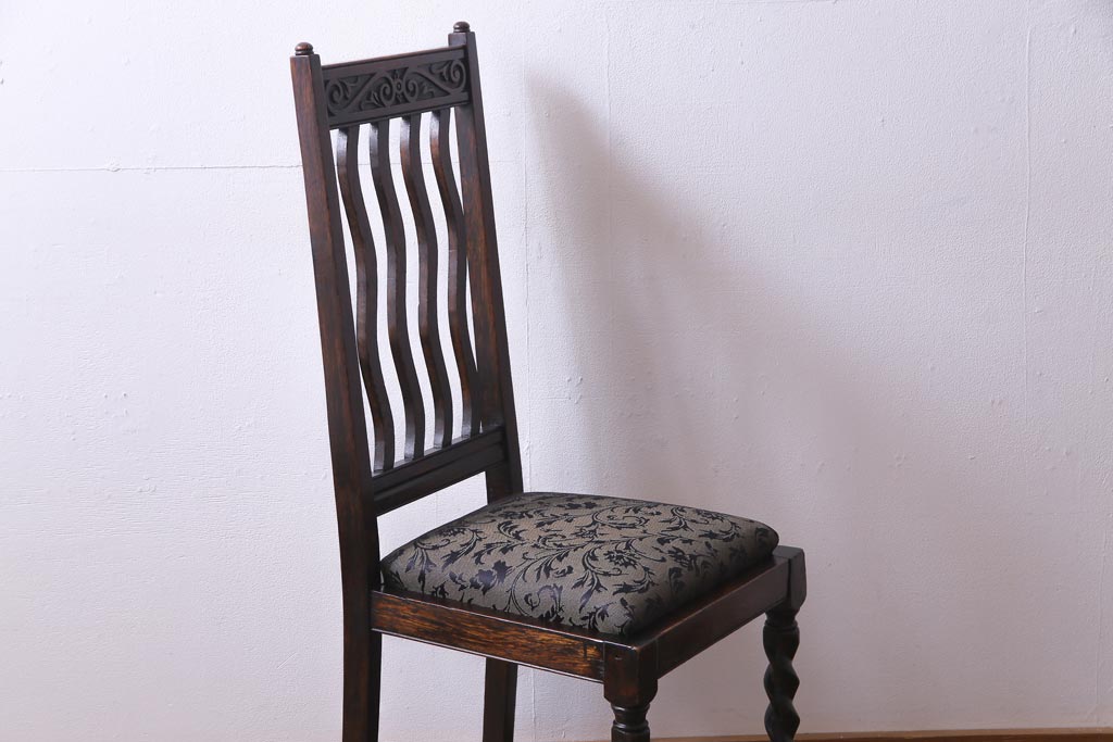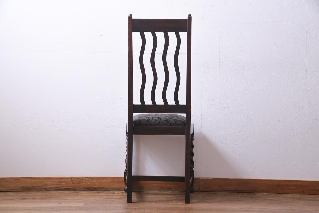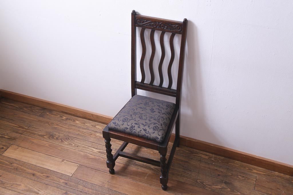 アンティーク家具 イギリスアンティーク 背もたれのデザインが印象的なダイニングチェア(椅子)(2)