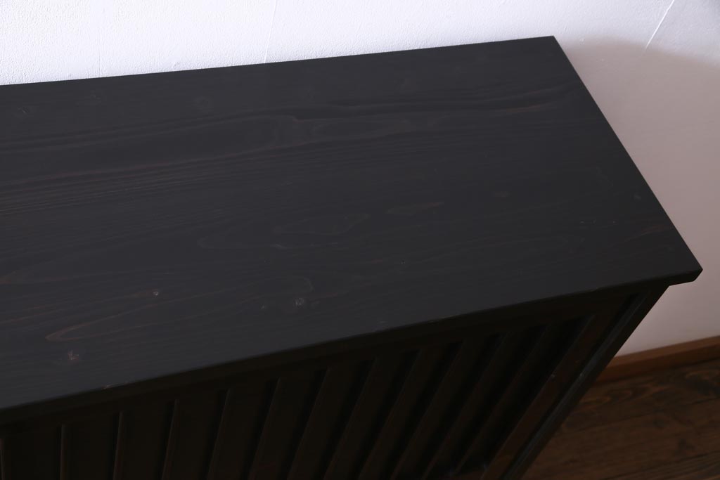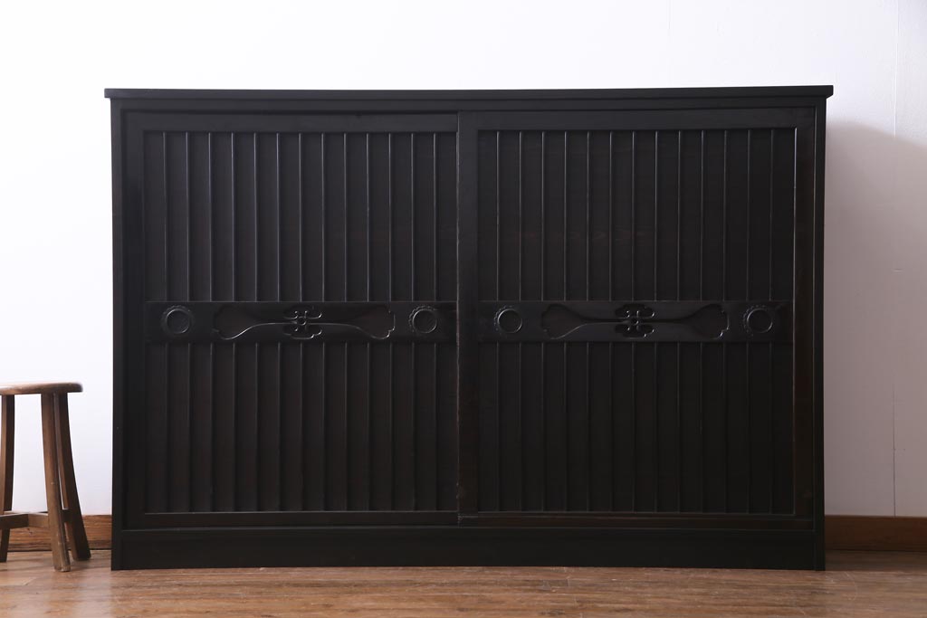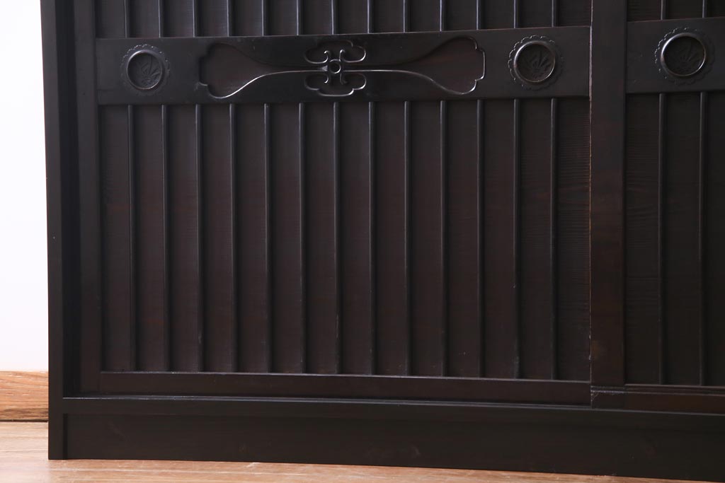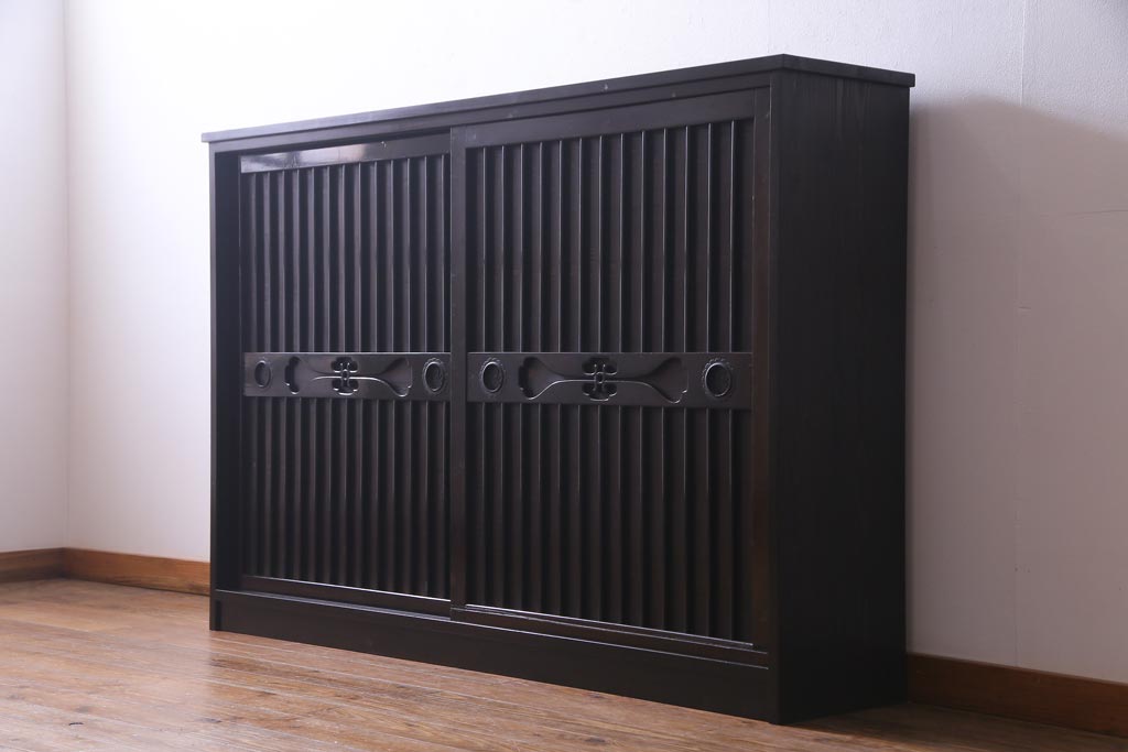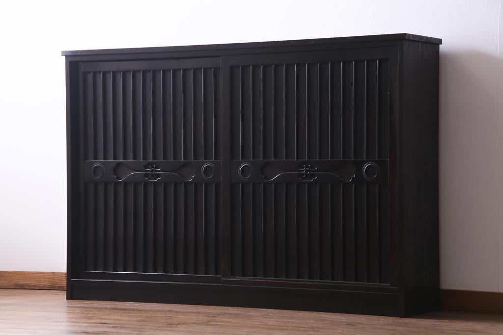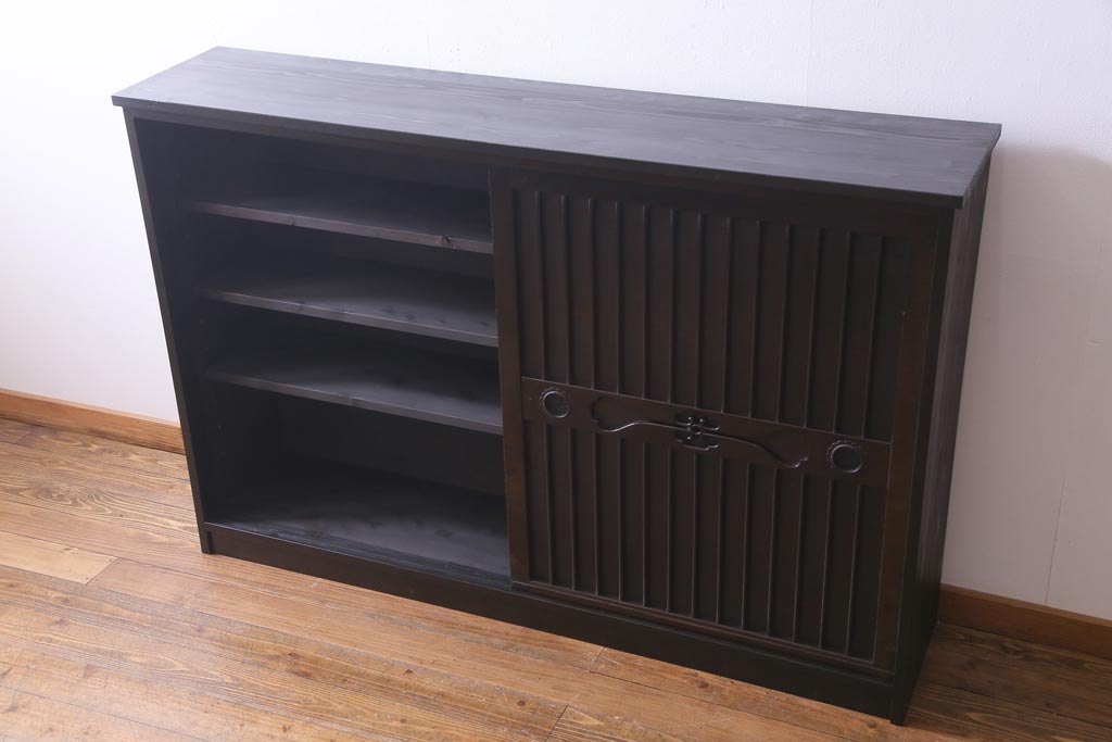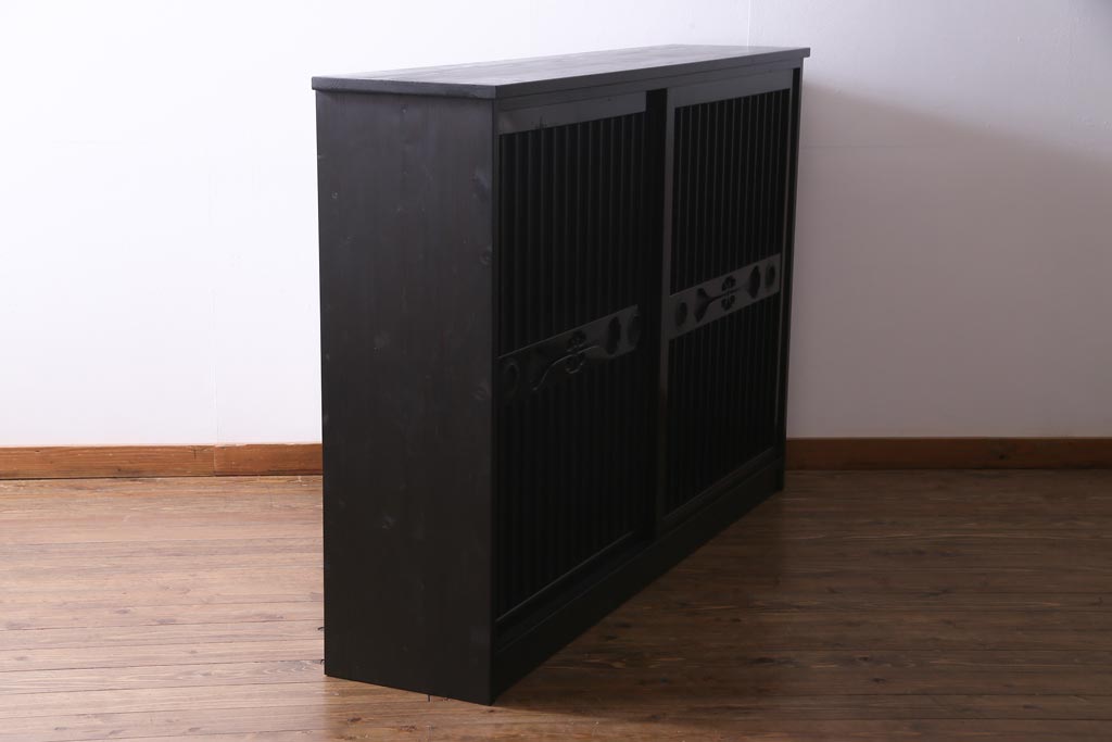 ラフジュ工房オリジナル 透かし彫りが上品な引き戸のリメイク収納棚(戸棚)