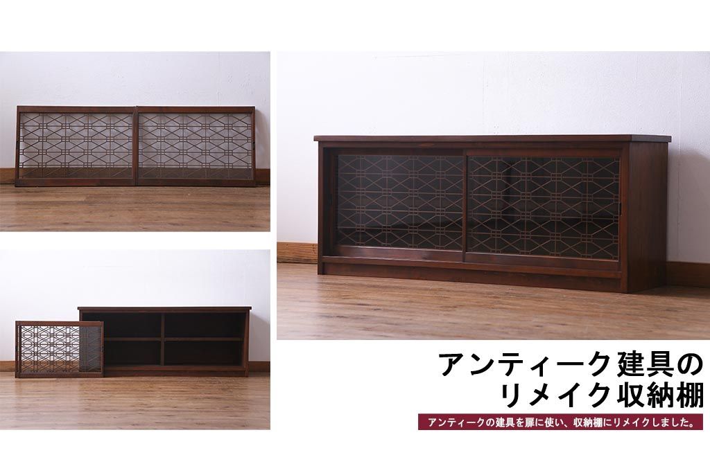 ラフジュ工房オリジナル 古建具リメイク 組子が和モダンな雰囲気醸し出すローボード・小(収納棚、戸棚)