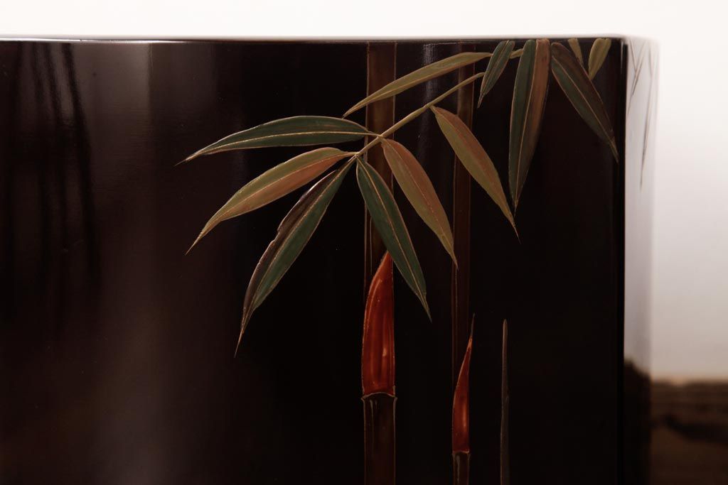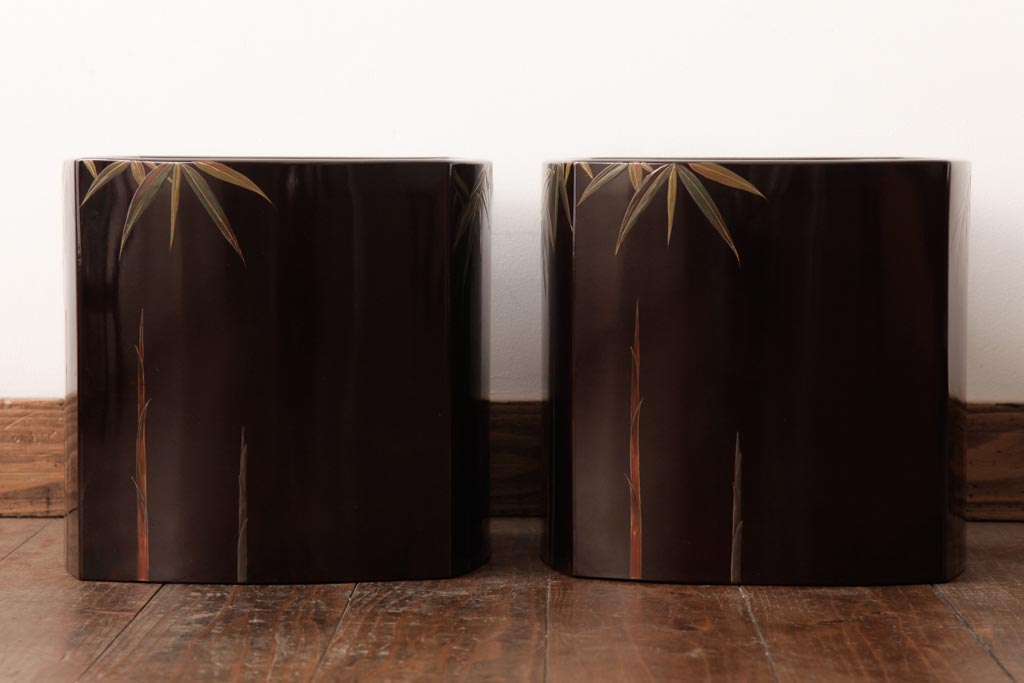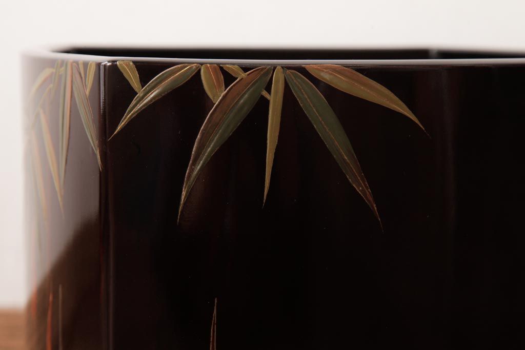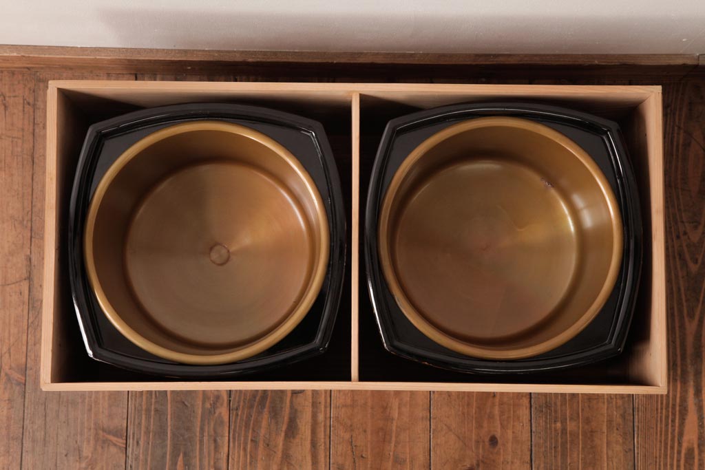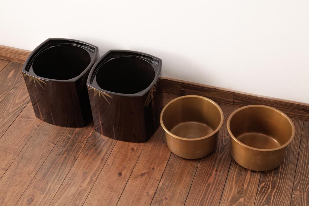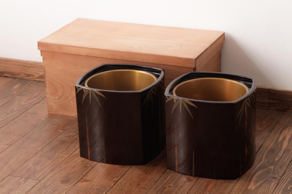 火鉢> 木製火鉢 > アンティーク雑貨 和製アンティーク 箱付き 漆塗り わびさびを感じる竹模様の火鉢2個セット