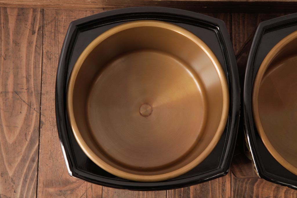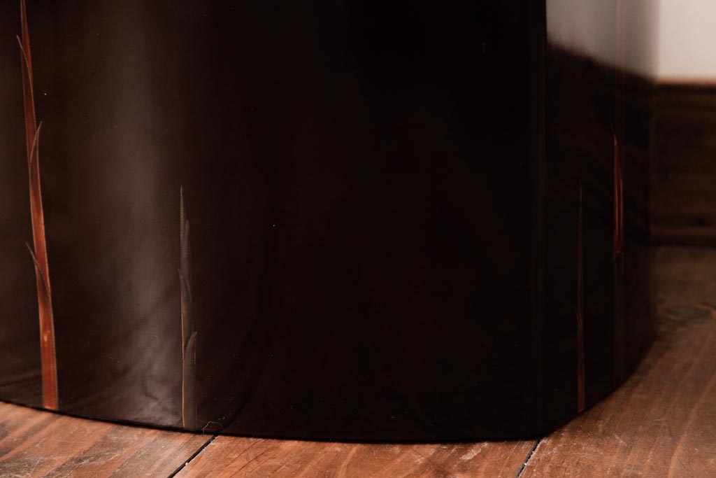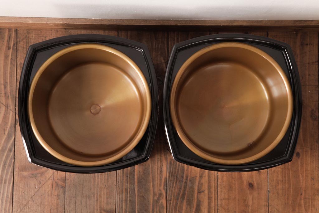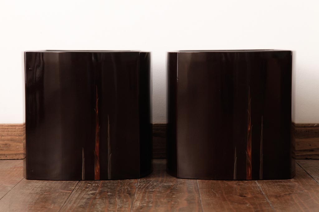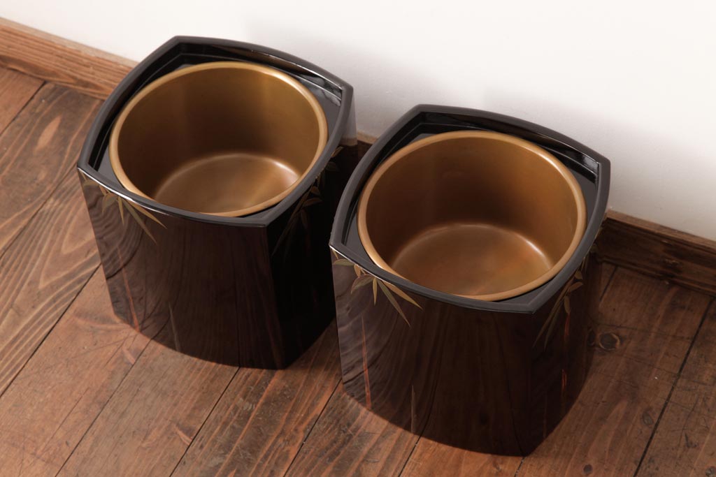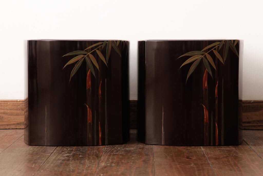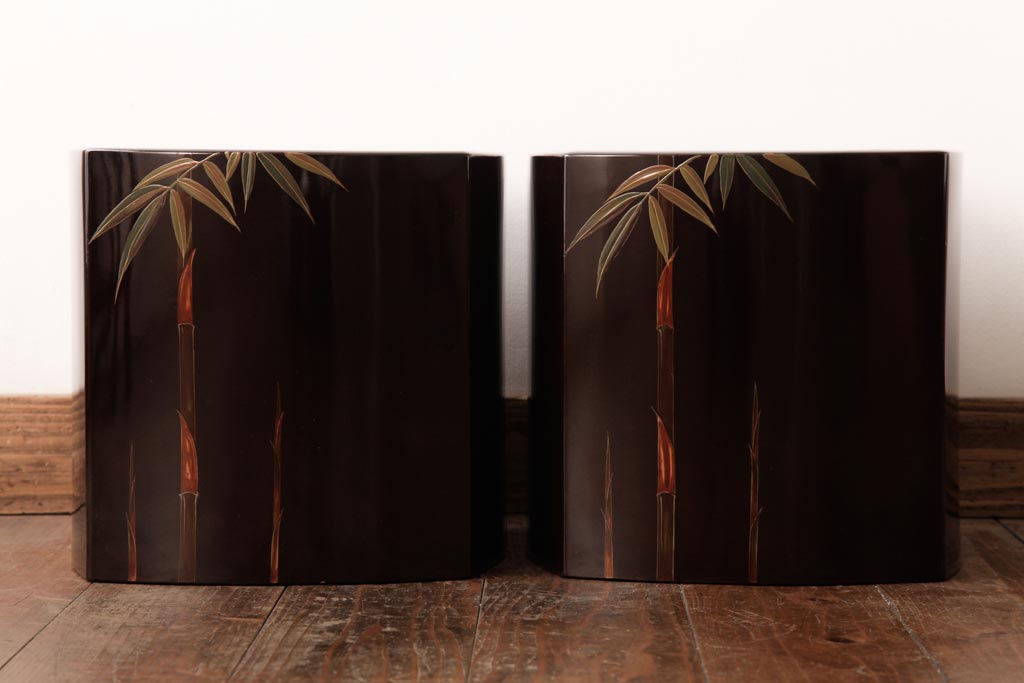 火鉢> 木製火鉢 > アンティーク雑貨 和製アンティーク 箱付き 漆塗り わびさびを感じる竹模様の火鉢2個セット