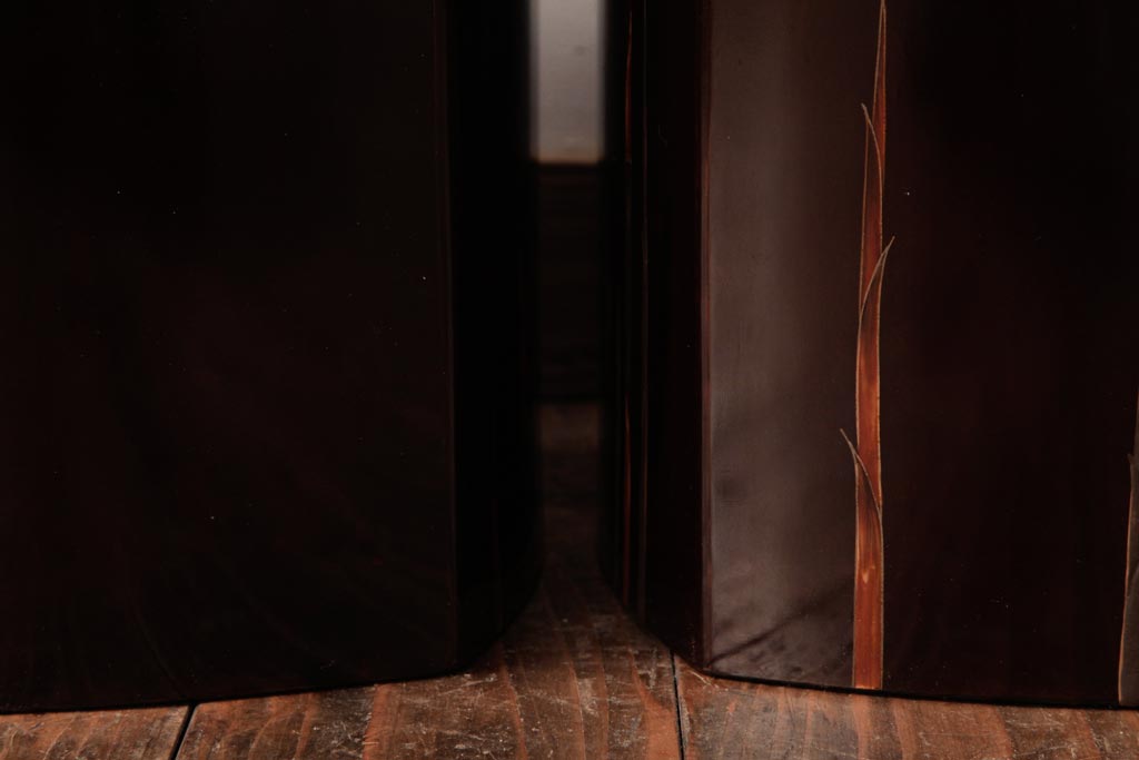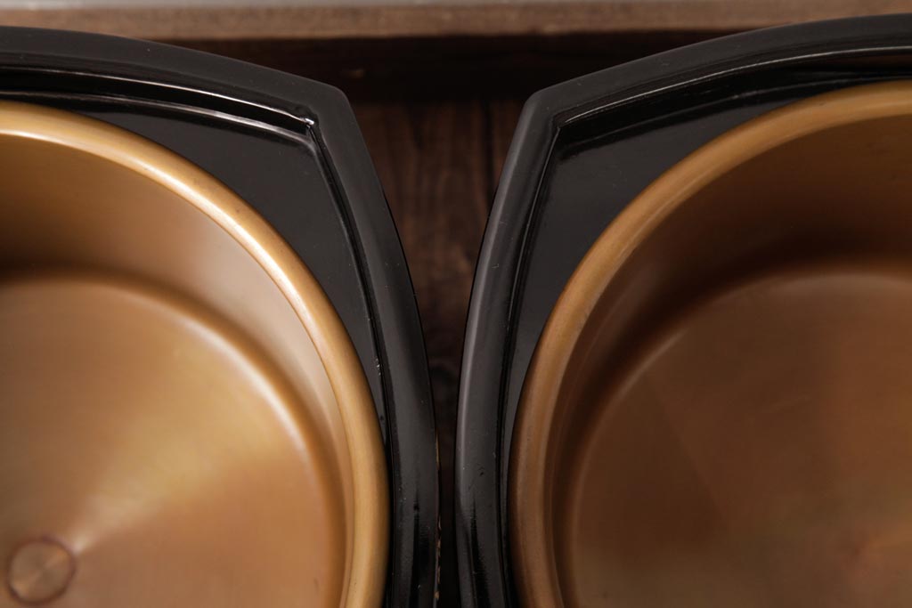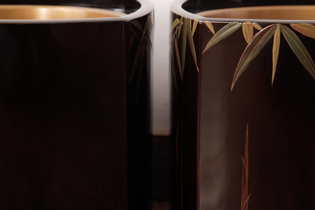 和製アンティーク 箱付き 漆塗り わびさびを感じる竹模様の火鉢2個セットです。