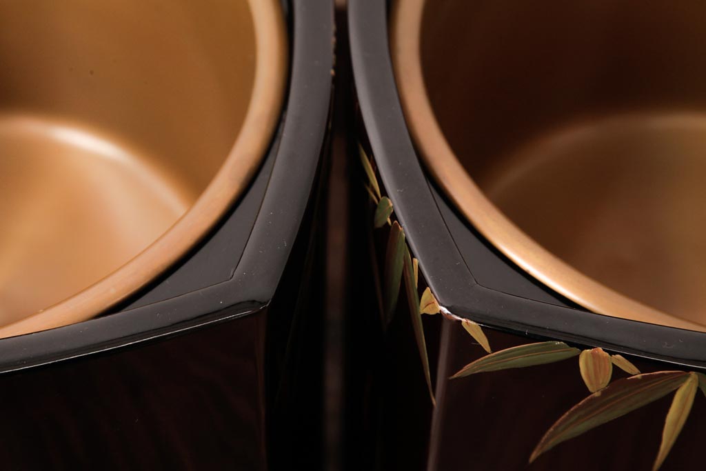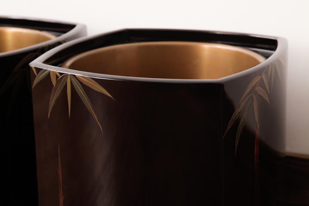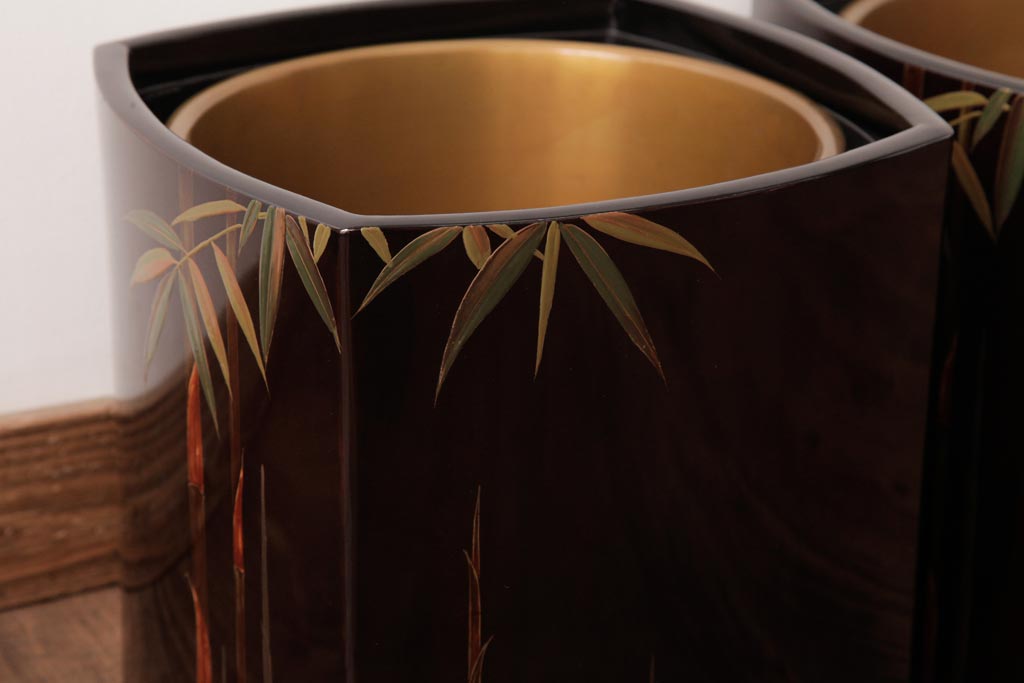 アンティーク雑貨 和製アンティーク 箱付き 漆塗り わびさびを感じる竹模様の火鉢2個セット