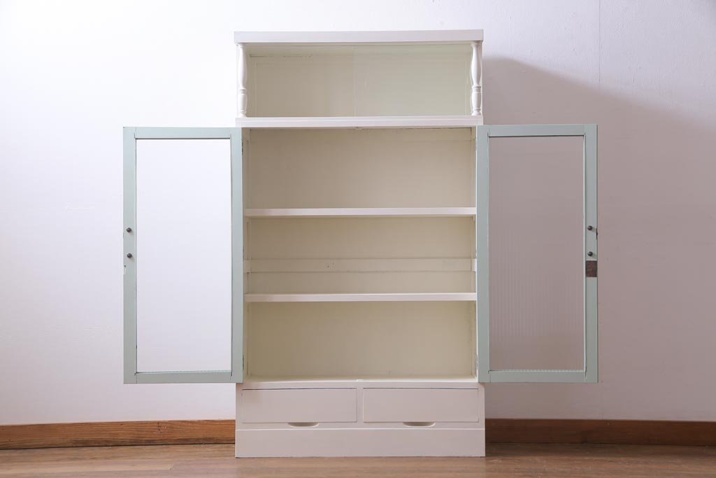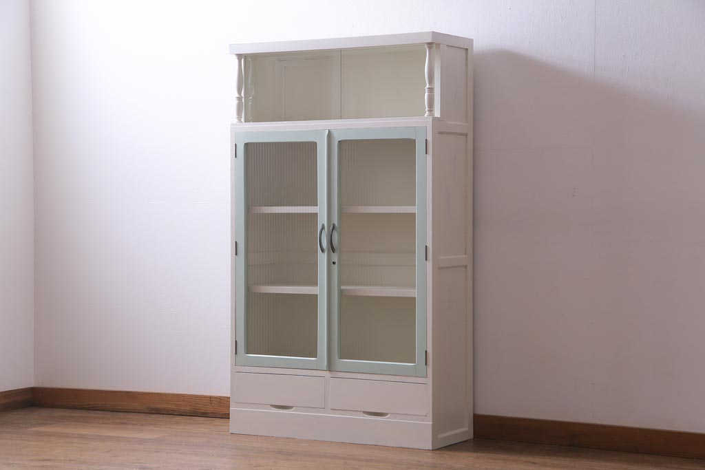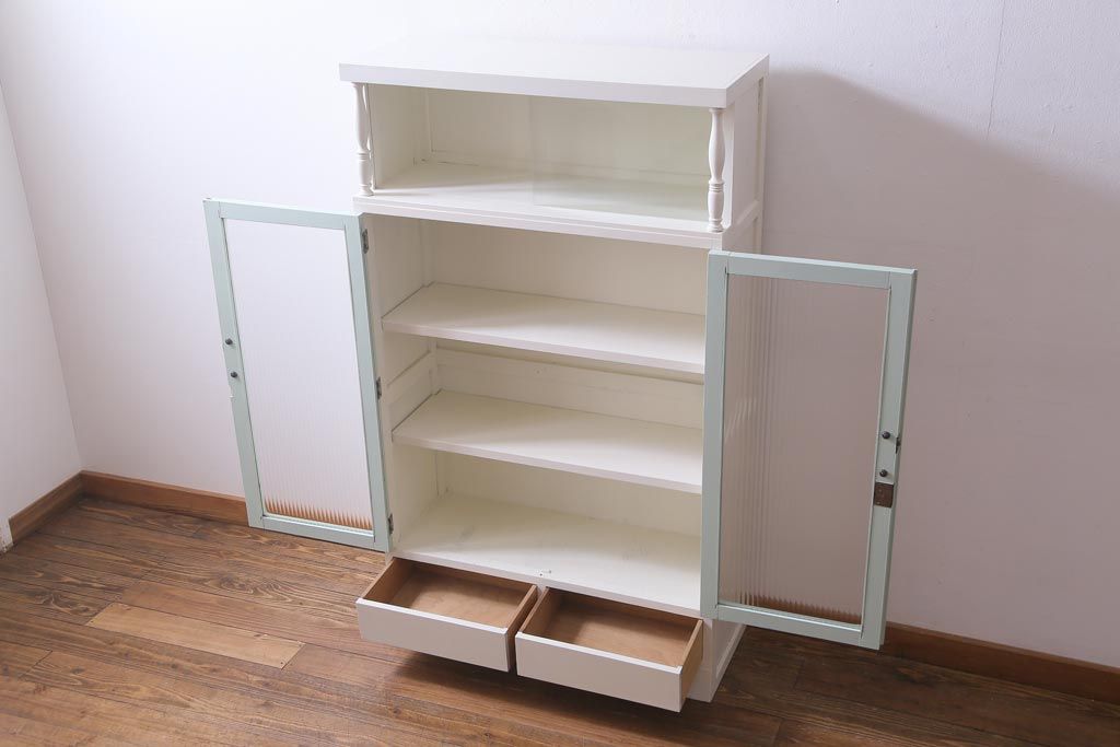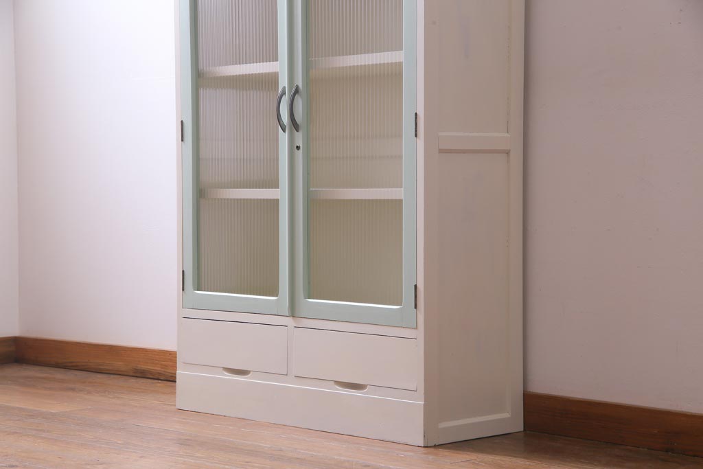 ペイント家具 ミントグリーンが爽やかなフレンチナチュラルな本箱(収納棚、飾り棚)