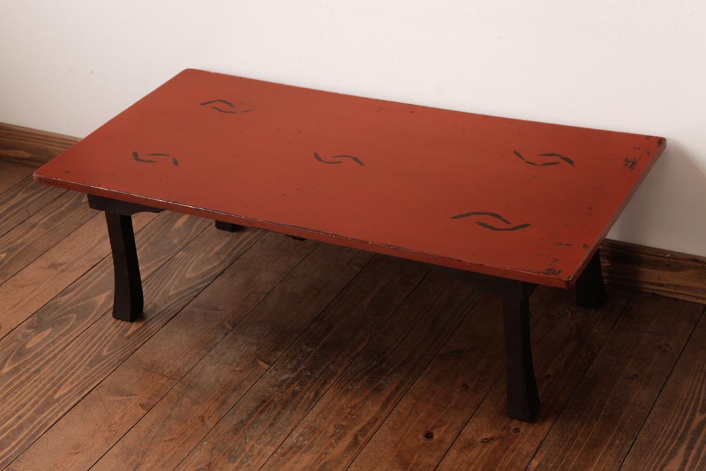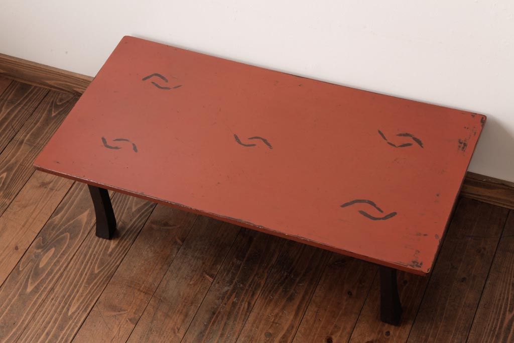 アンティーク家具 和製アンティーク 根来塗 折り畳み式 ひと味違った和の趣漂う文机(花台、ローテーブル)